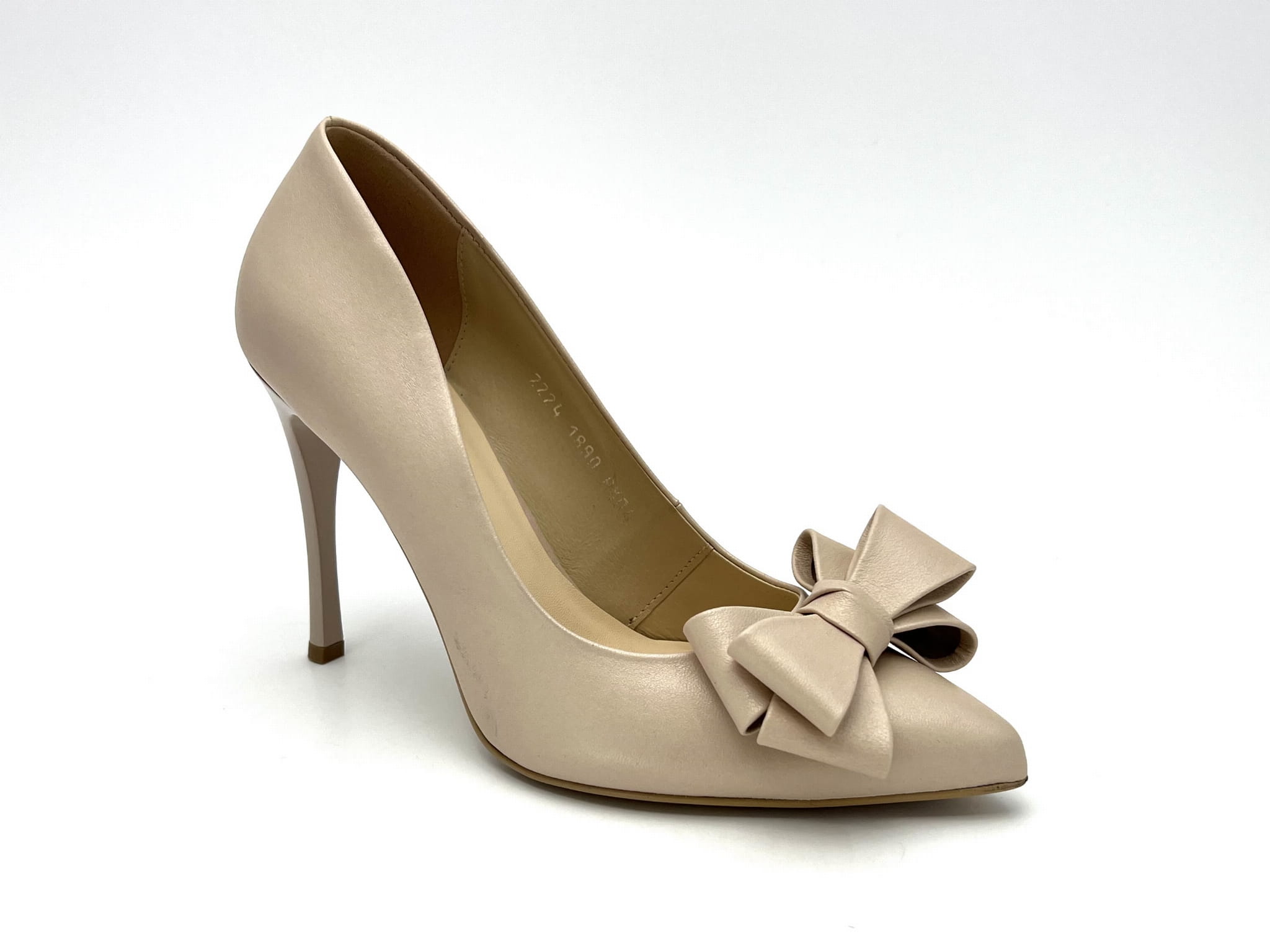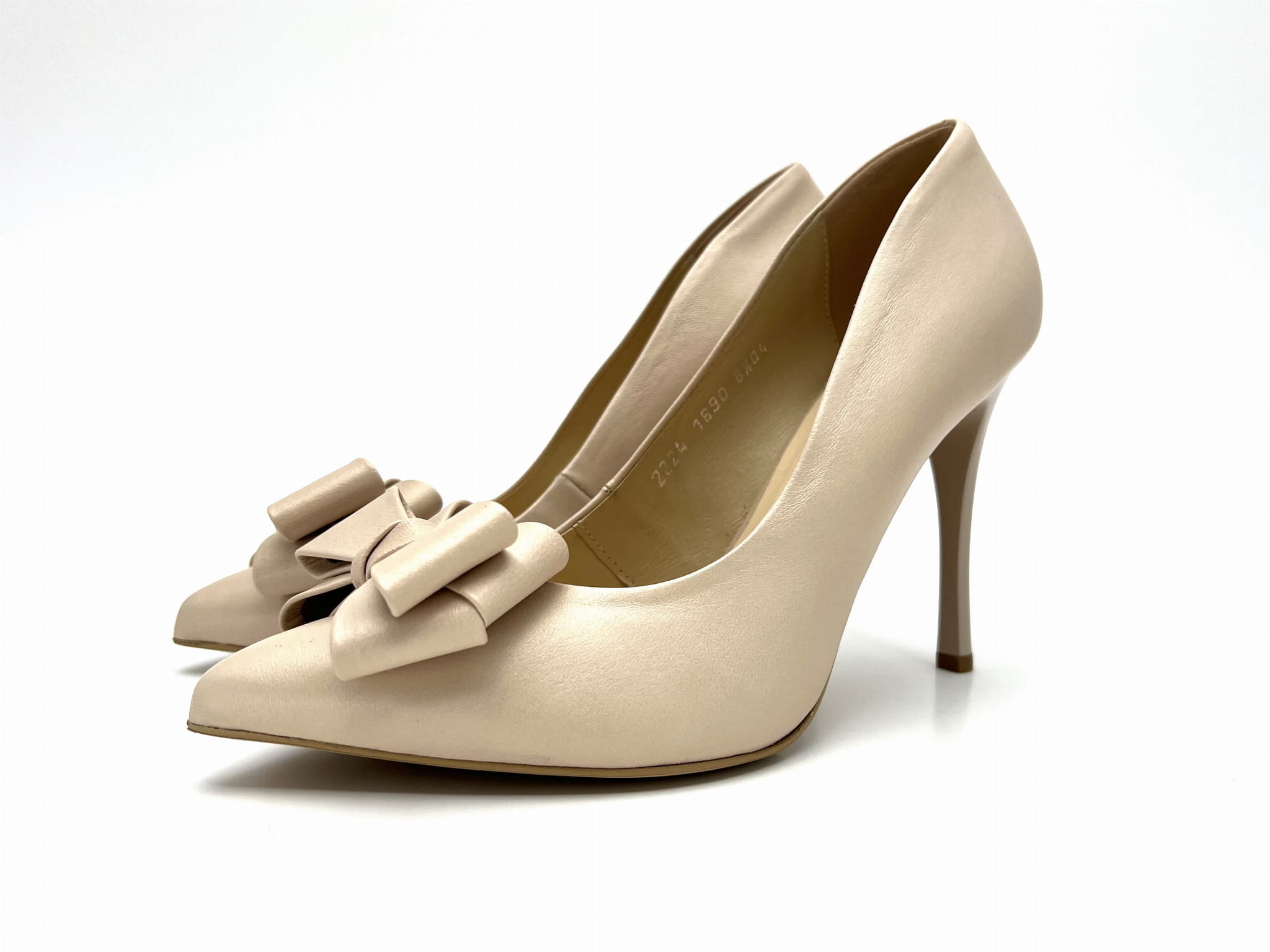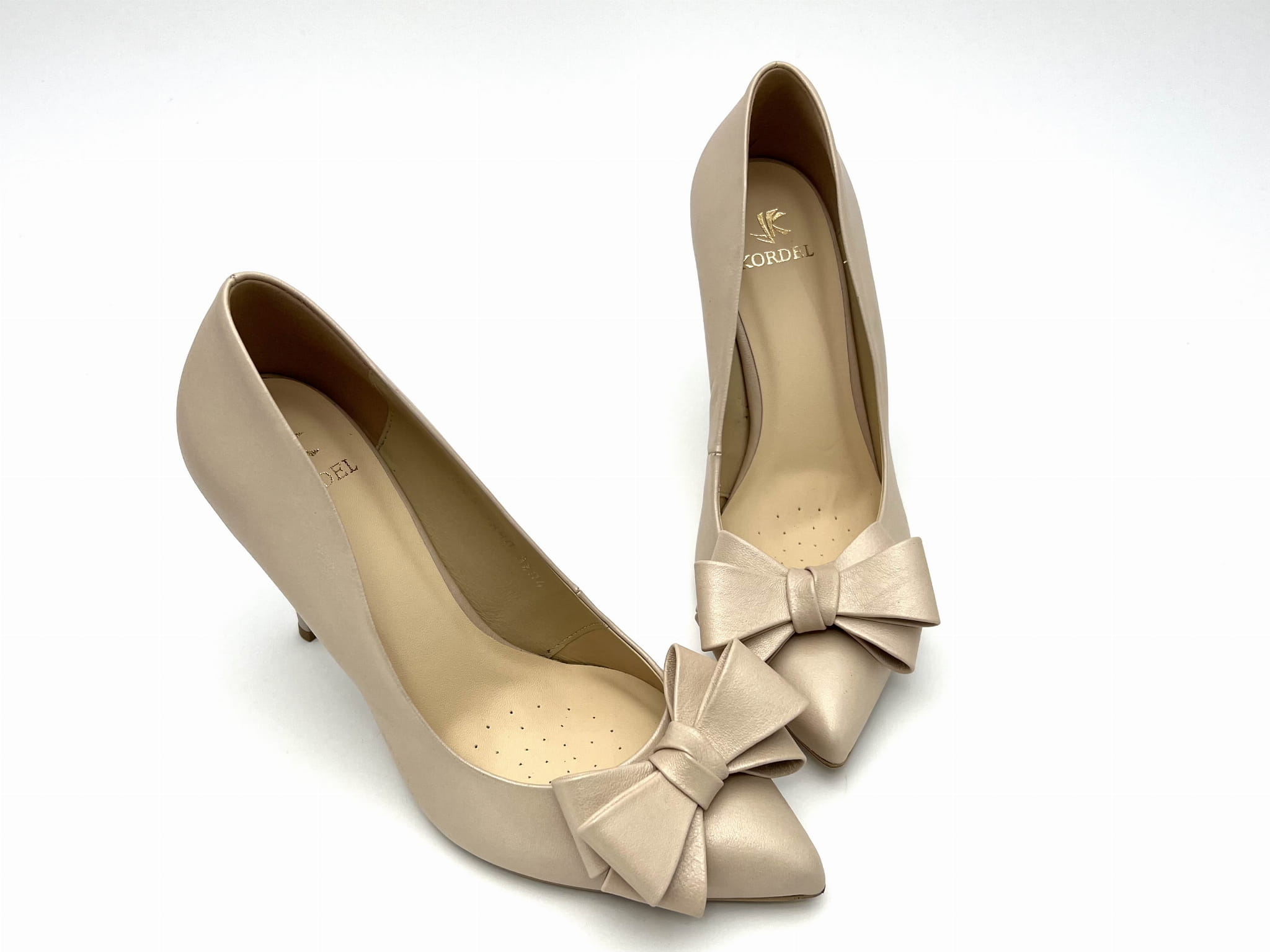 Klasyczne beżowe czółenka na szpilce. Powstały w dbałości o każdy szczegół, aby dawać użytkownikom maksymalny komfort i satysfakcję. Ponad czasowe szpilki będą uzupełnieniem wielu stylizacji. Szpilki zostały ozdobione ręcznie robioną kokardą. Wykonane zostały ze skory naturalnej.