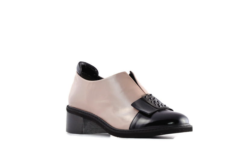 Czarno - beżowe półbuty, wykonane z naturalnej skóry licowej