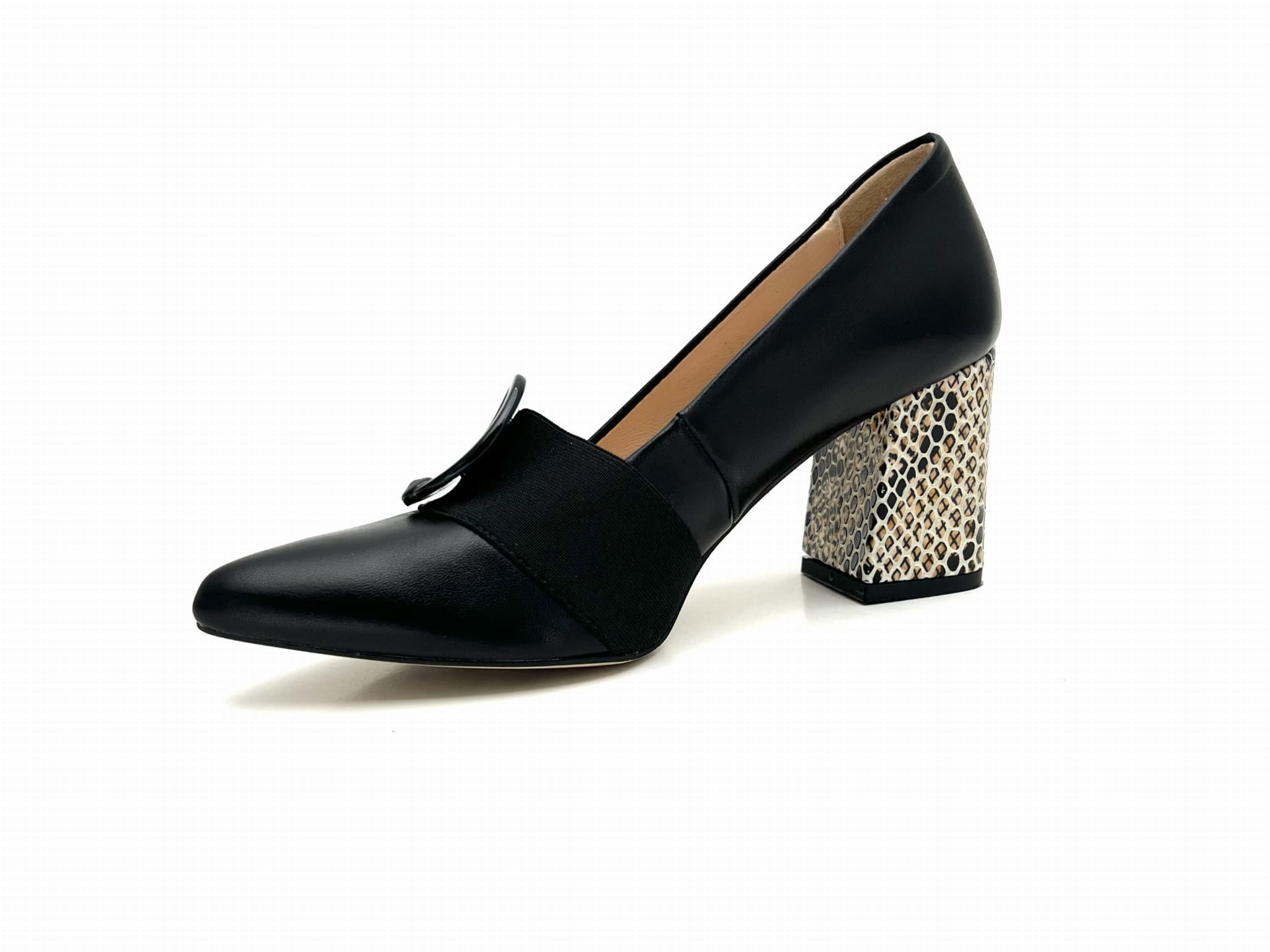 ✅ Stabilny obcas 7,5 cm z motywem skóry węża – dodaje charakteru i modowego sznytu.
