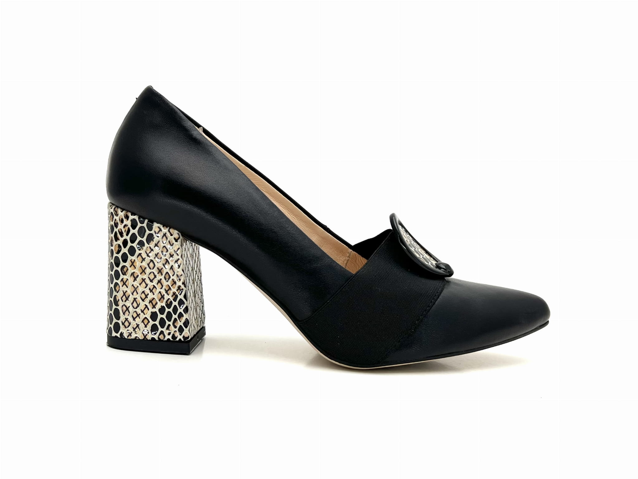 Czarne czółenka damskie 2291 z beżowym obcasem – klasyka z pazurem