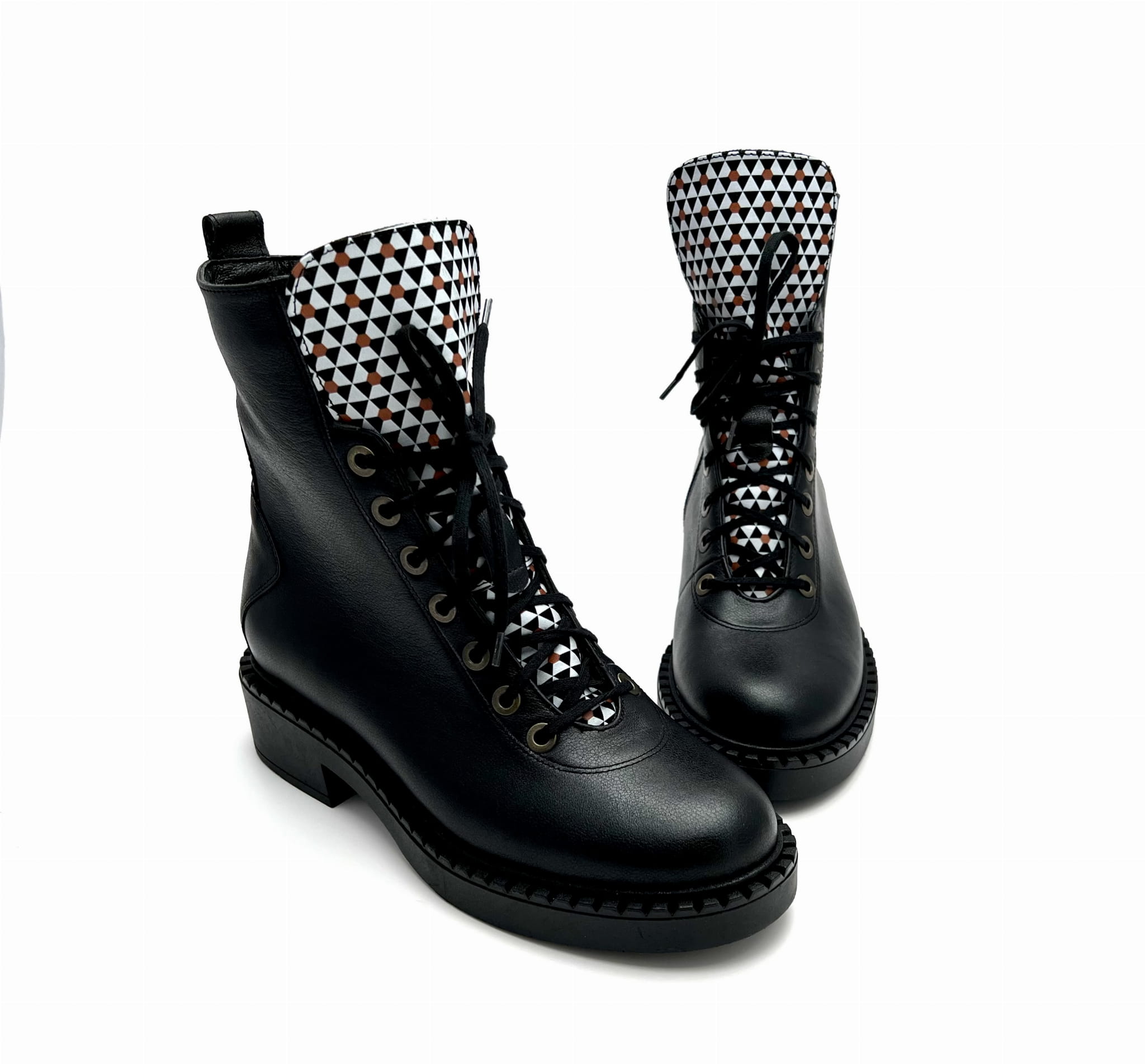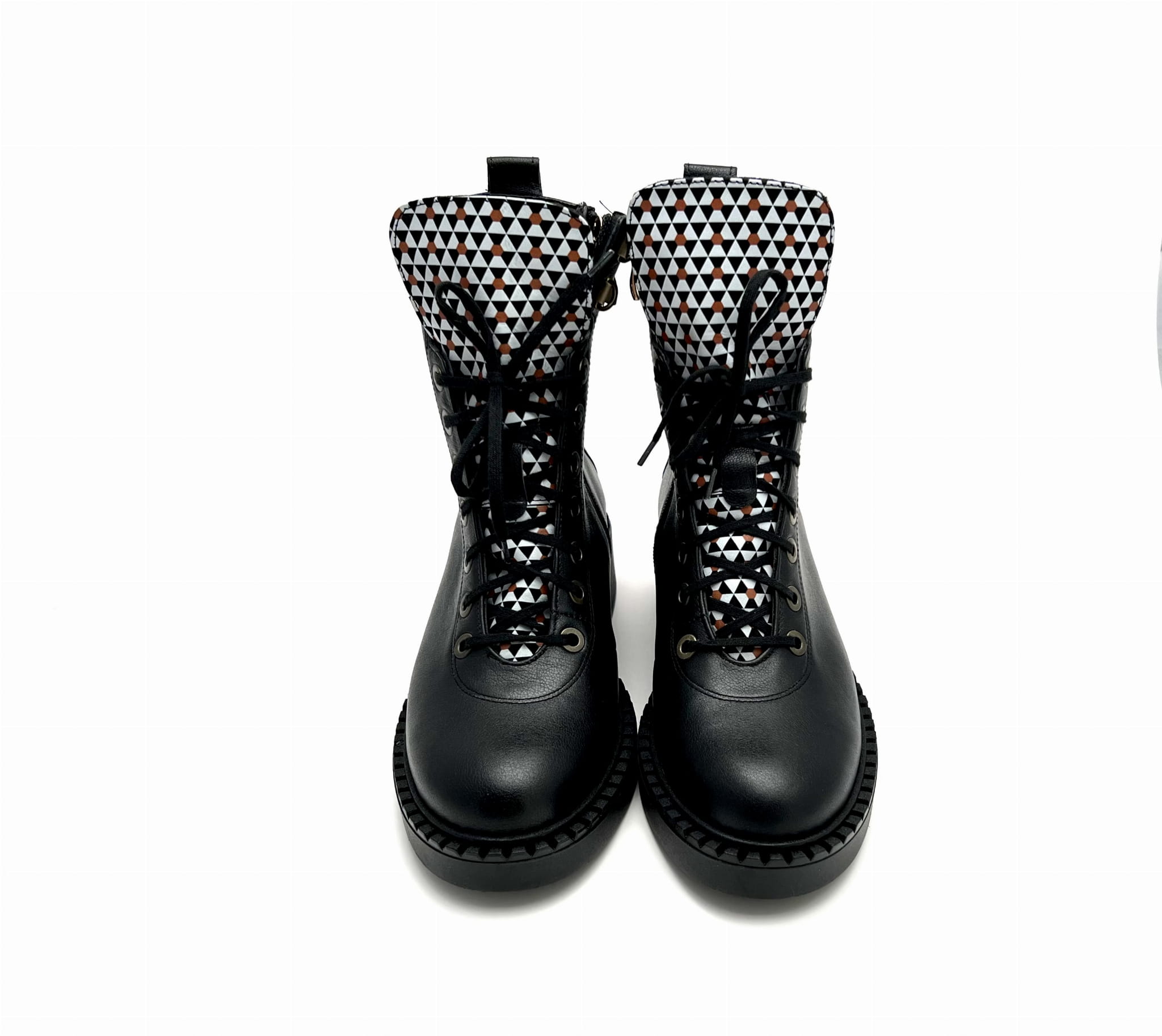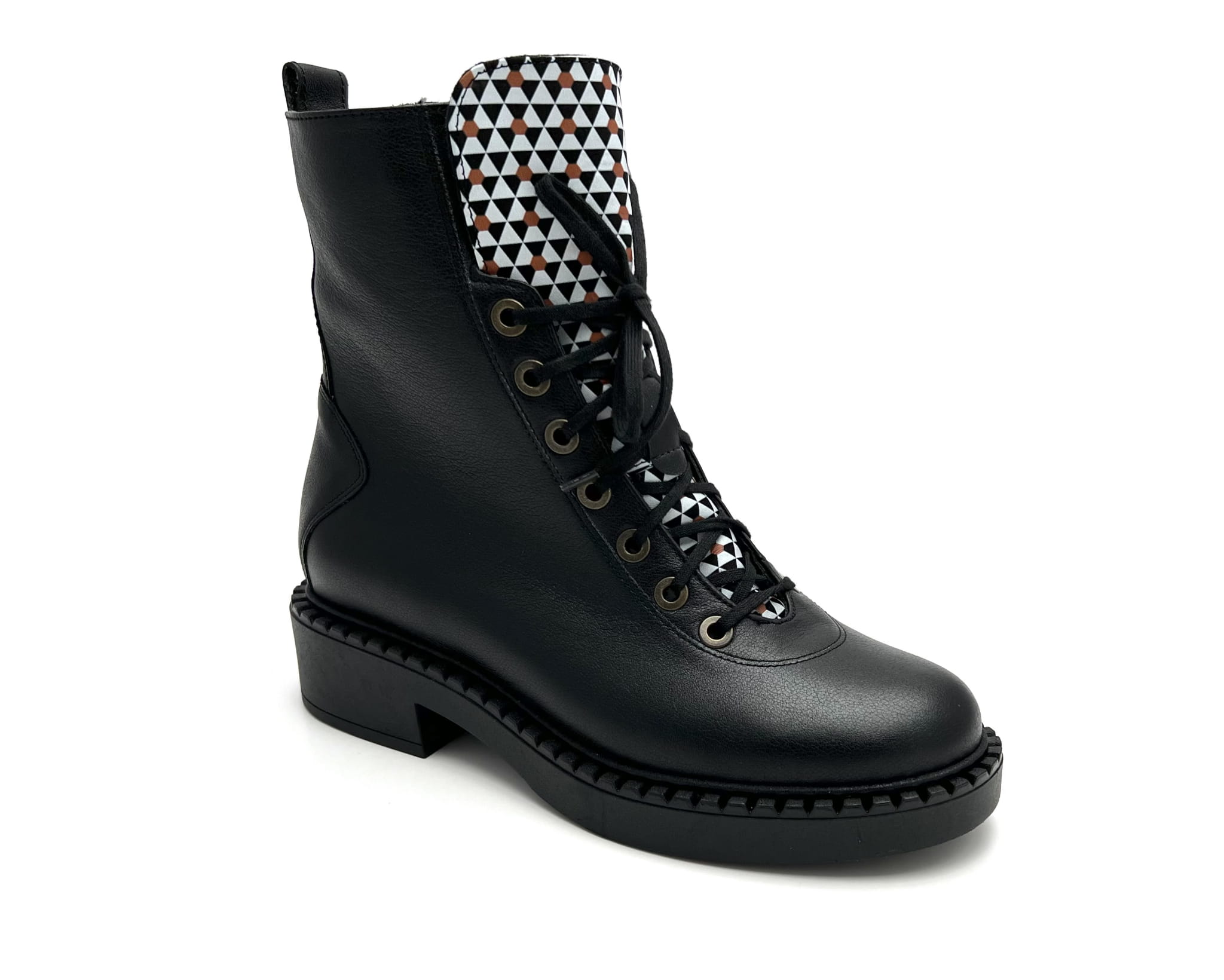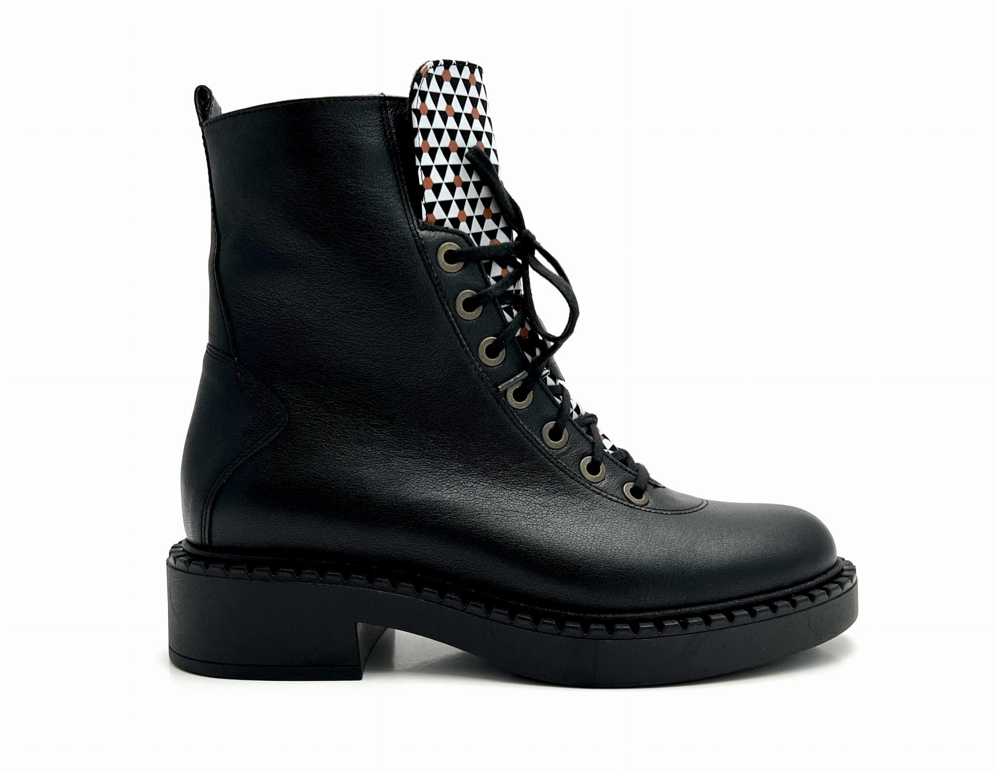 2755 czarne botki z ozdobną sznurówką i suwakiem