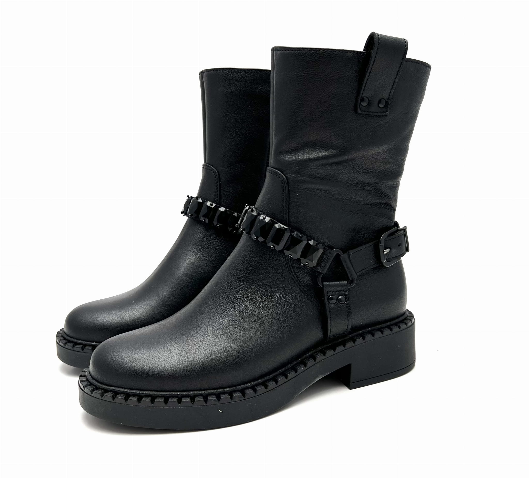 2756 czarny botek z ozdobnymi kamieniami