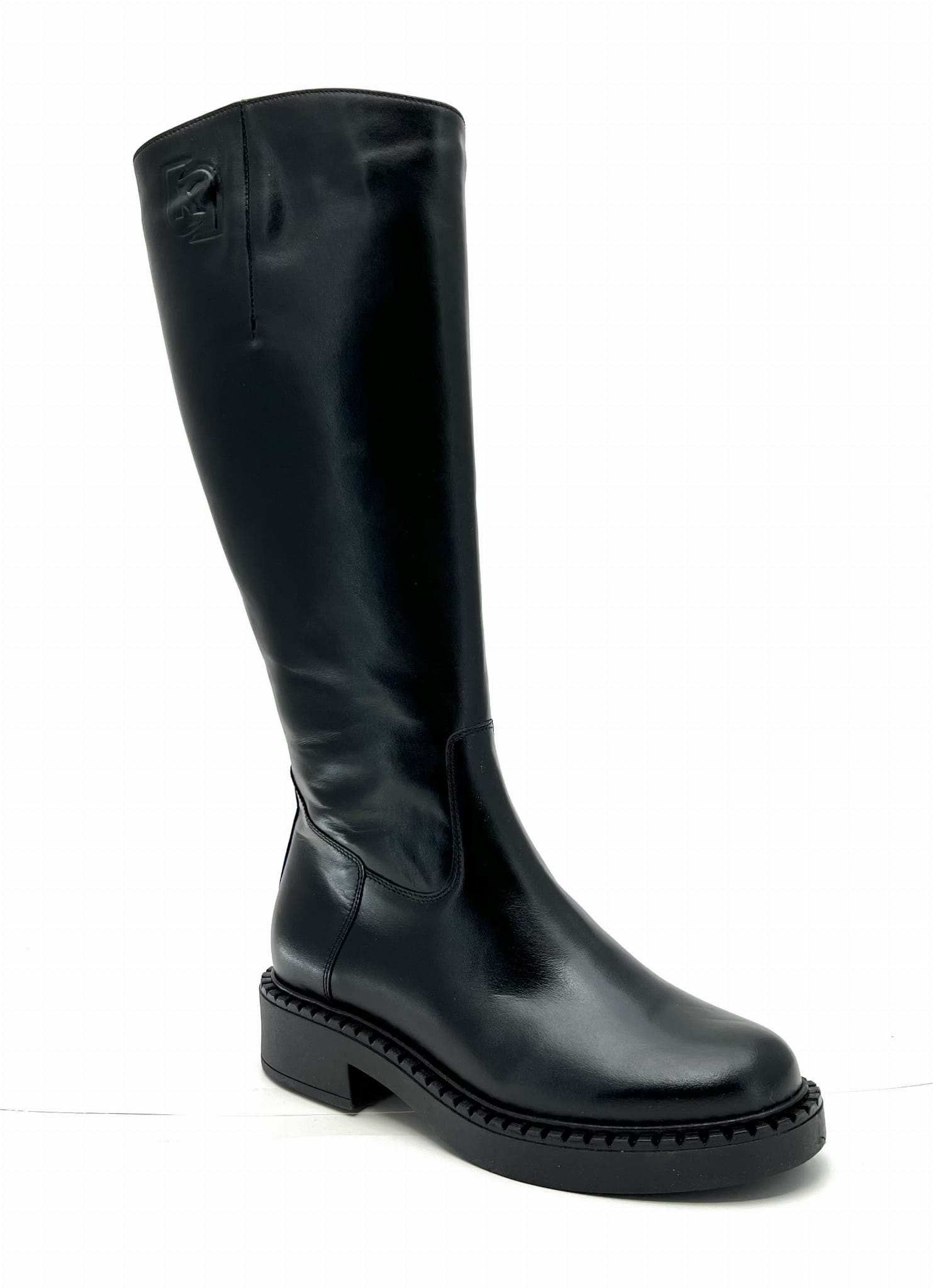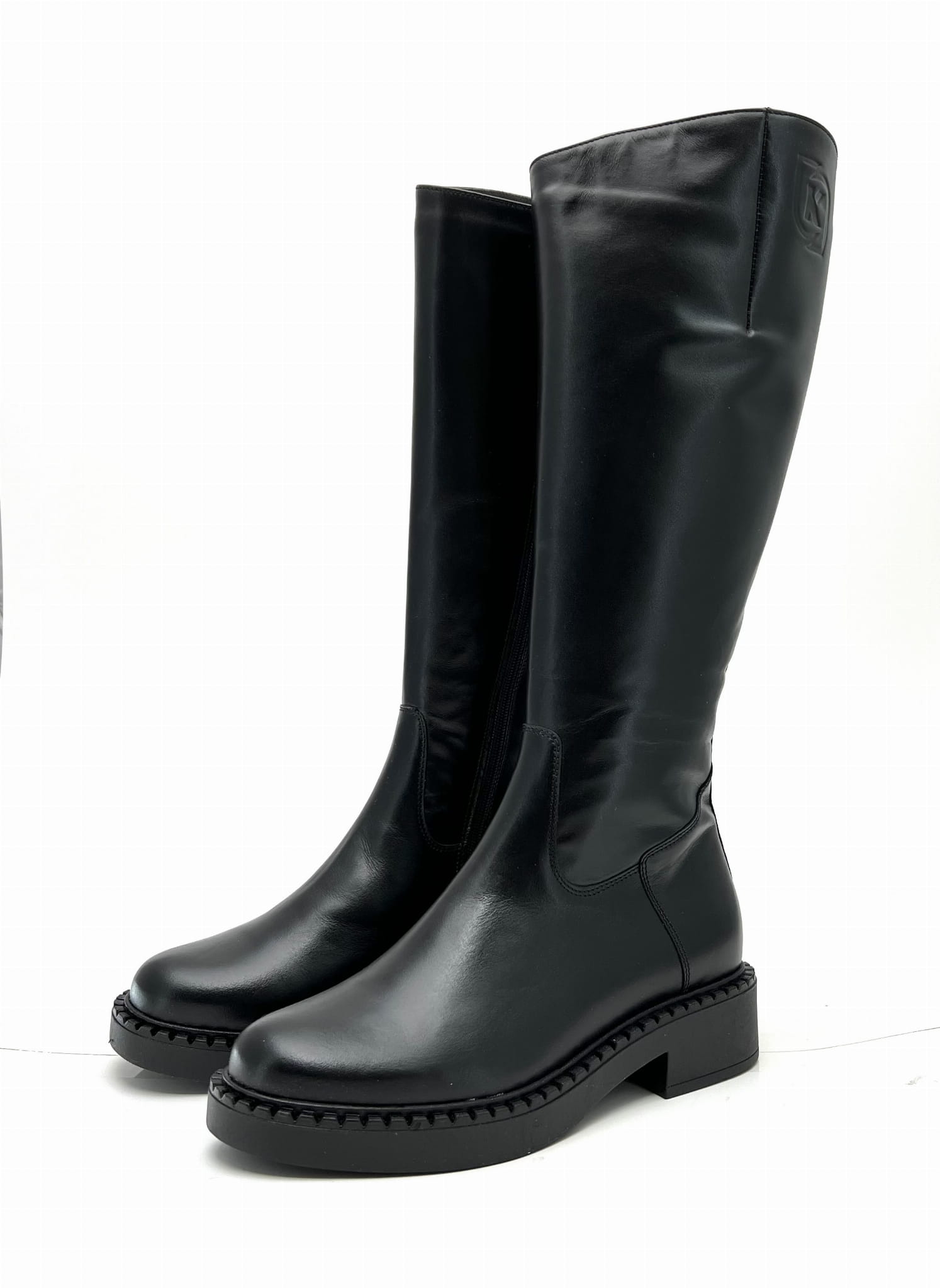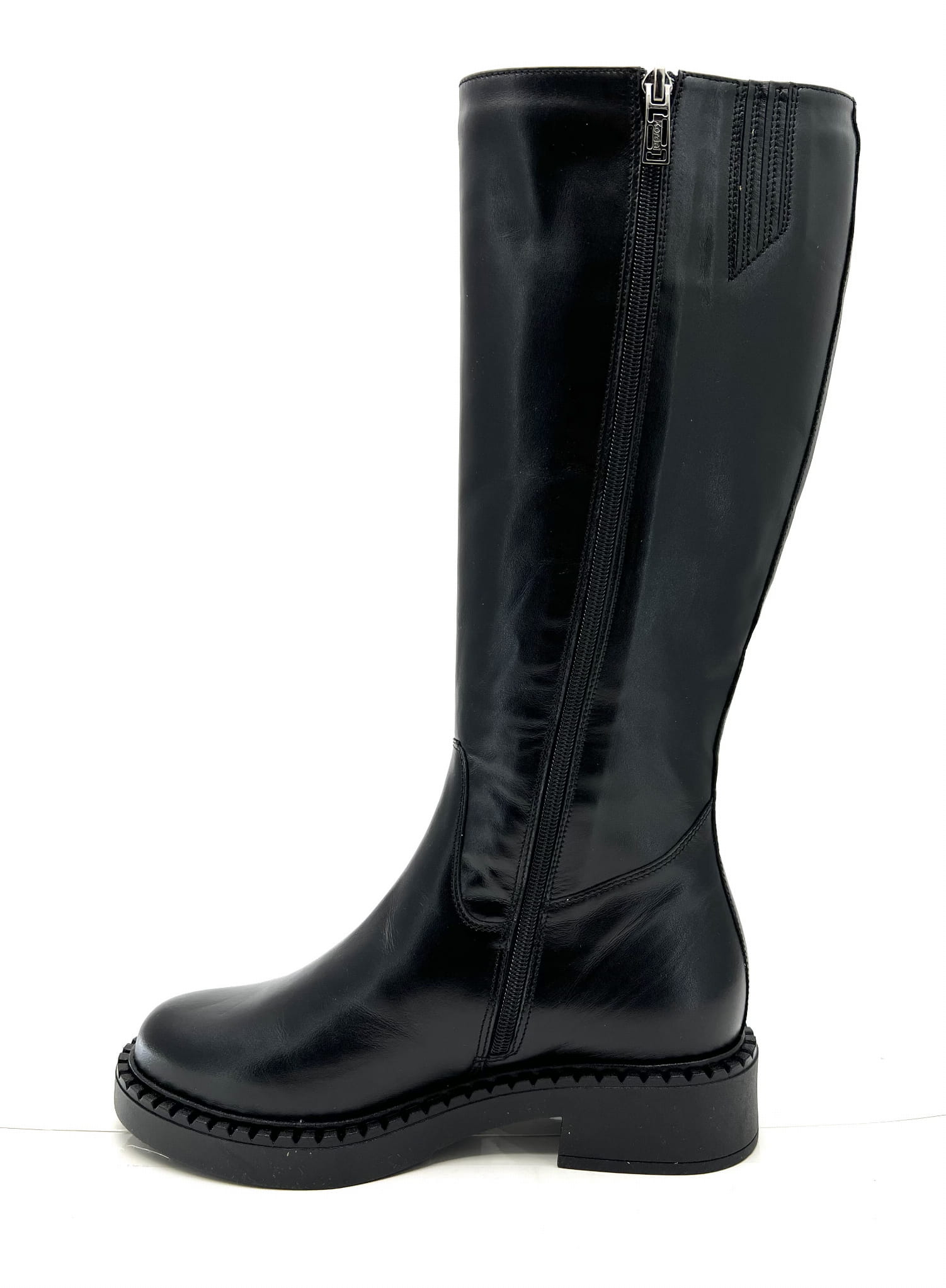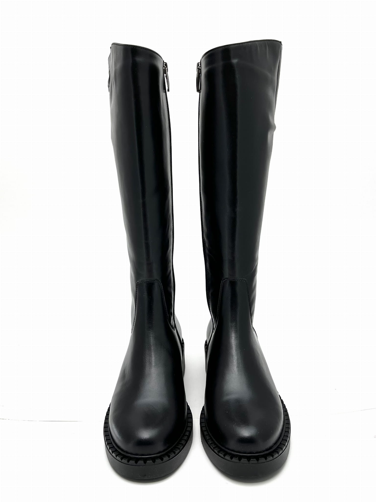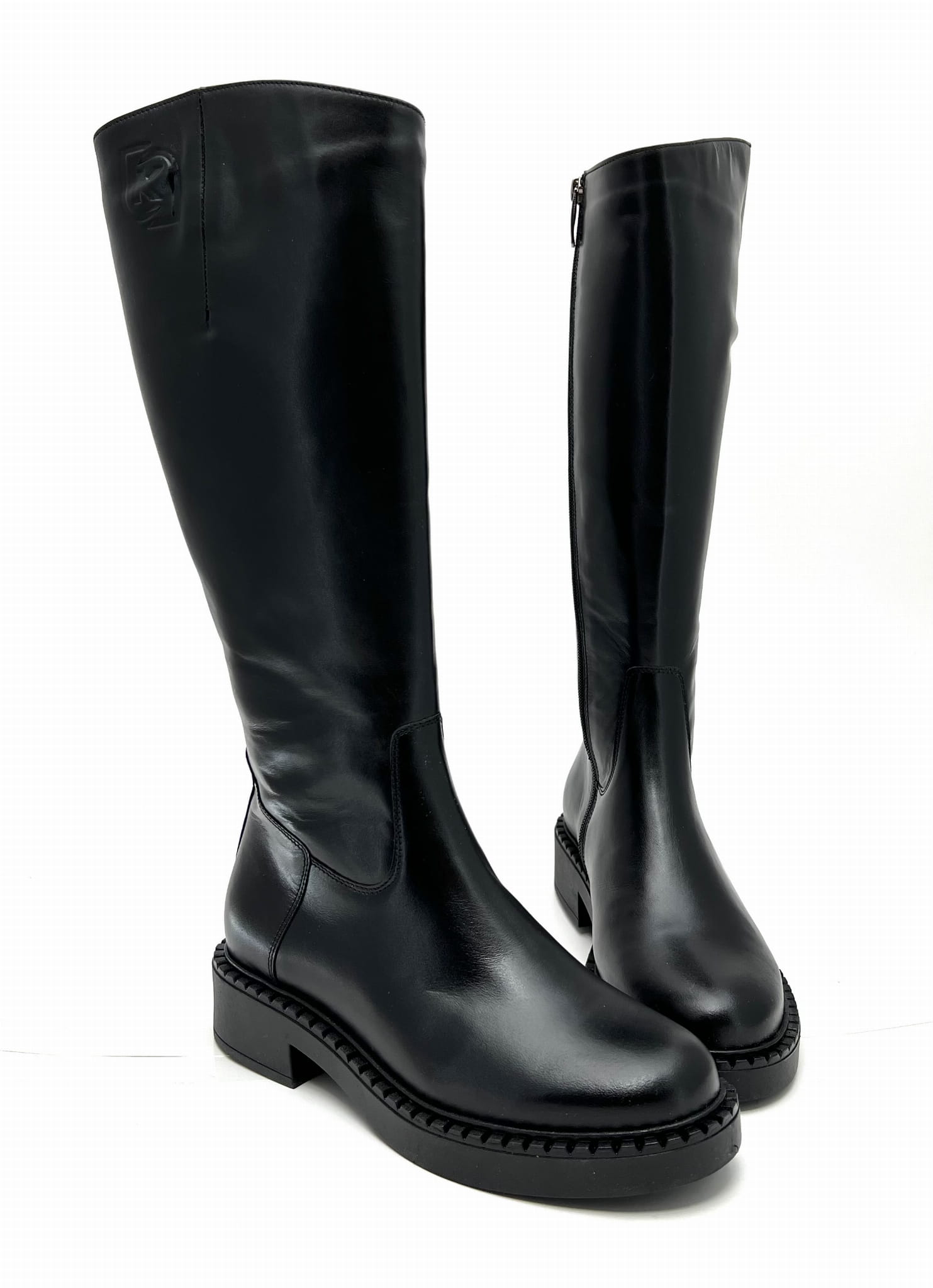 Oficerka damska czarna ze skóry naturalnej. Kozak zapinany na zamek, gruba podeszwa będzie dobrym izolatorem od podłoża. Są to idealne kozaki damskie do sukienek.