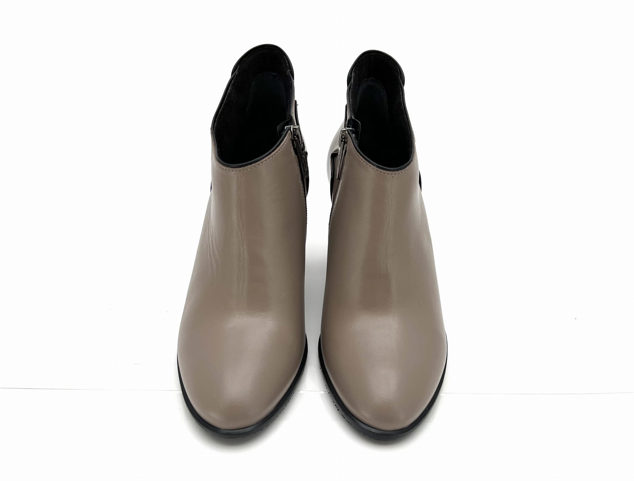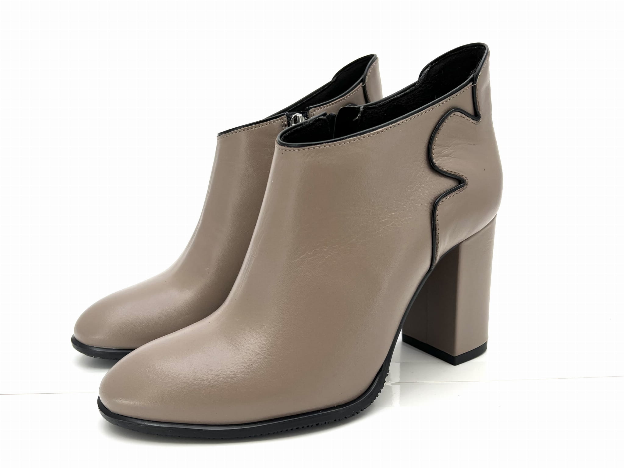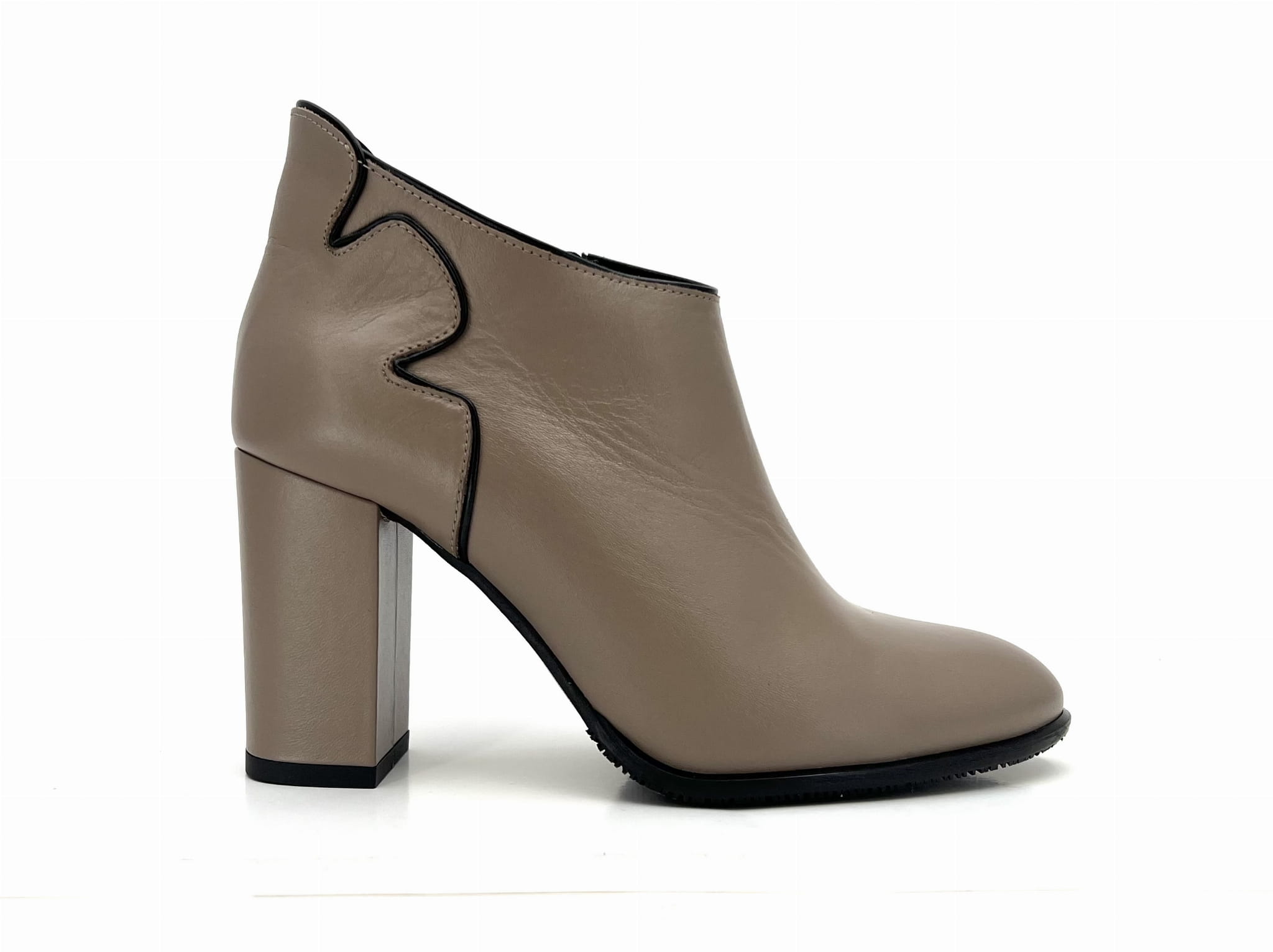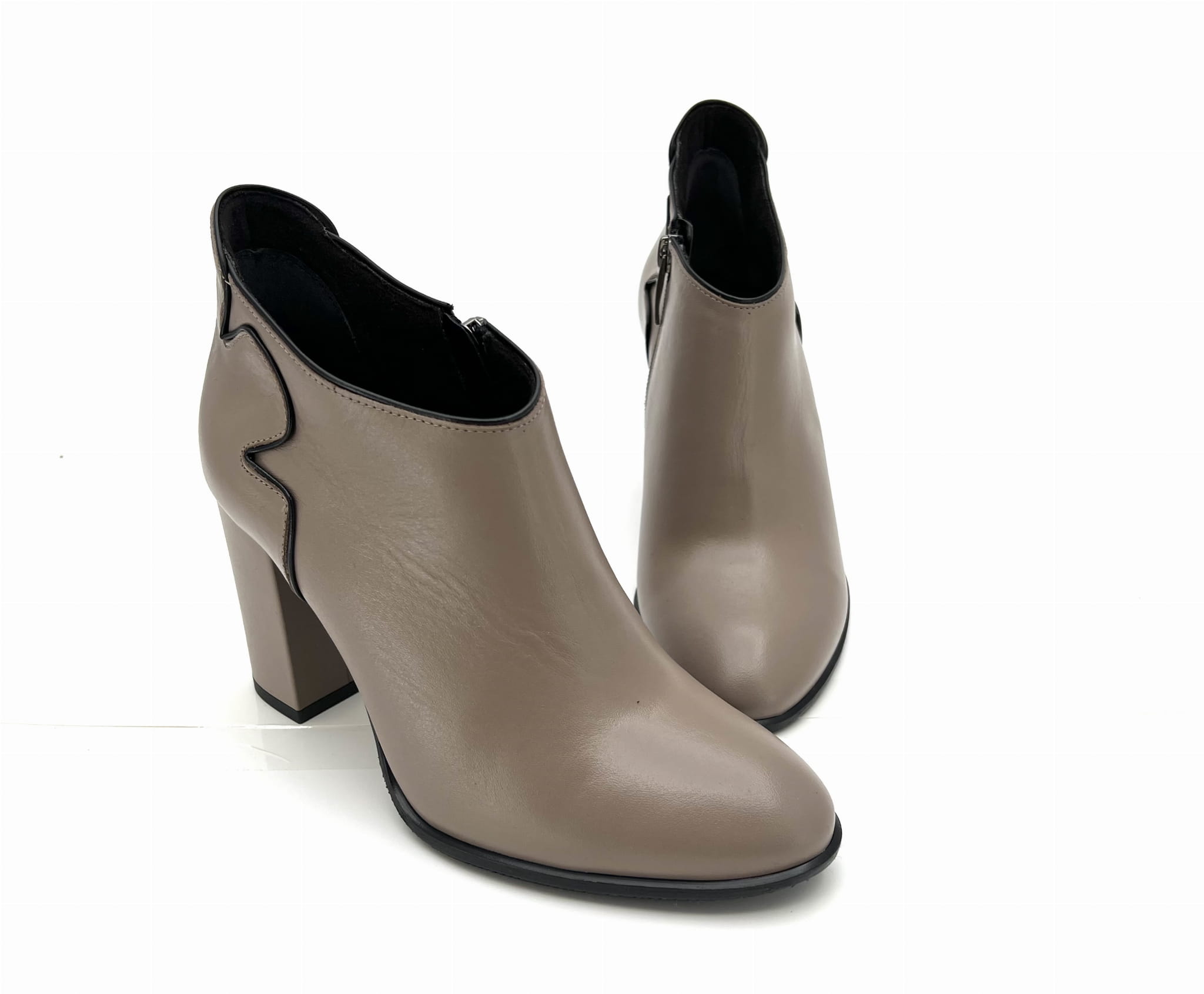 2761 botek w kolorze cappuccino z krótką cholewką na słupkowym obcasie