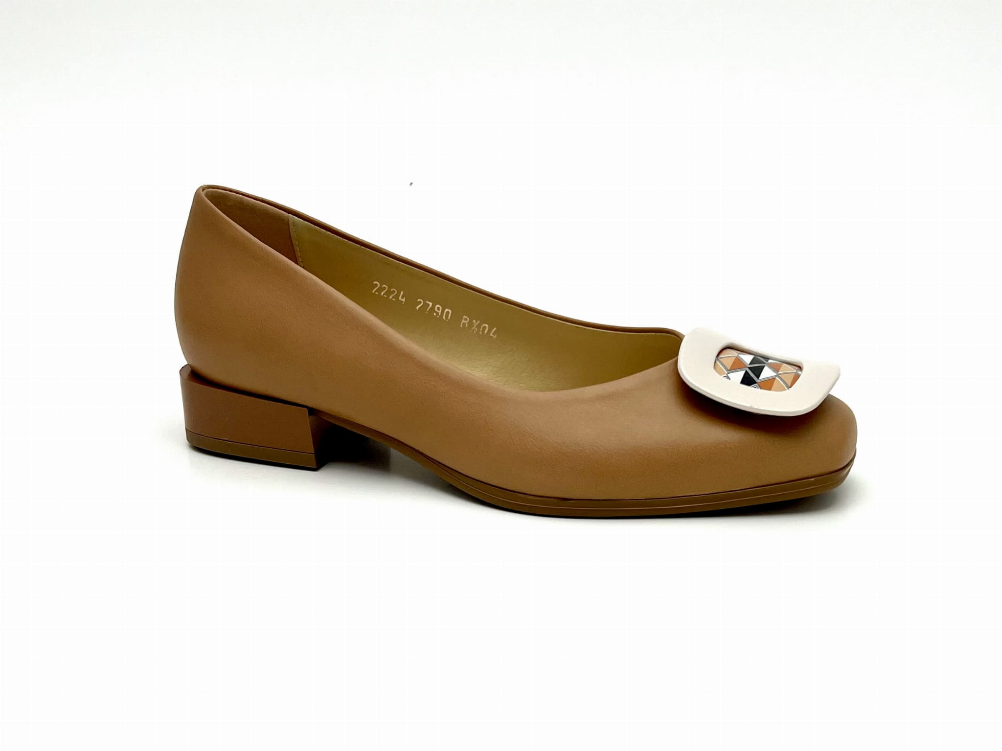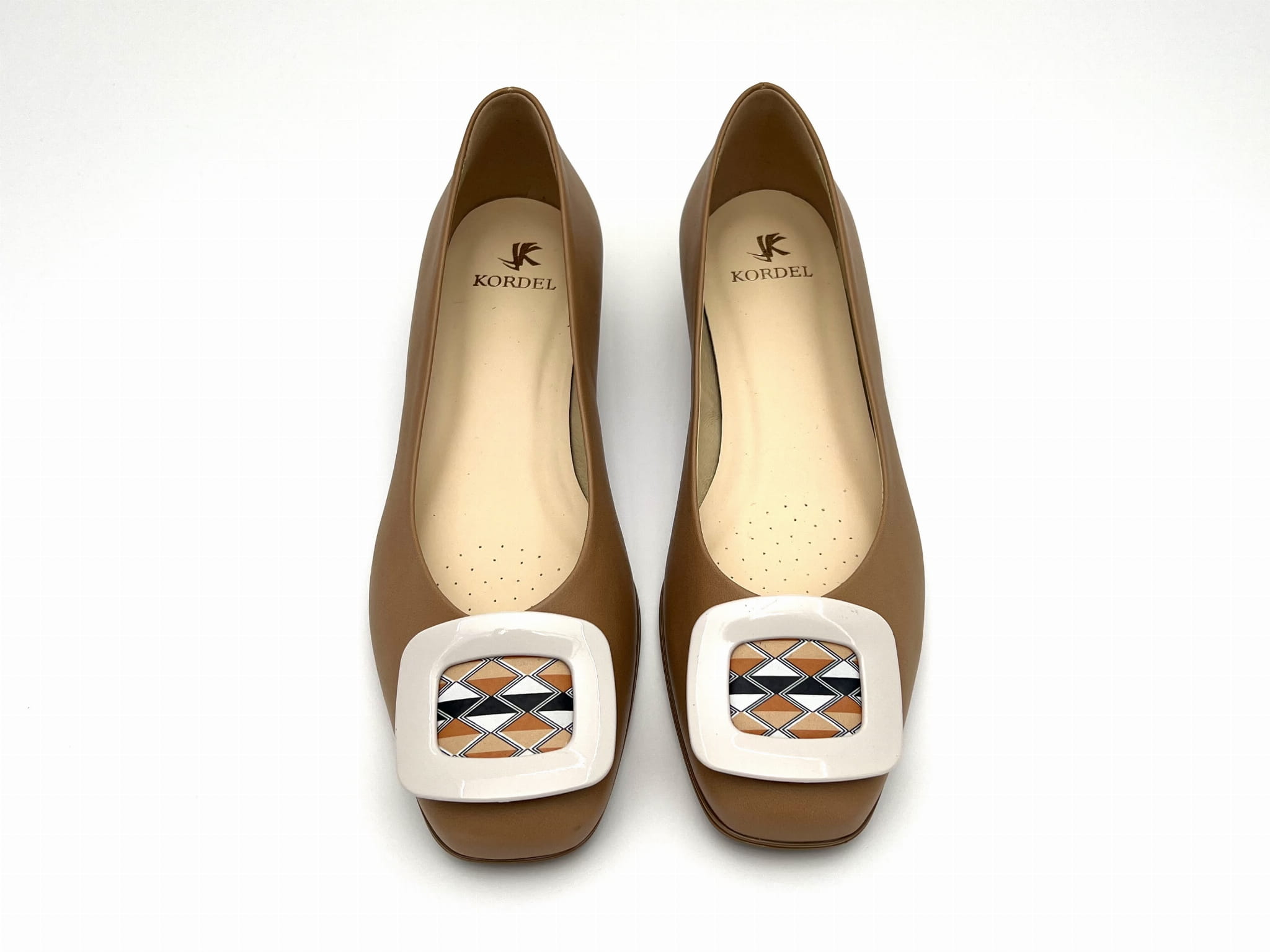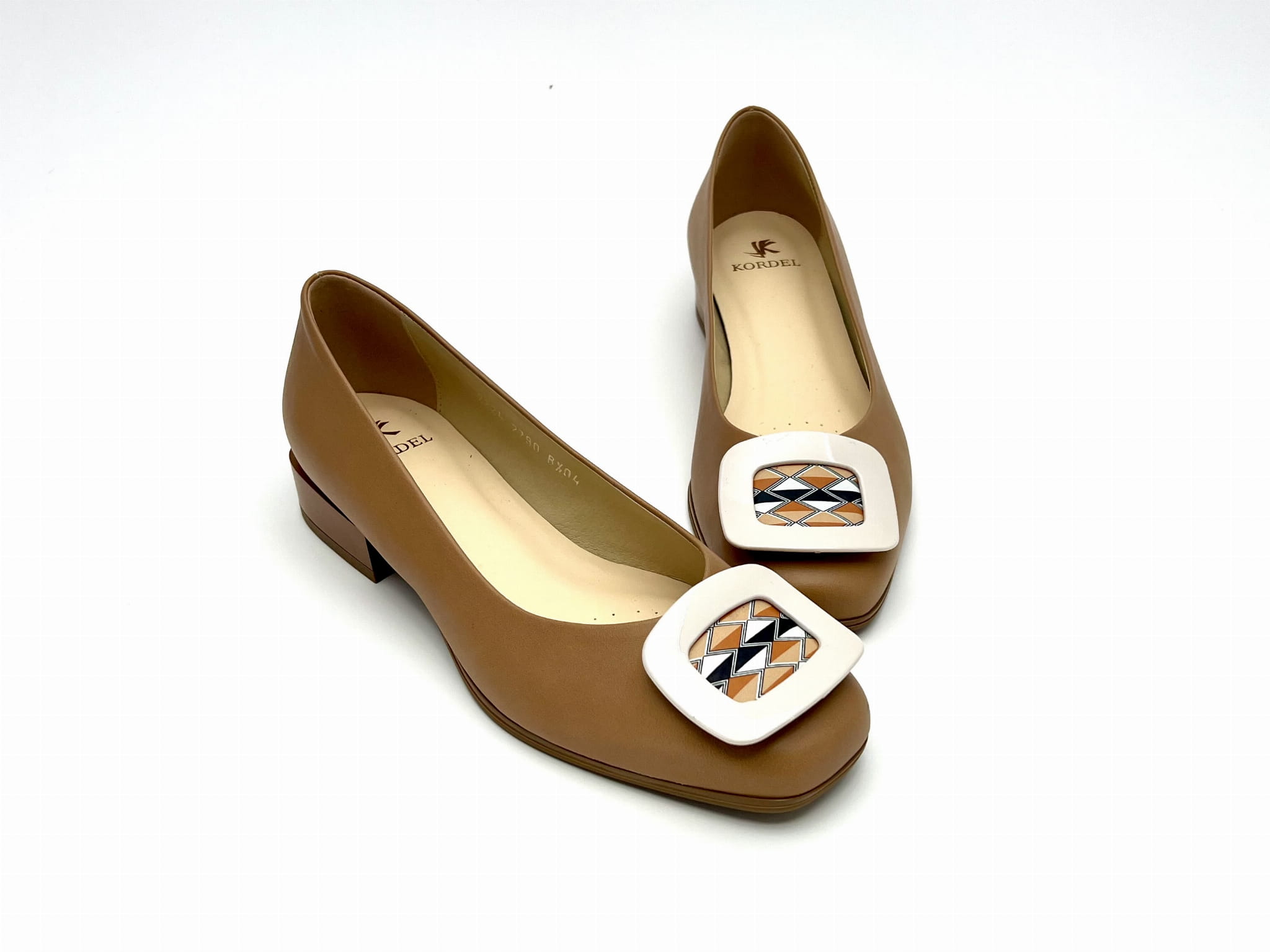 Elegancka balerina na 2 cm obcasie, w rudym kolorze. Balerina wykonana została ze skóry naturalnej, miękkie logowane wyściółki zapewnią komfort chodzenia.