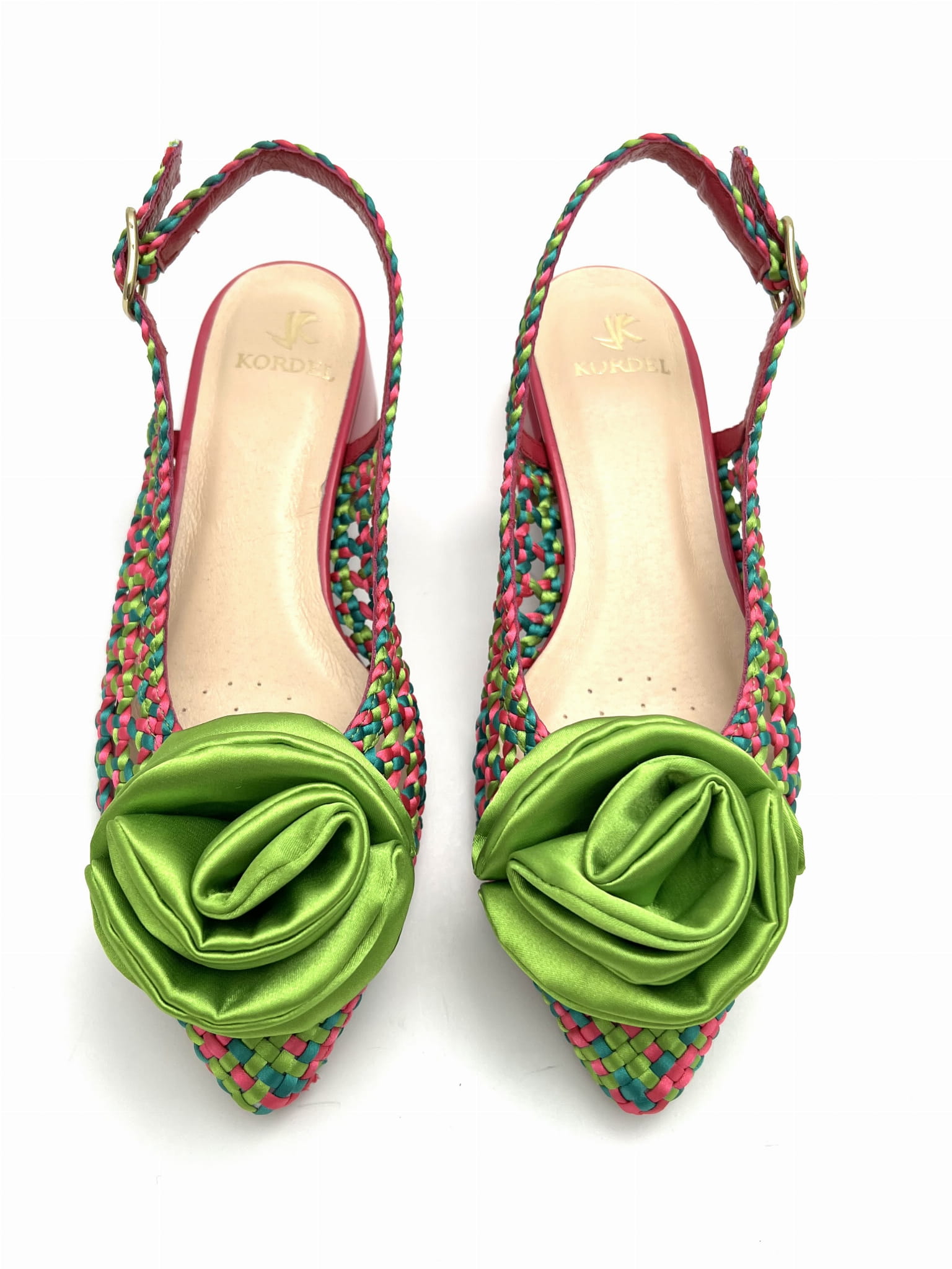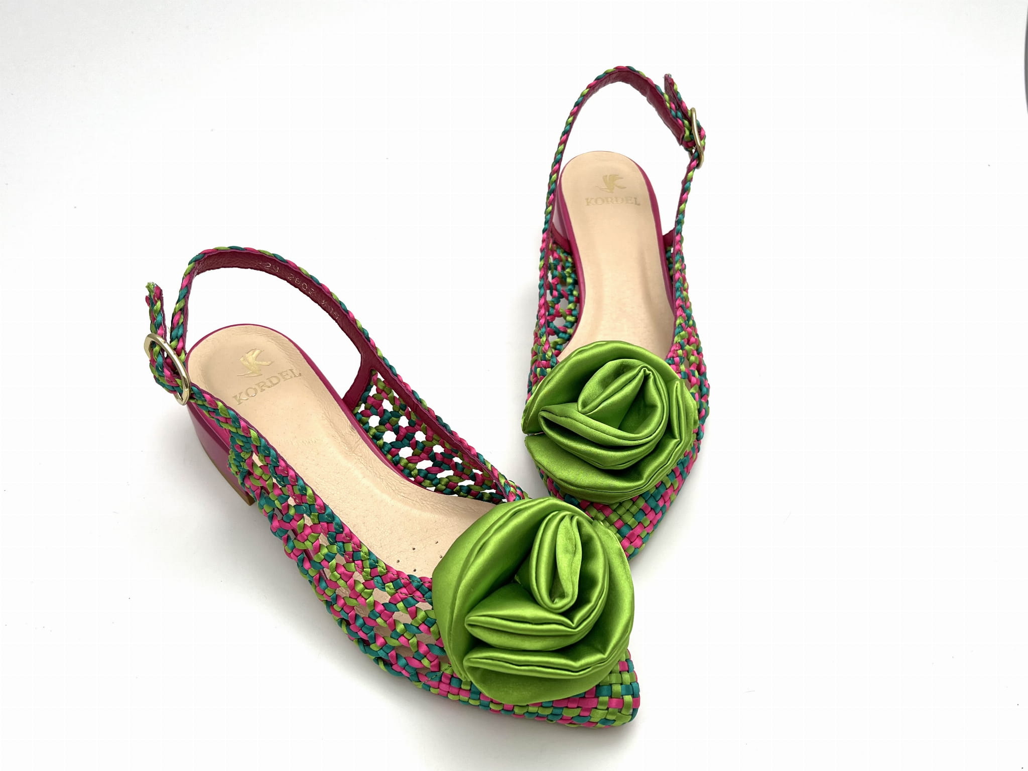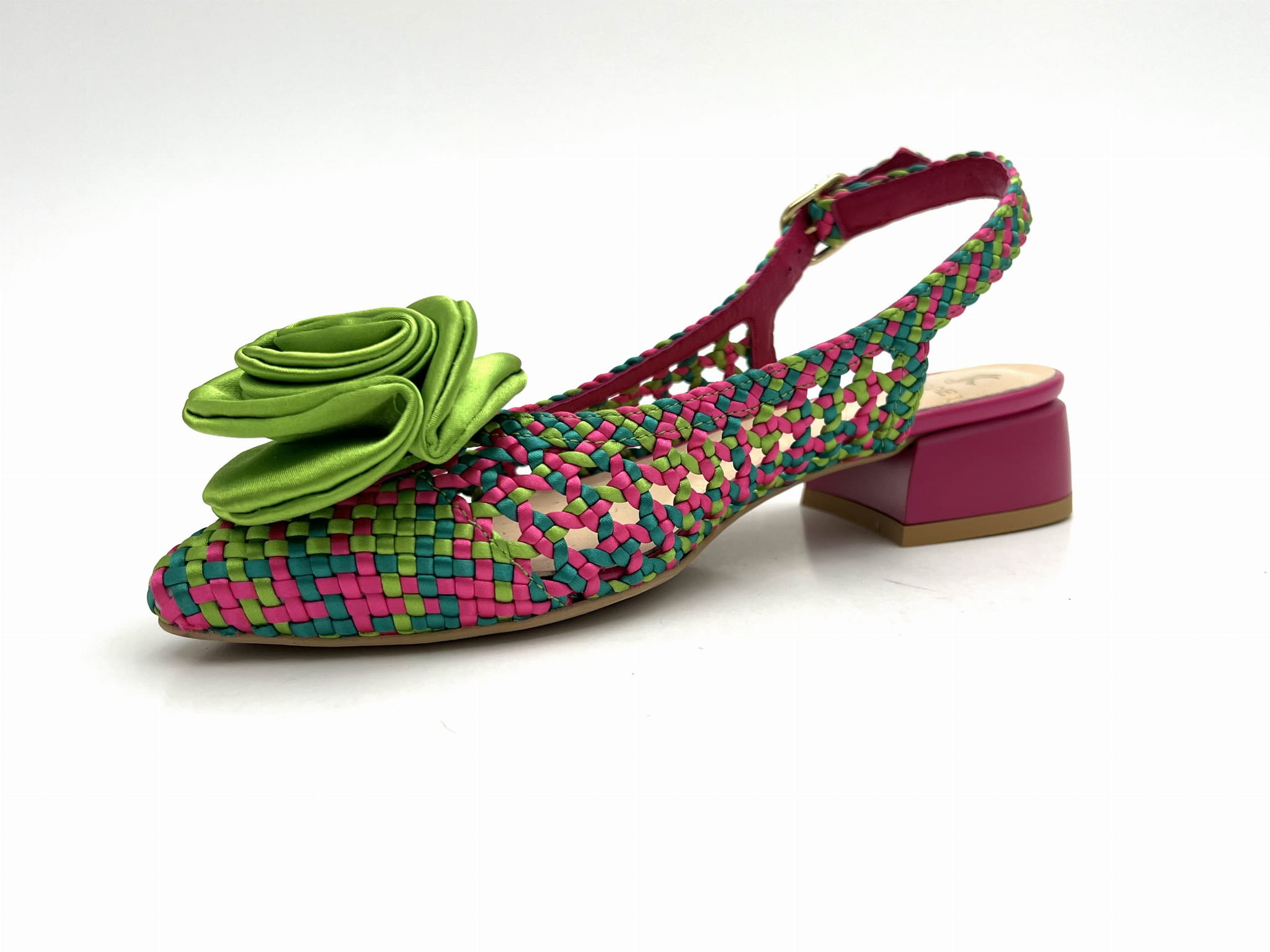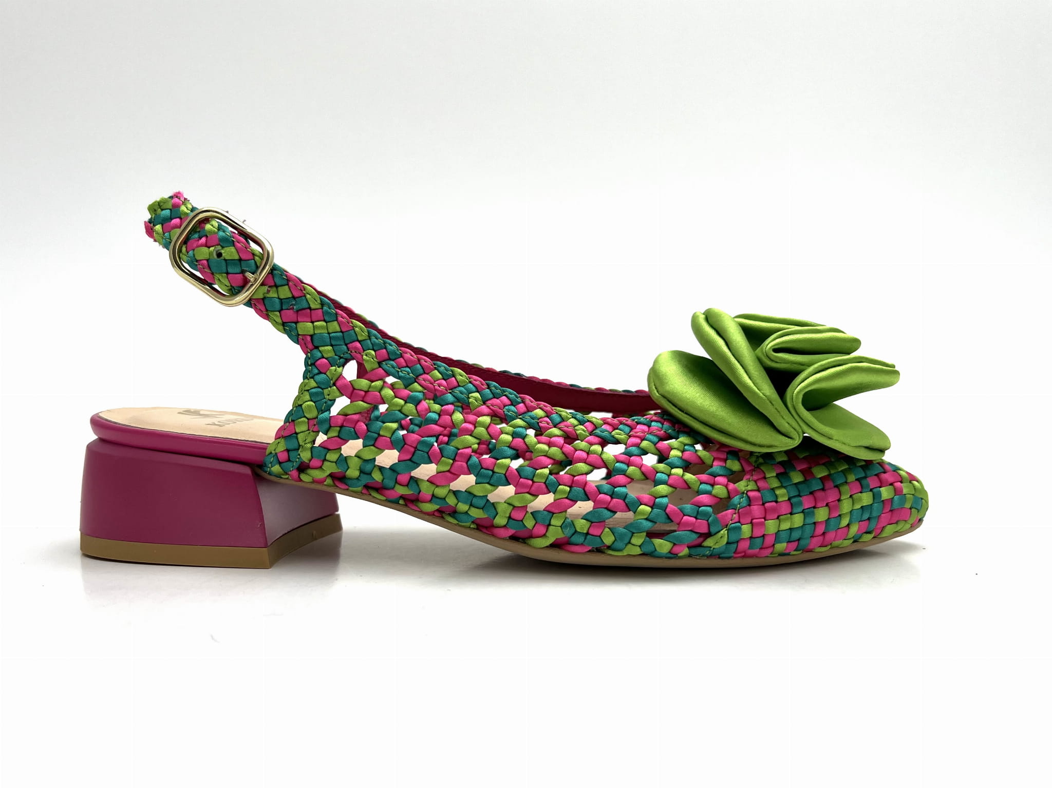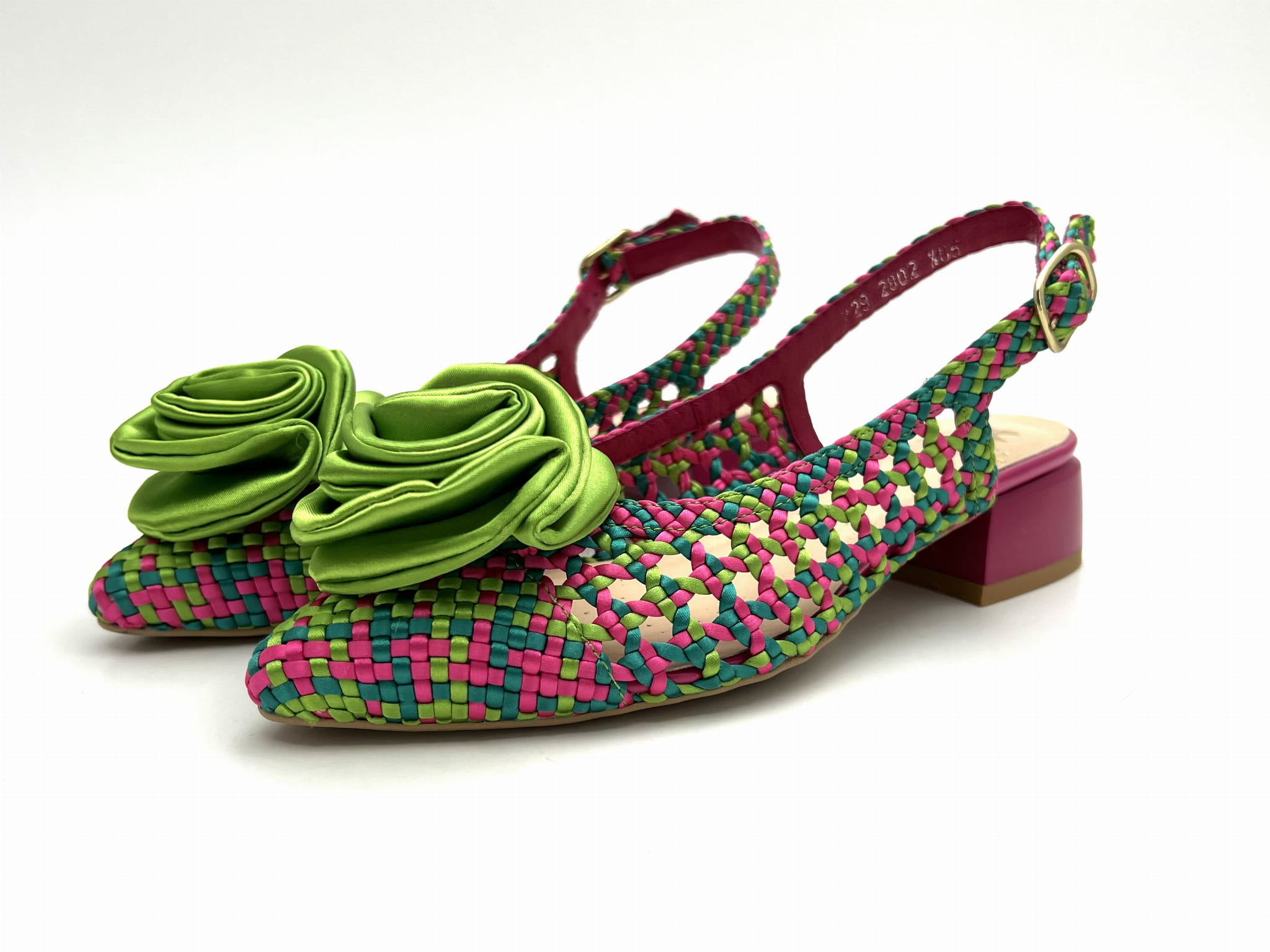 2802 balerina w odcieniach fuksji i zieleni z odkrytą piętą z ozdobą