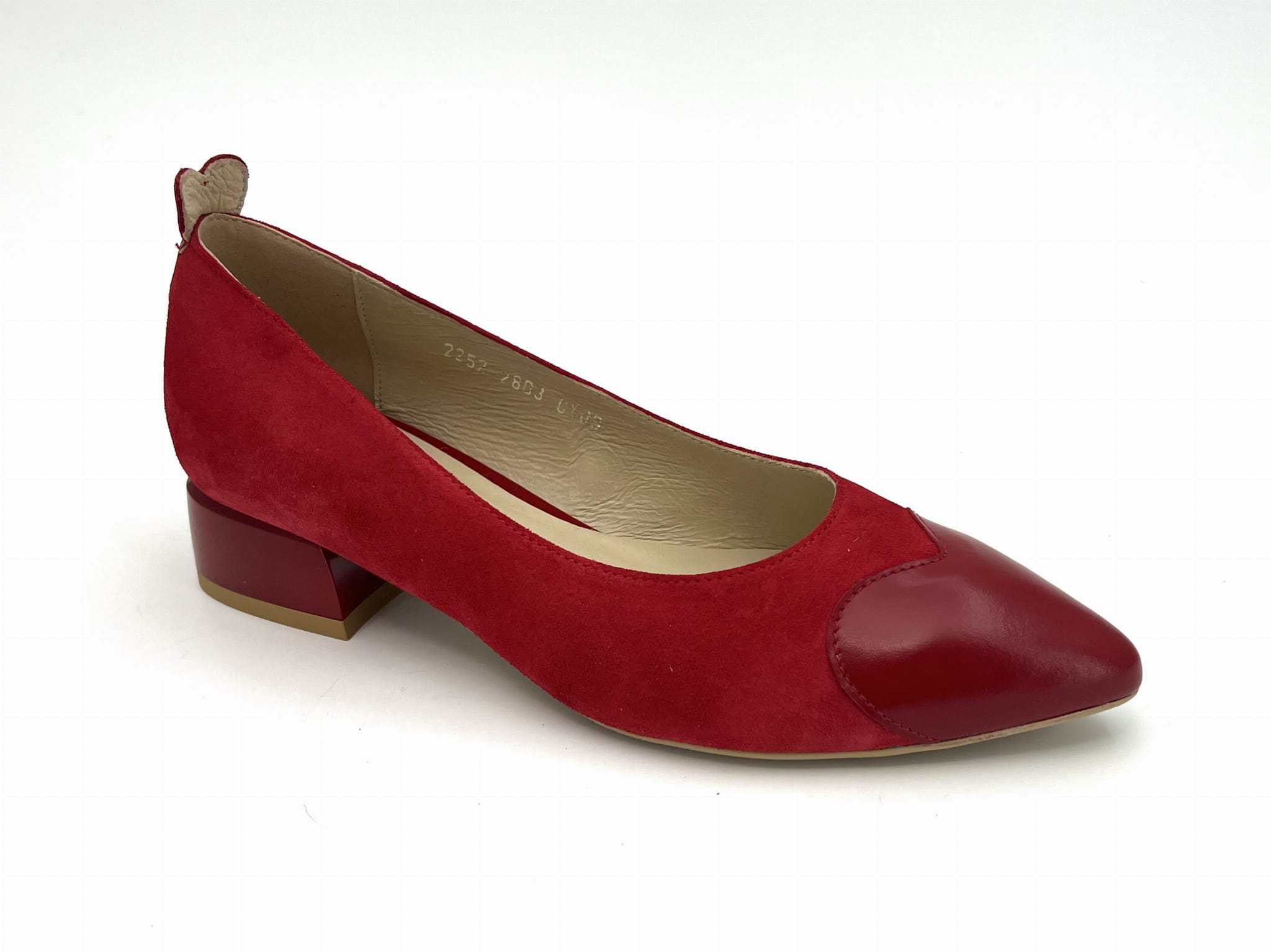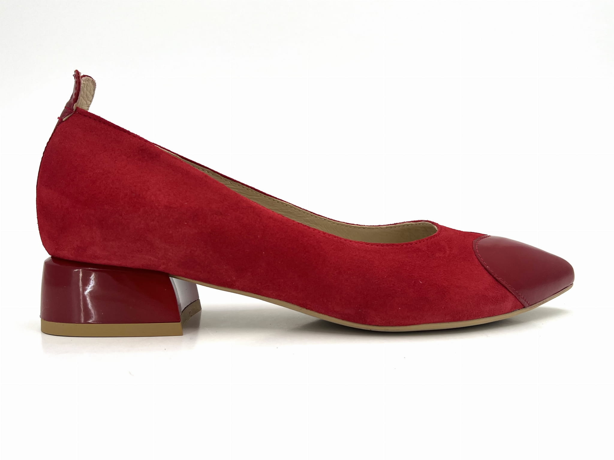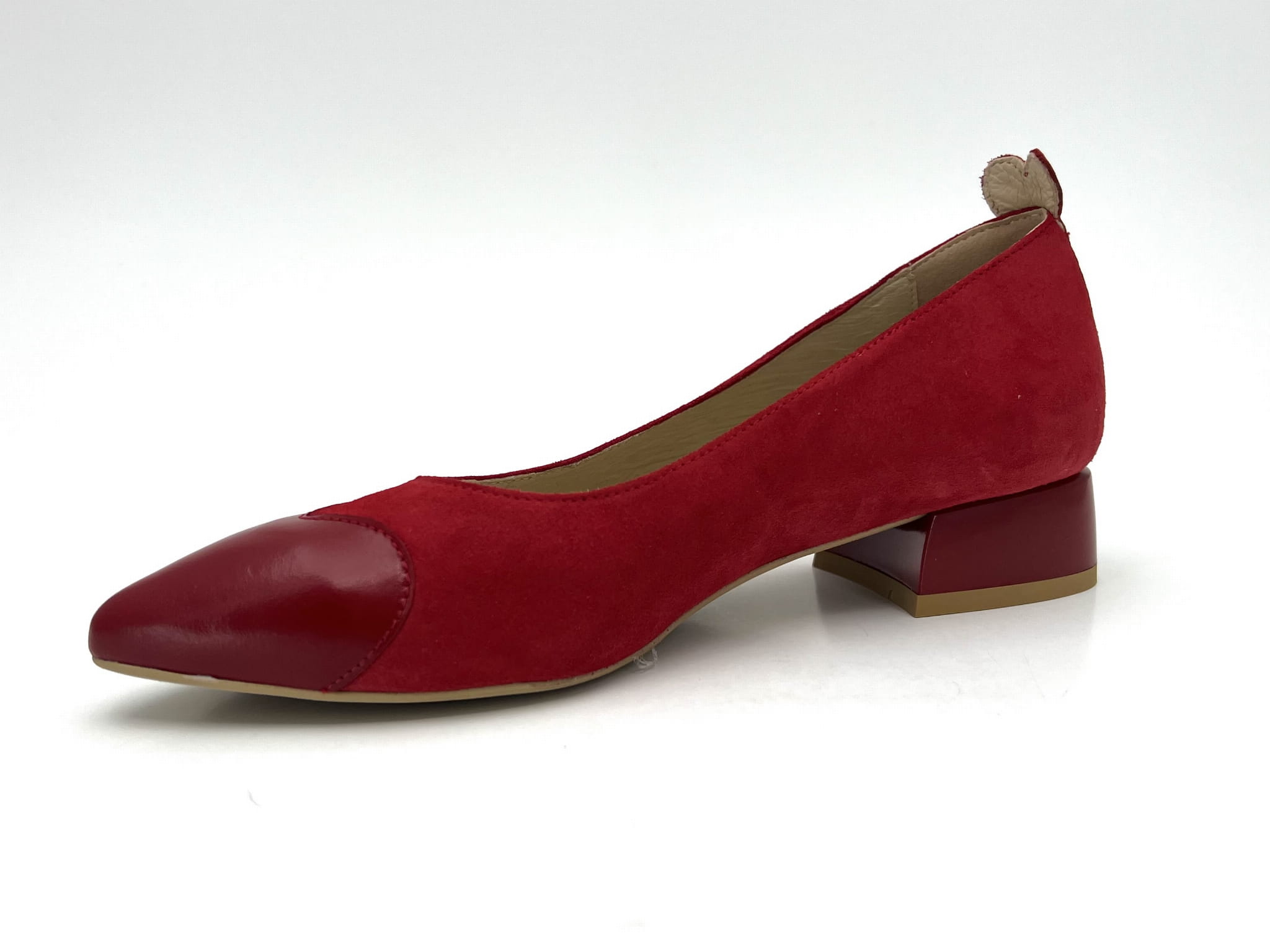 Elegancka balerina na 3 cm obcasie, w czerwonym kolorze z naszytym czerwony sercem. Balerina wykonana została ze skóry naturalnej, miękkie logowane wyściółki zapewnią komfort chodzenia.