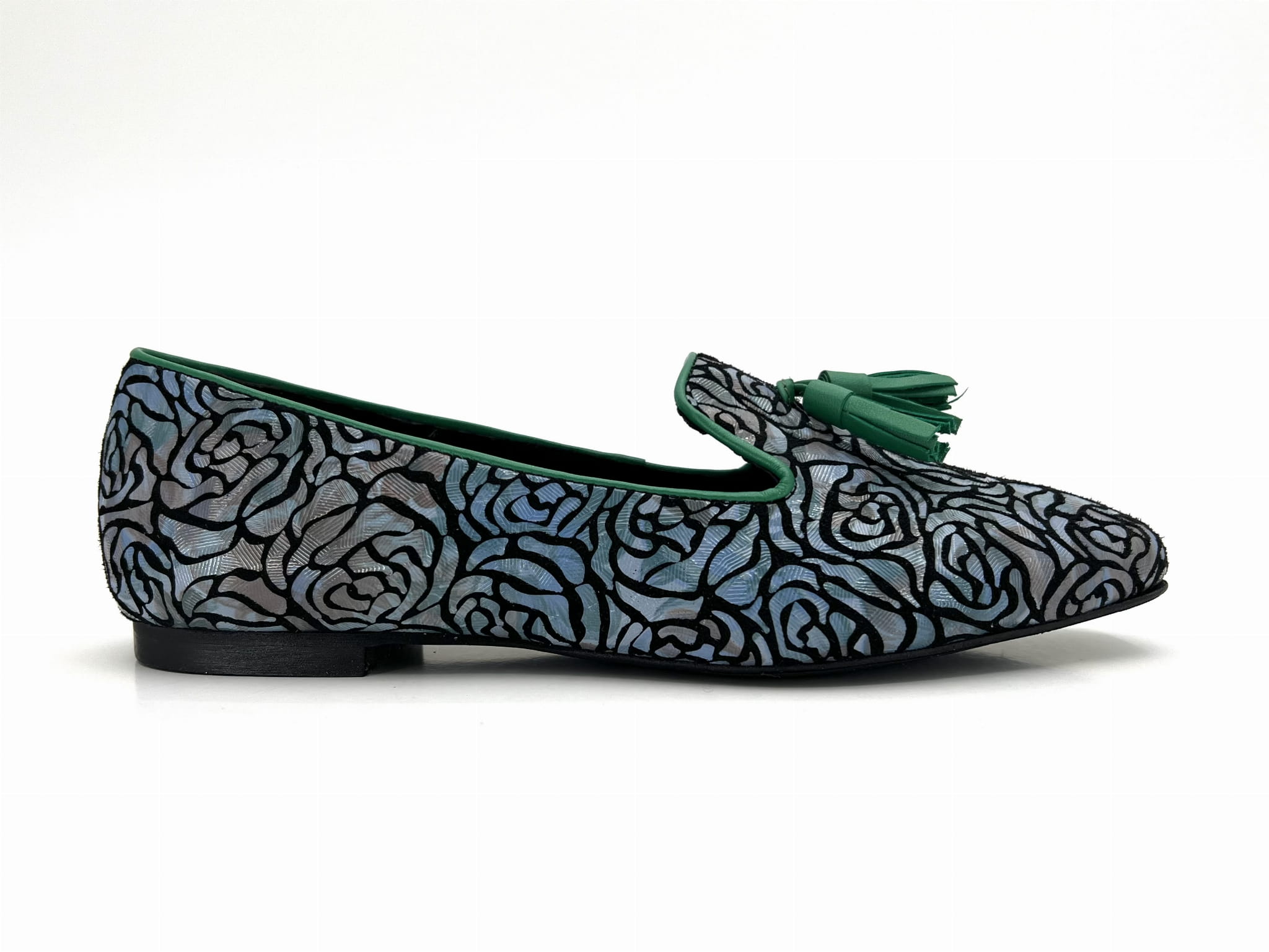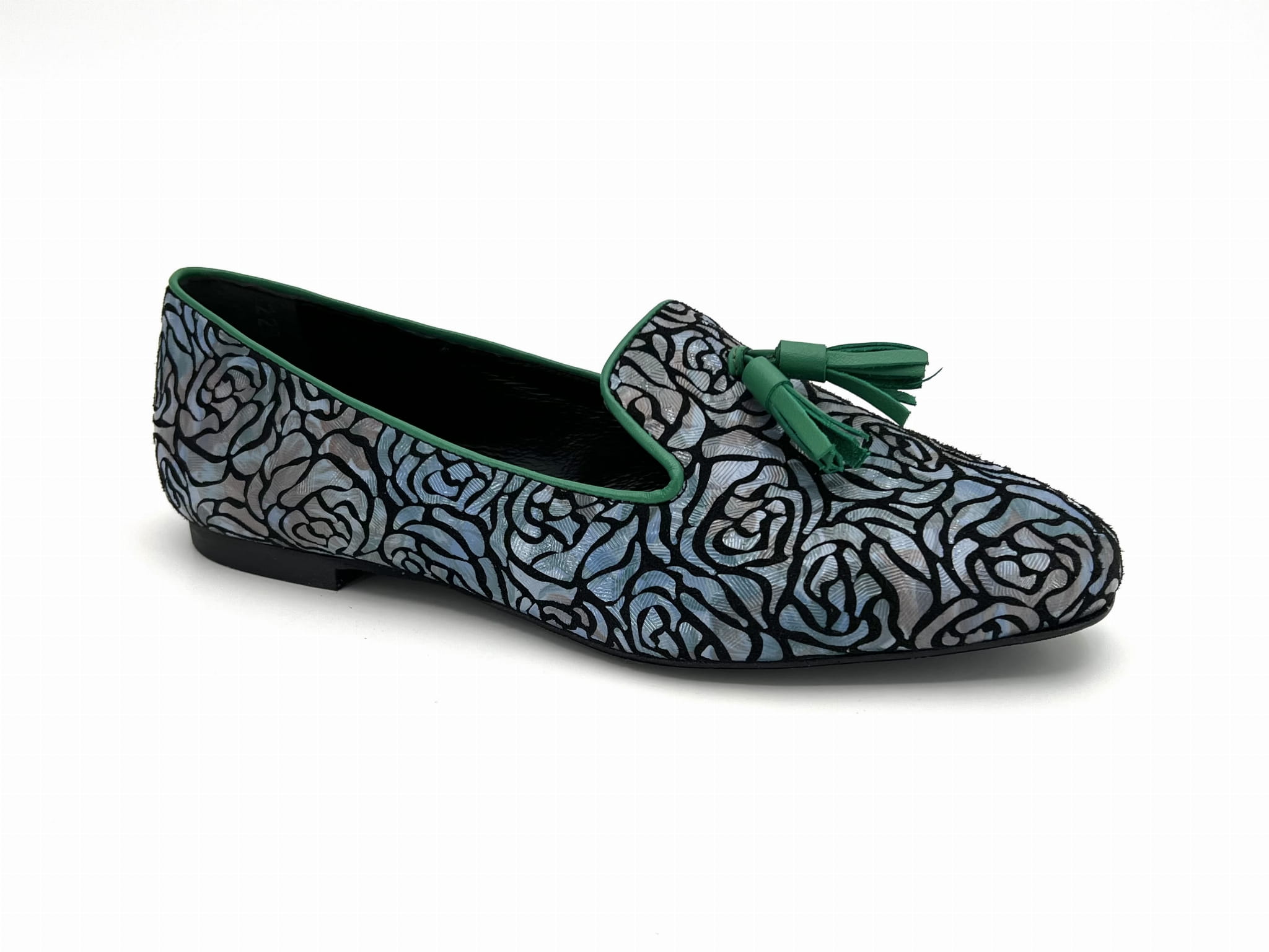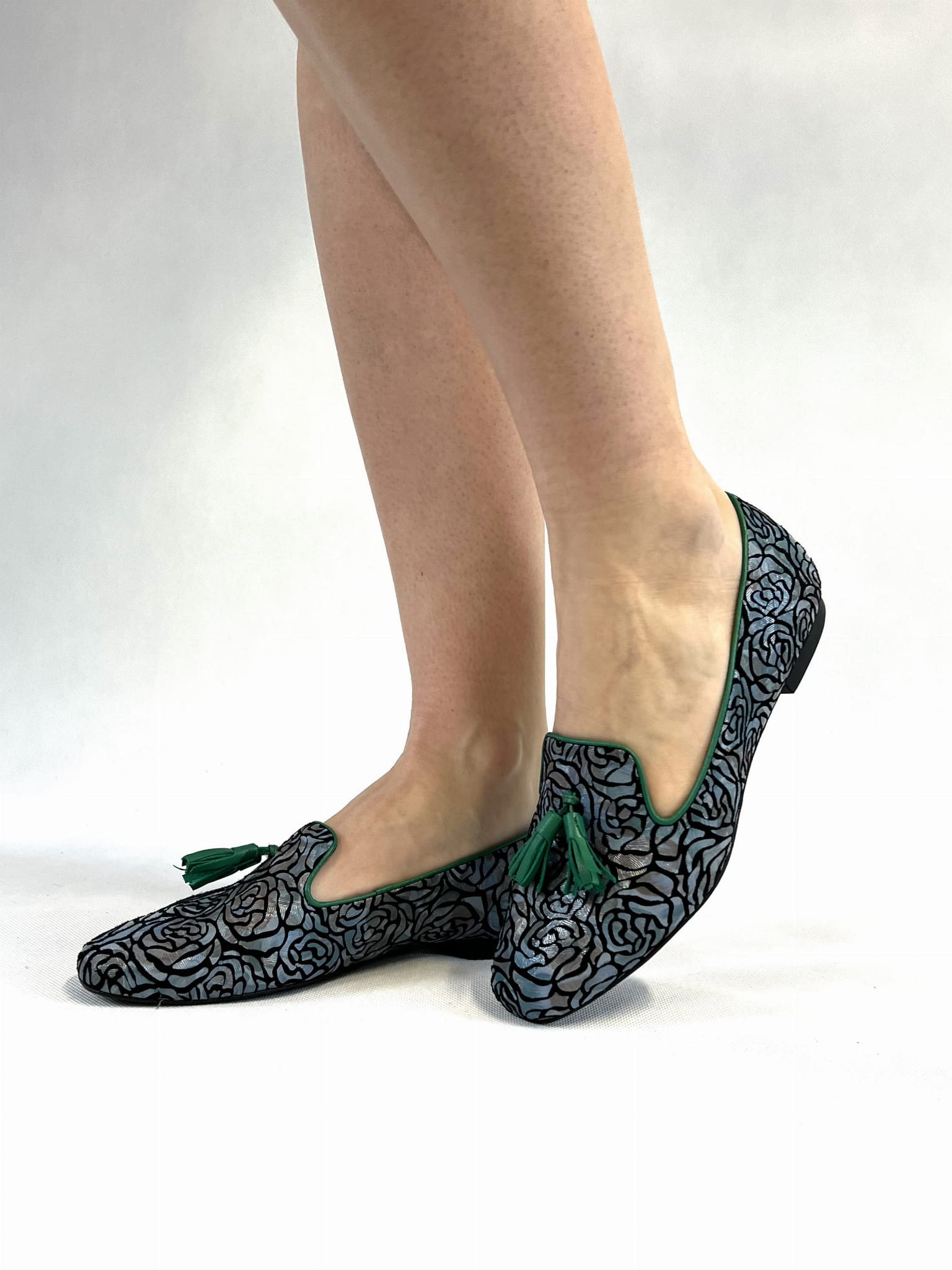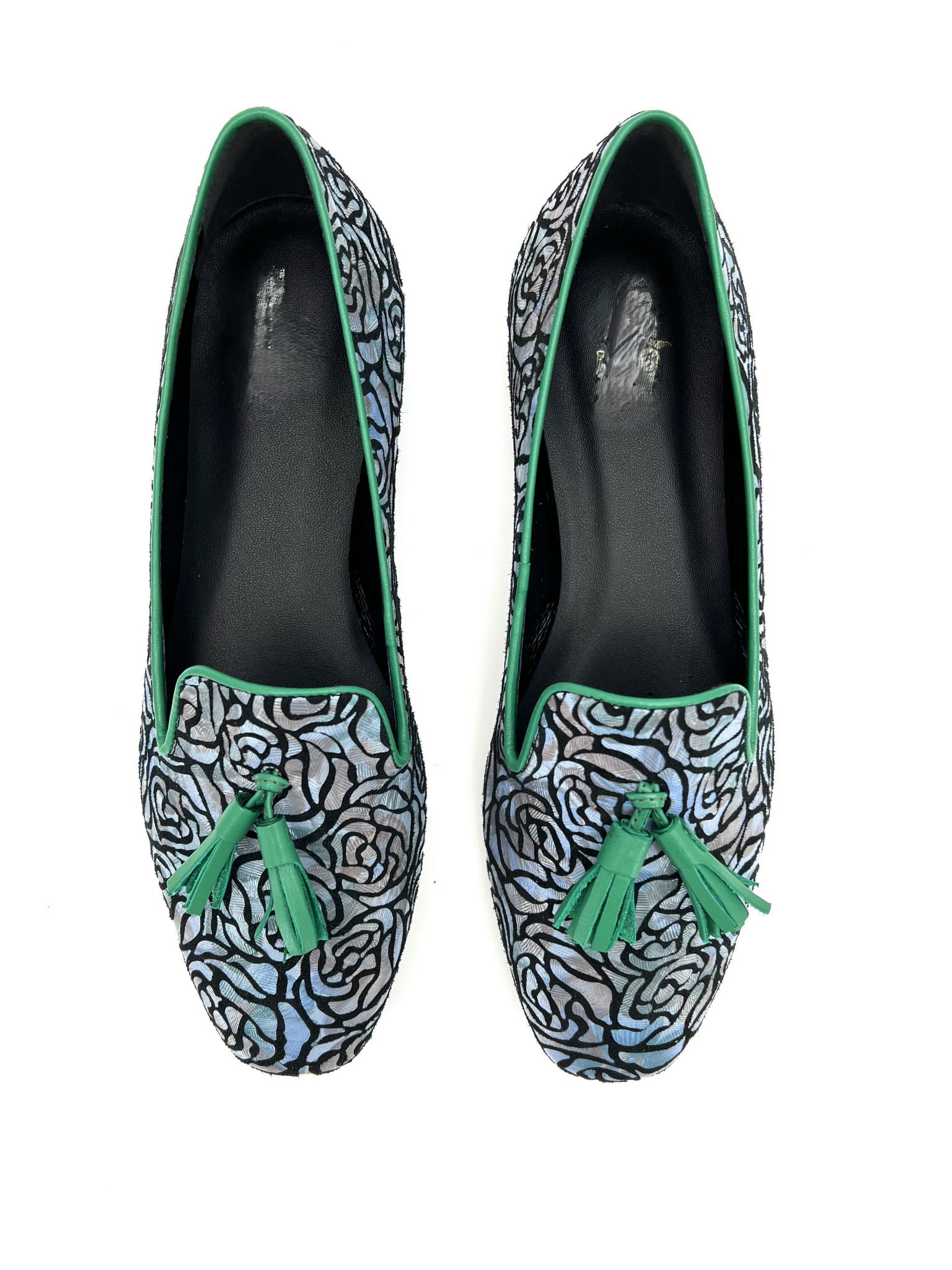 Miękka i wygodna balerina na 1,5 cm obcasie. Wykonana ze skóry naturalnej w najmodniejszych wzorach w kolorach czarno zielonym.