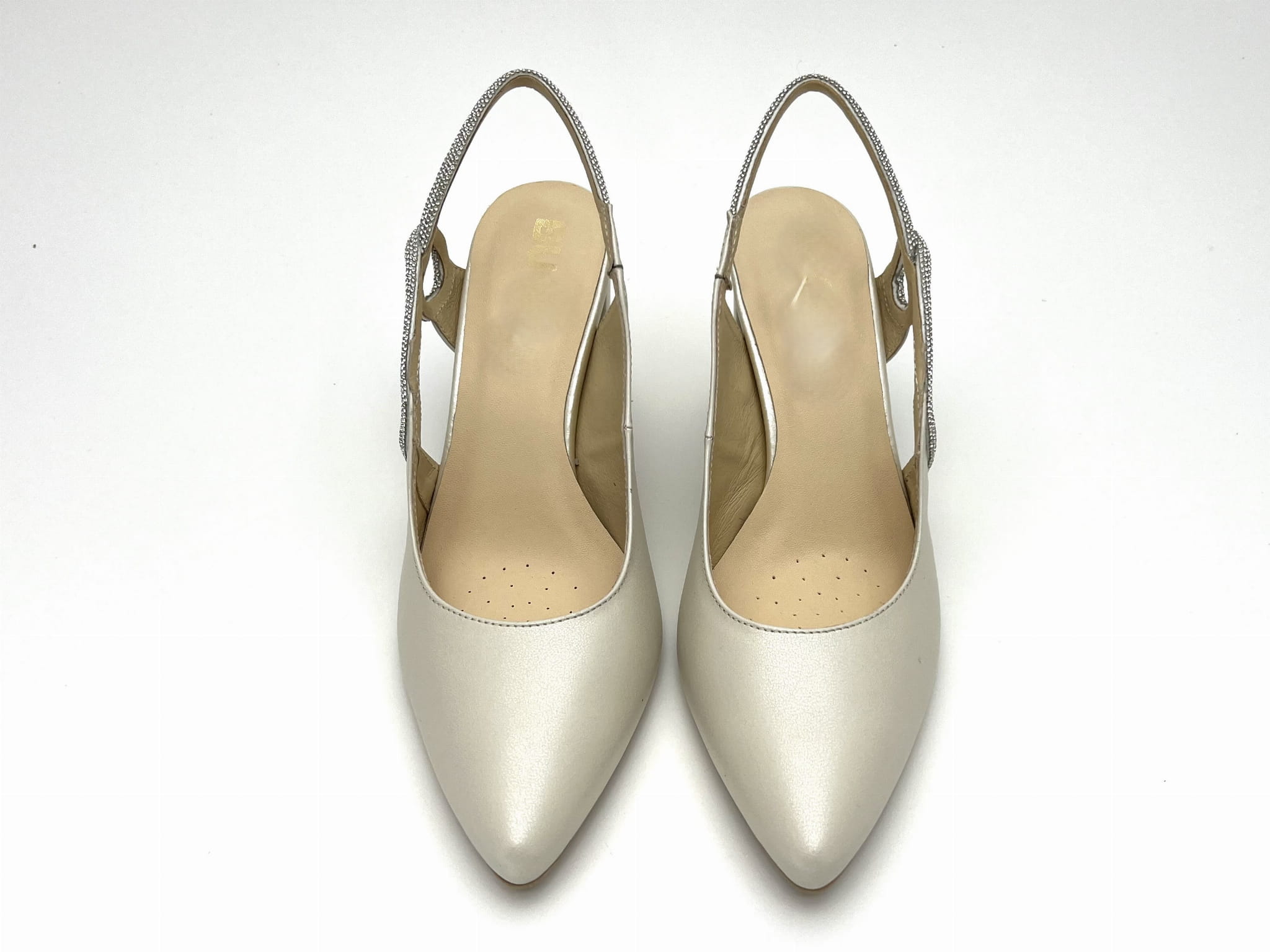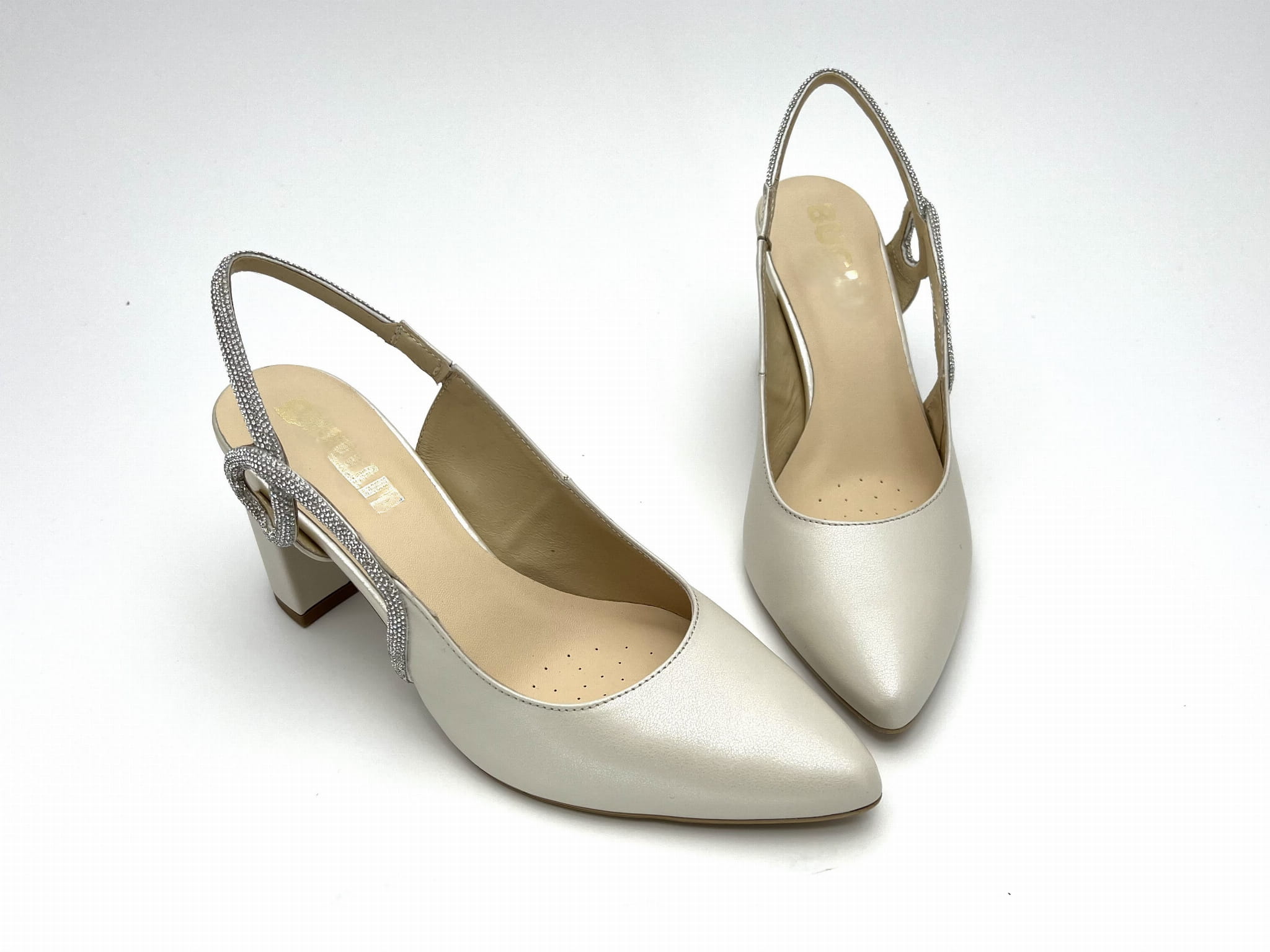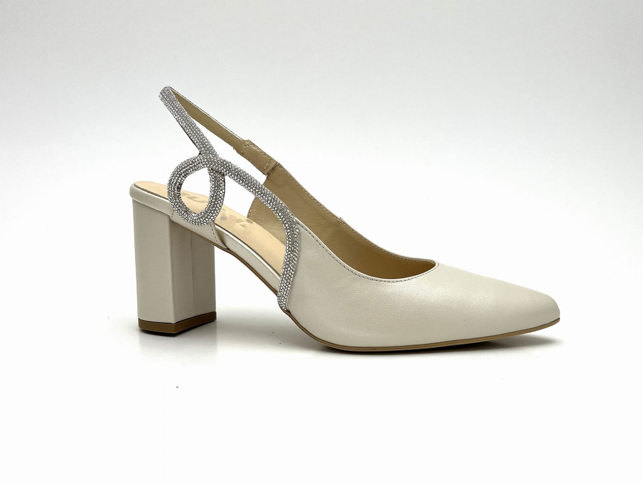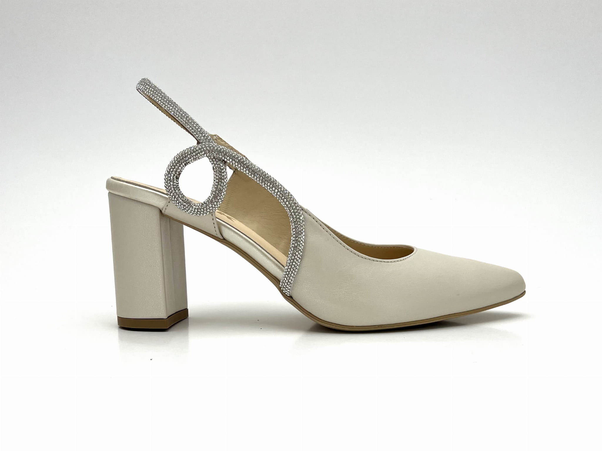 2813 czółenka bez pięty z ozdobnym warkoczem w kolorze ecri