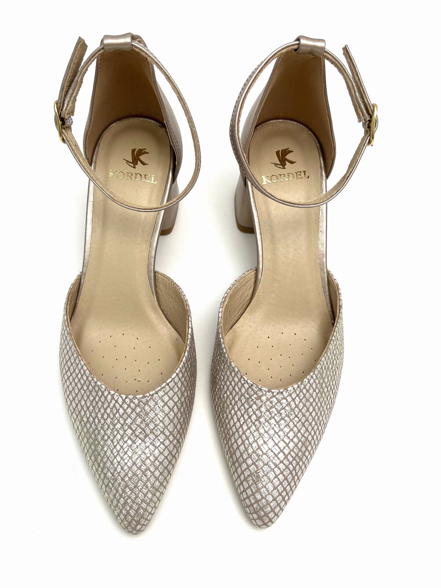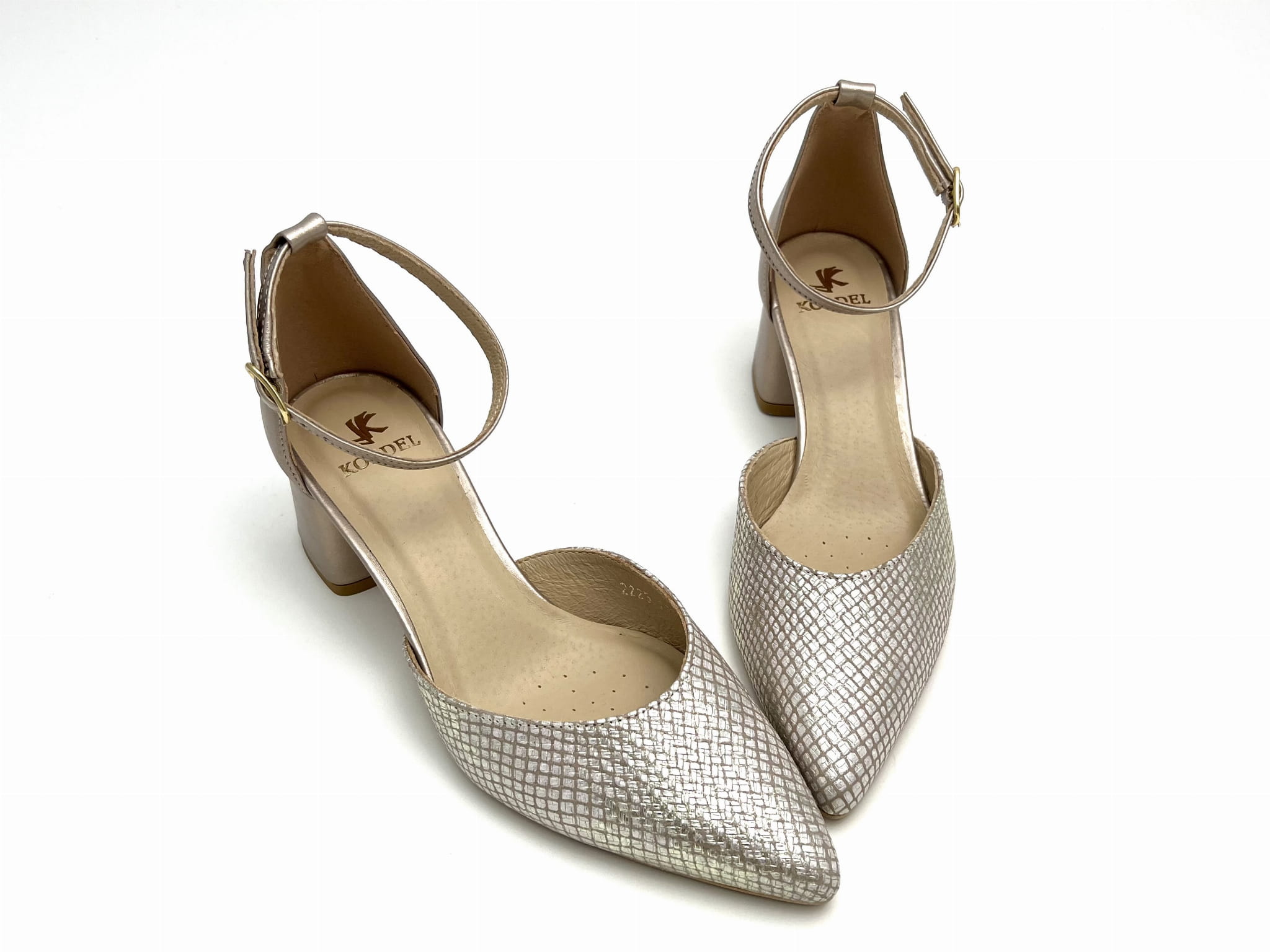 2832 złote czółenka z zapięciem koło kostki