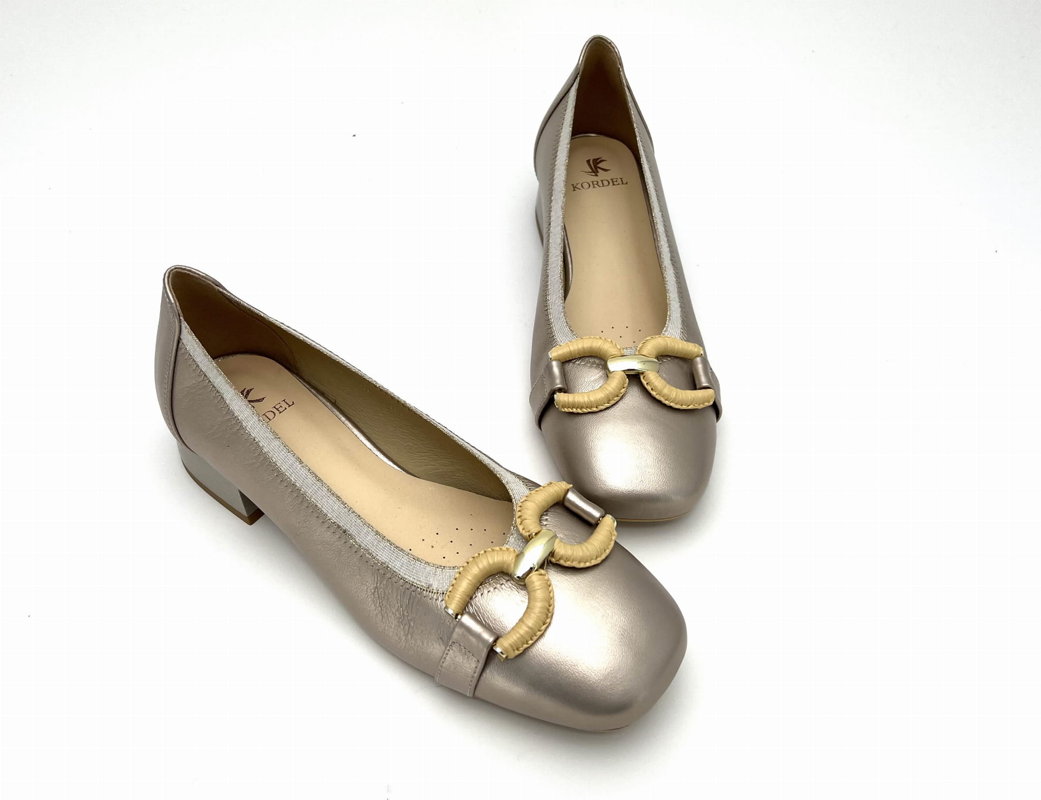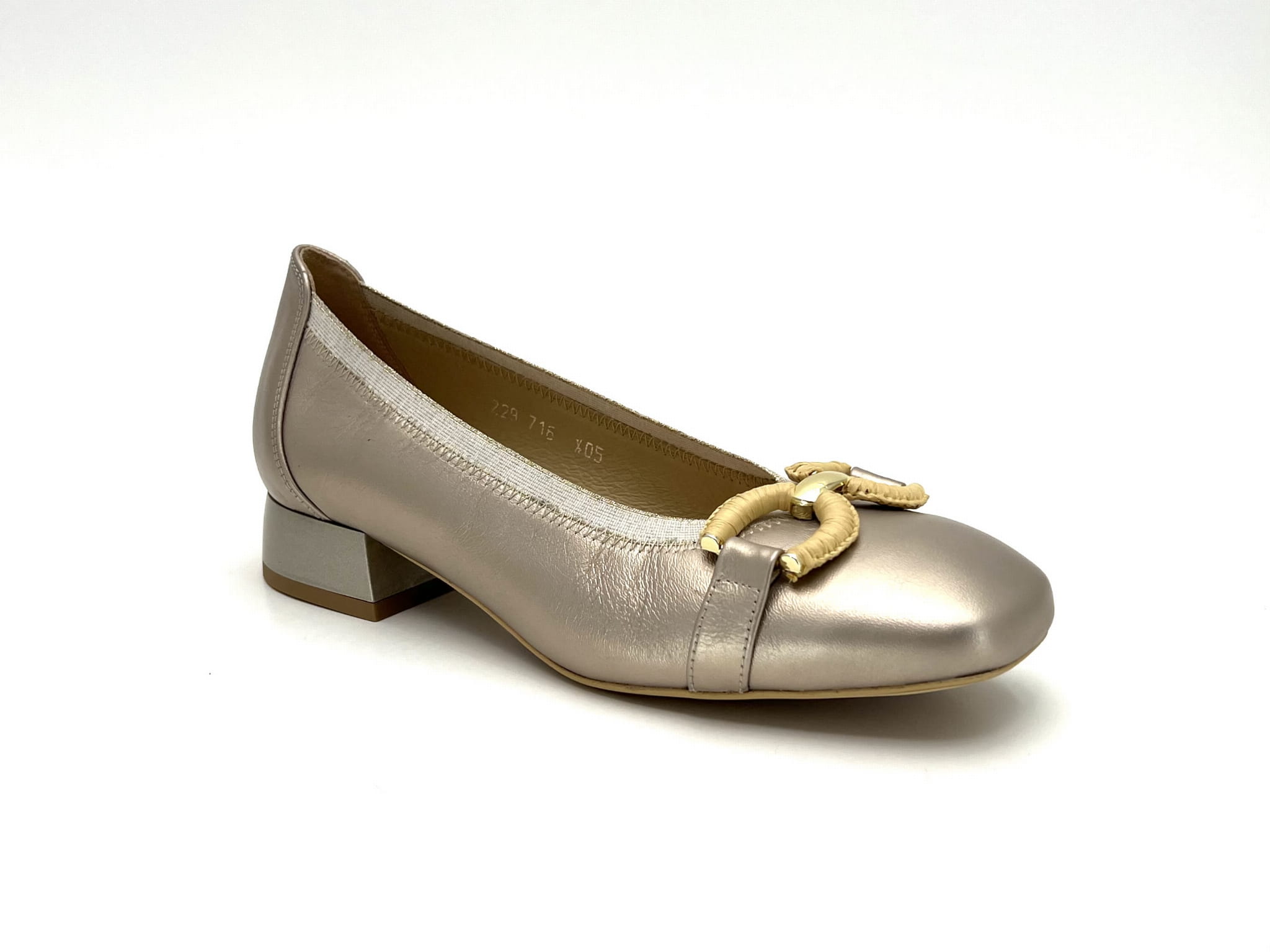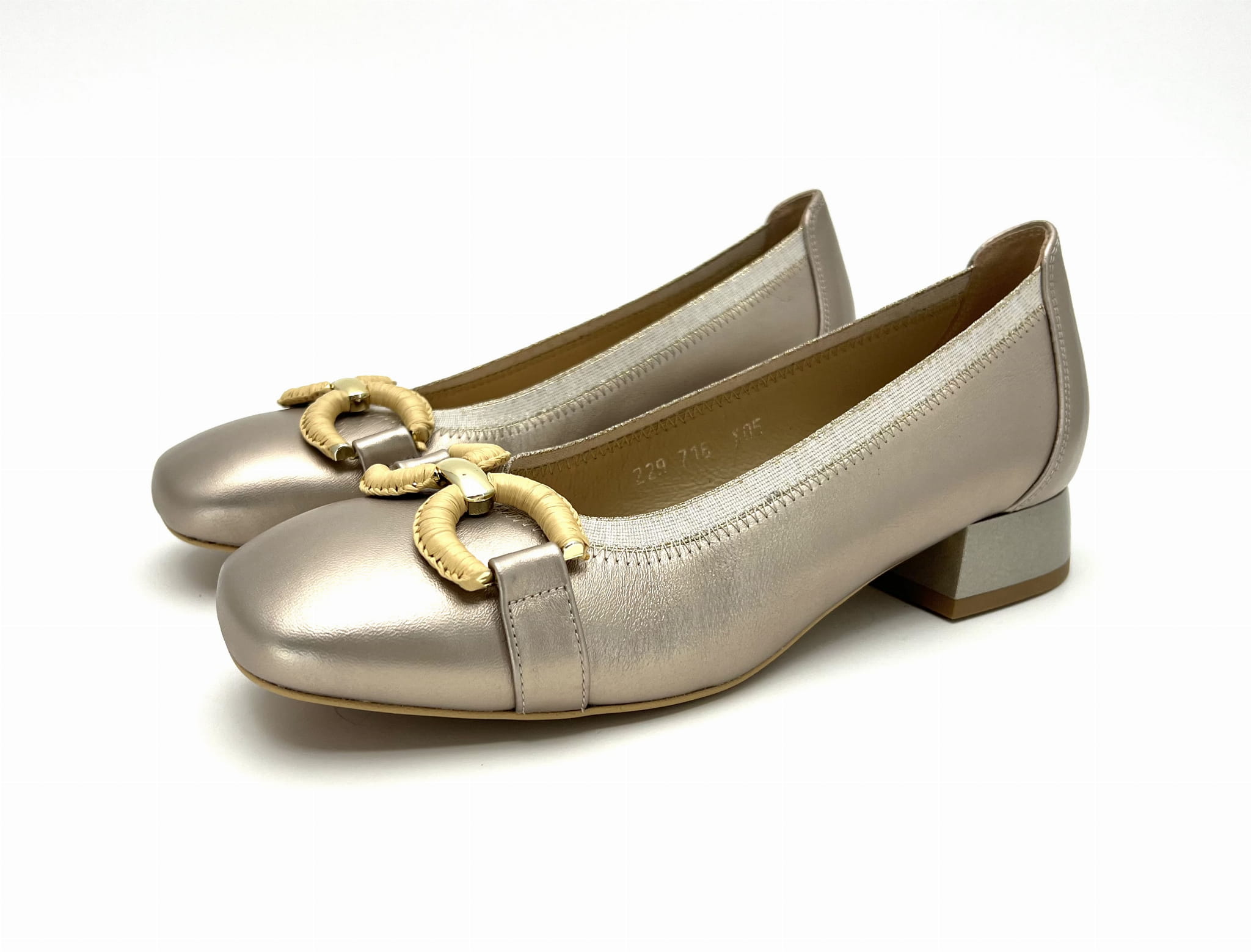 2842 czółenka w złoty kolorze na niskim obcasie