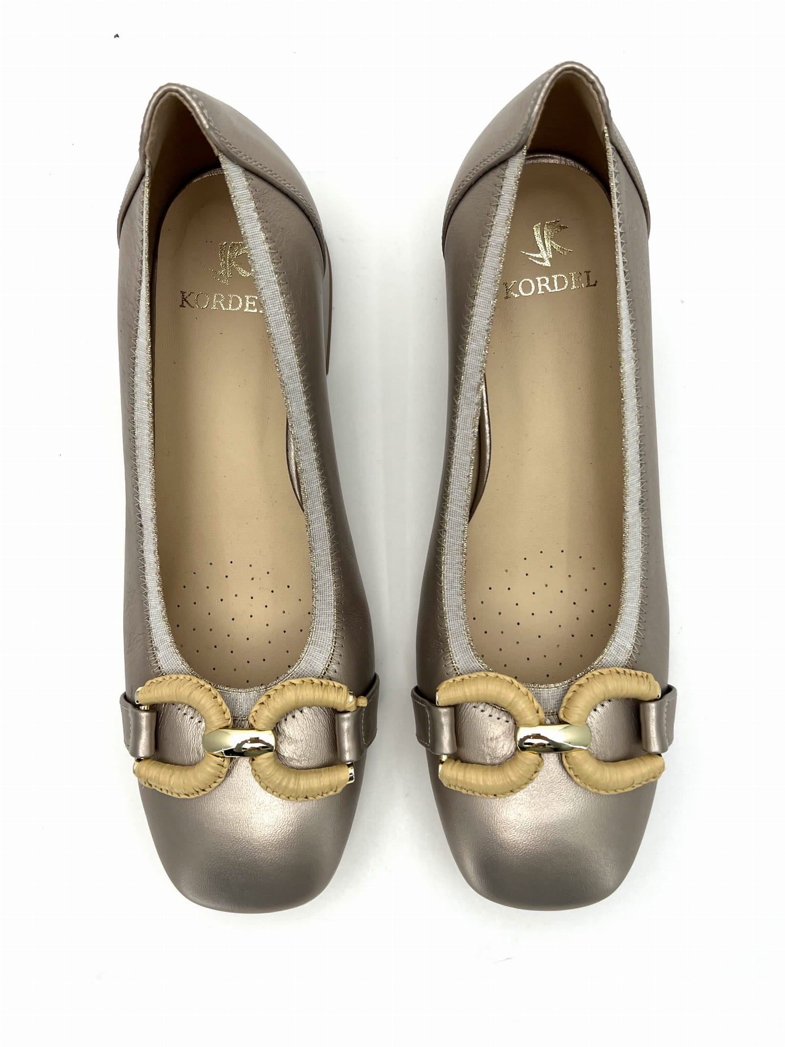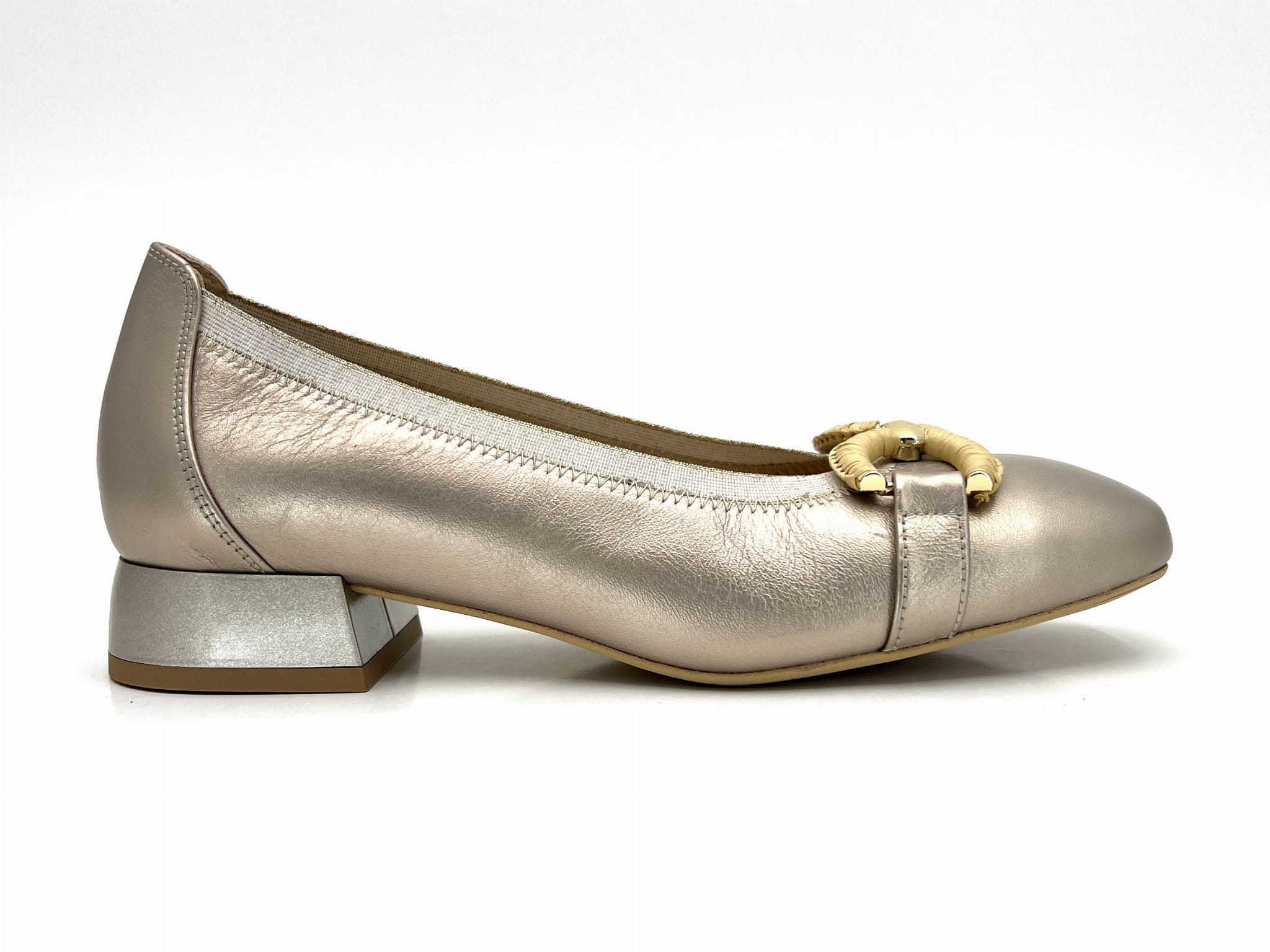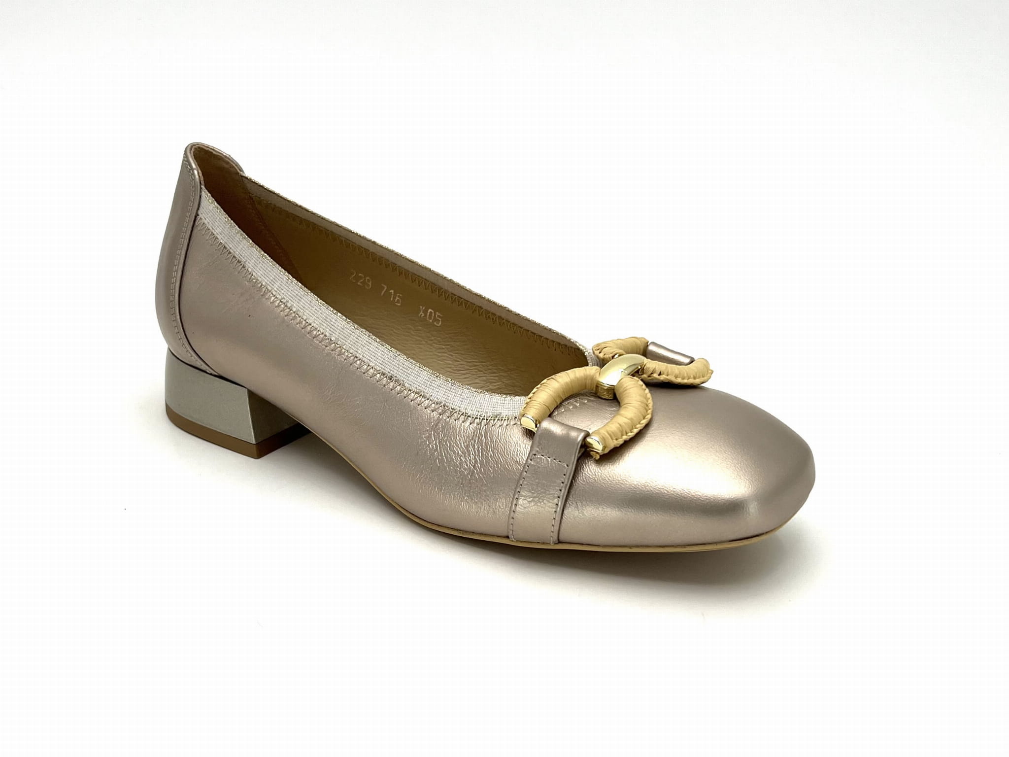2842 czółenka w złoty kolorze na niskim obcasie
