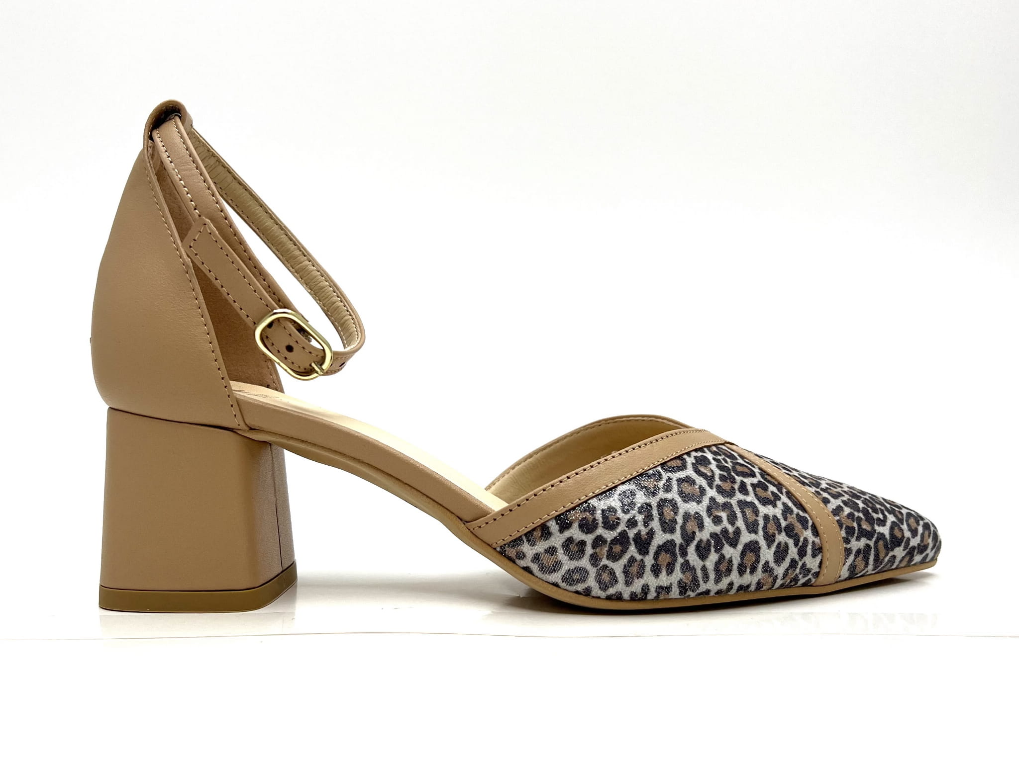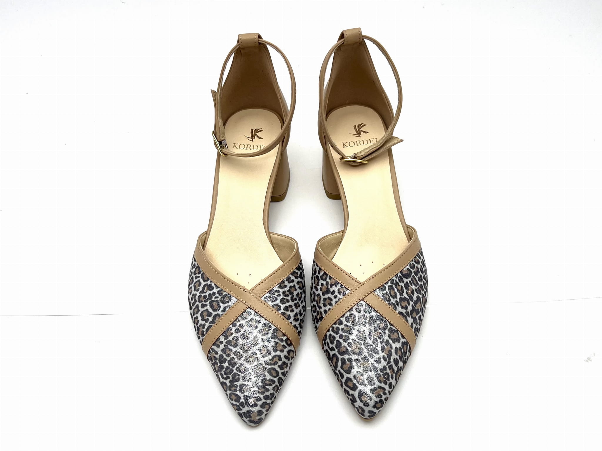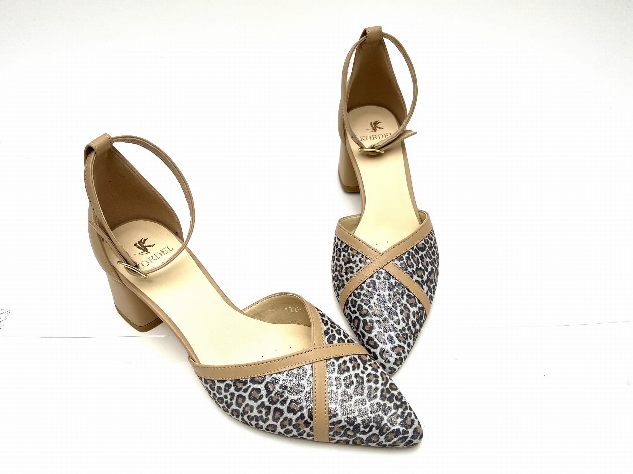 Czółenka w odcieniach koloru rudego. Zapinane koło kostki na klamerkę.