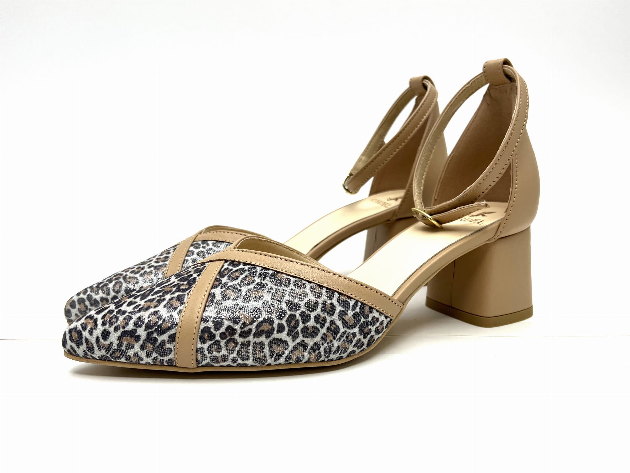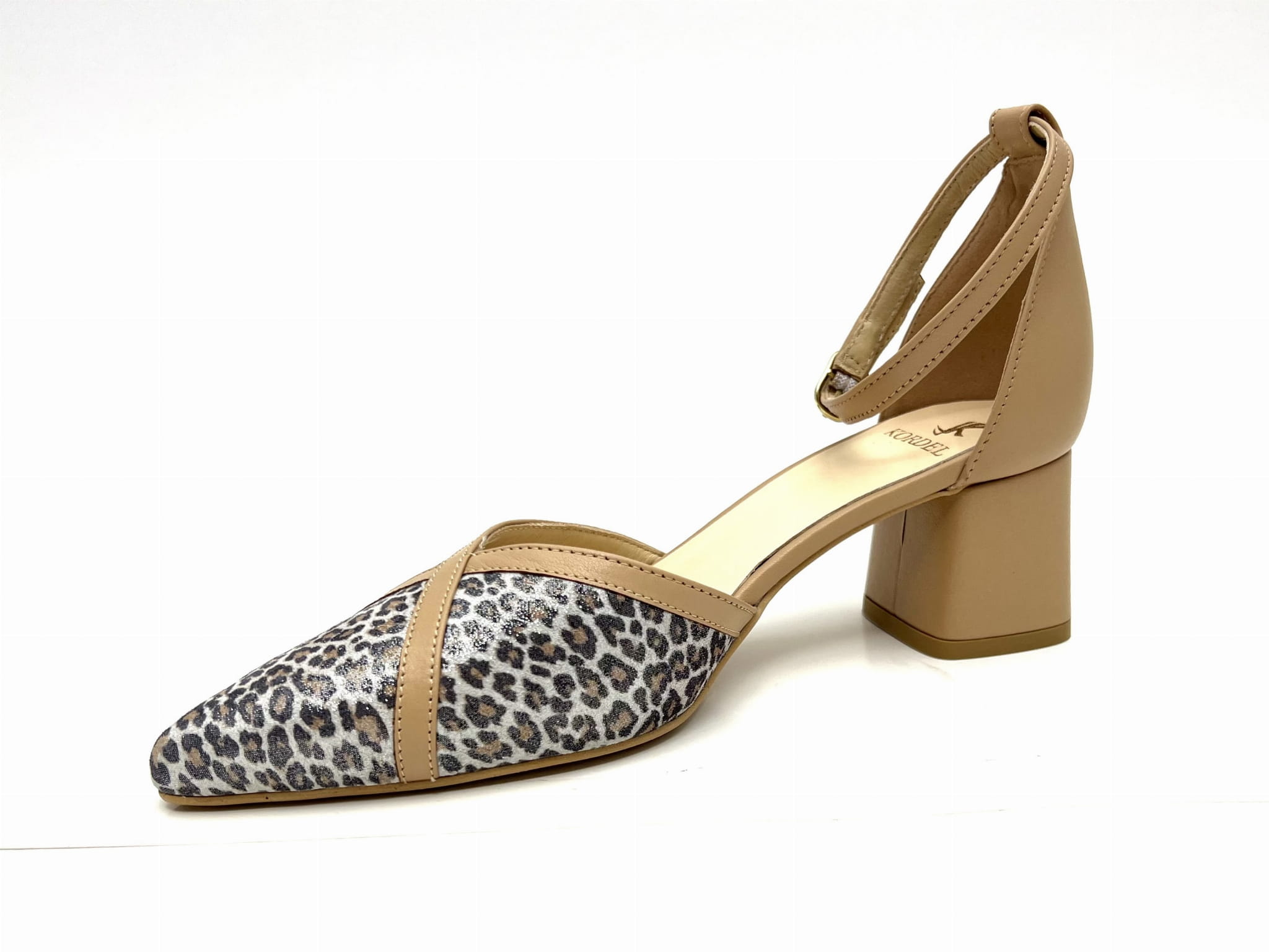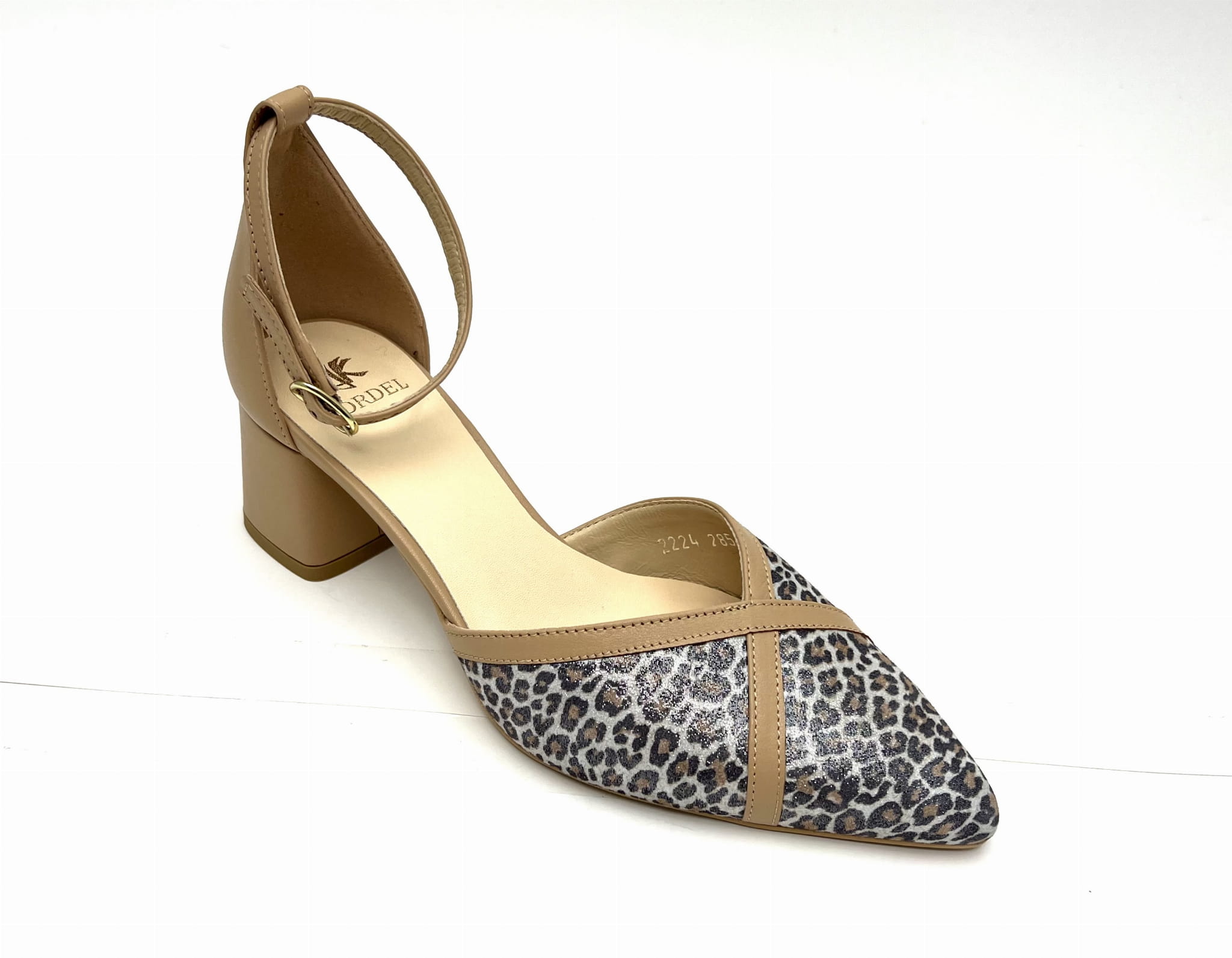 Czółenka w odcieniach koloru rudego. Zapinane koło kostki na klamerkę.