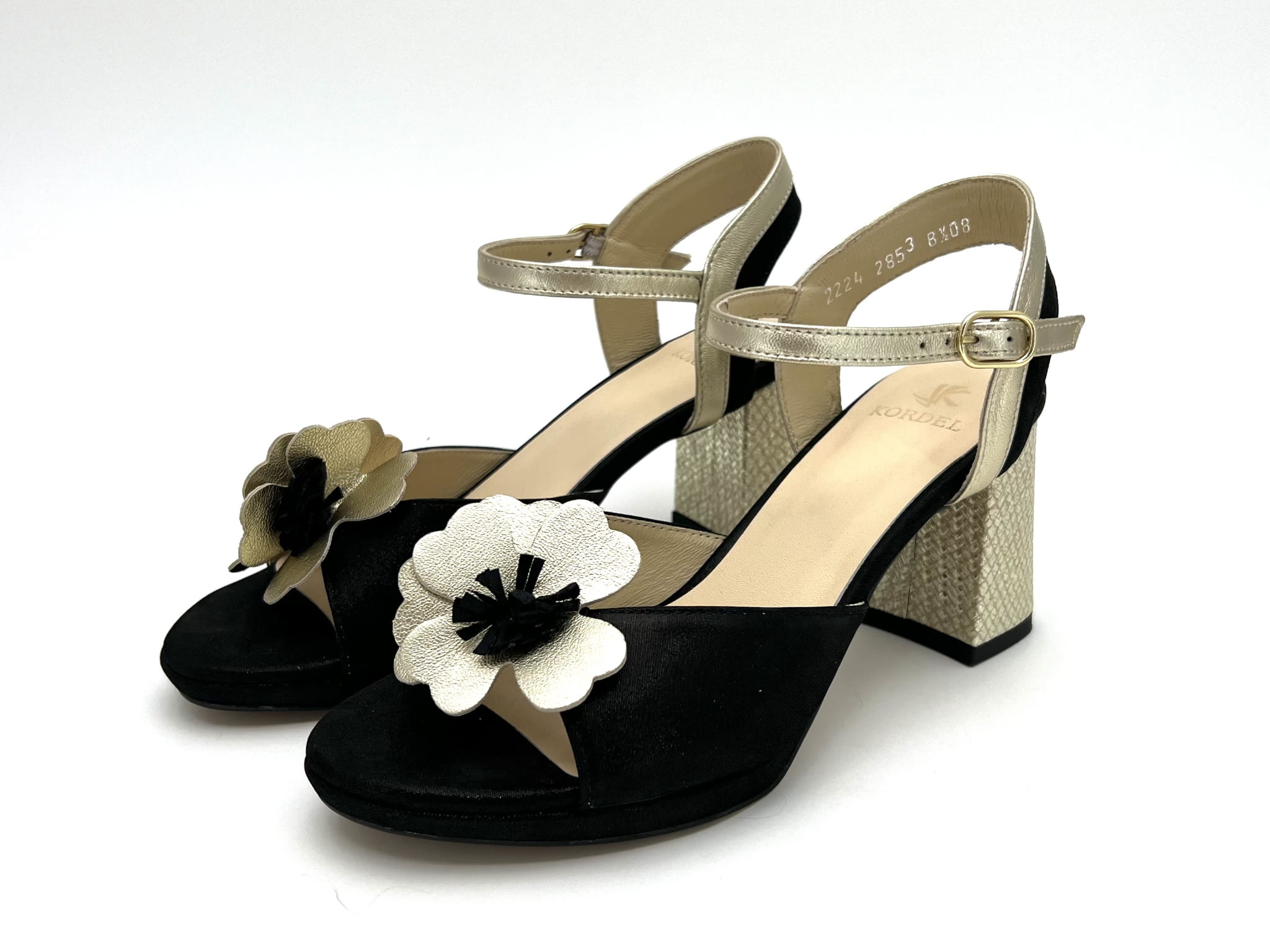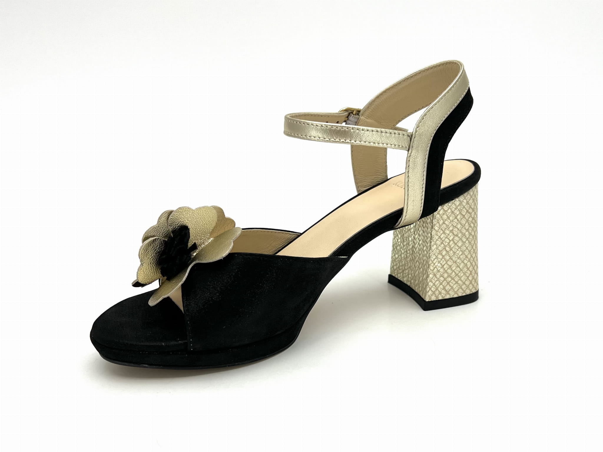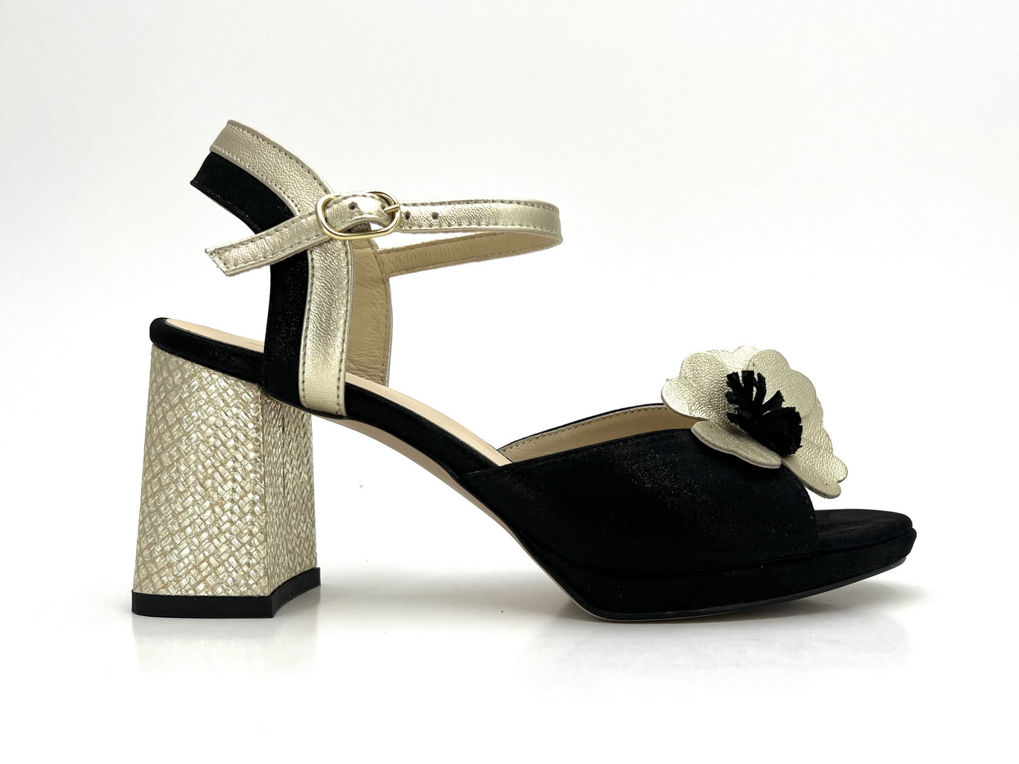 Szukasz elegancji z nutą oryginalności? Te czarne sandały damskie na obcasie to idealny wybór dla kobiet, które chcą wyróżniać się klasą i stylem. Model wykonany z naturalnej skóry zachwyca detalami: złote wstawki subtelnie przełamują klasyczną czerń, a ręcznie robiony, skórzany kwiat dodaje charakteru i kobiecego wdzięku.