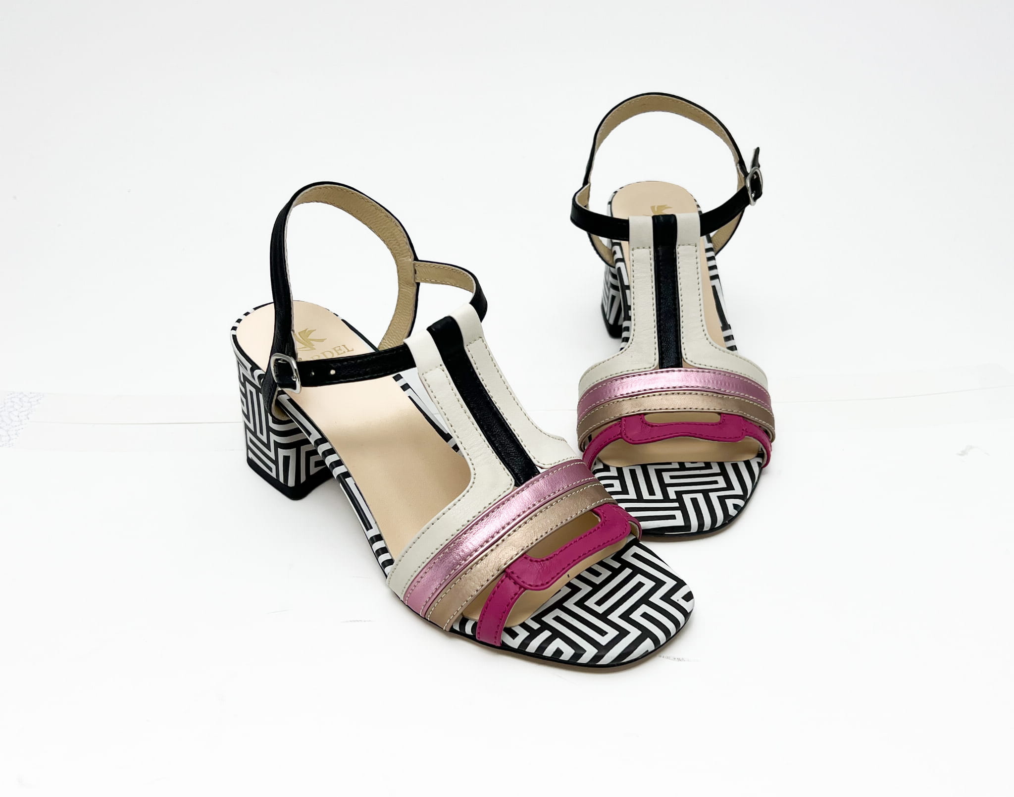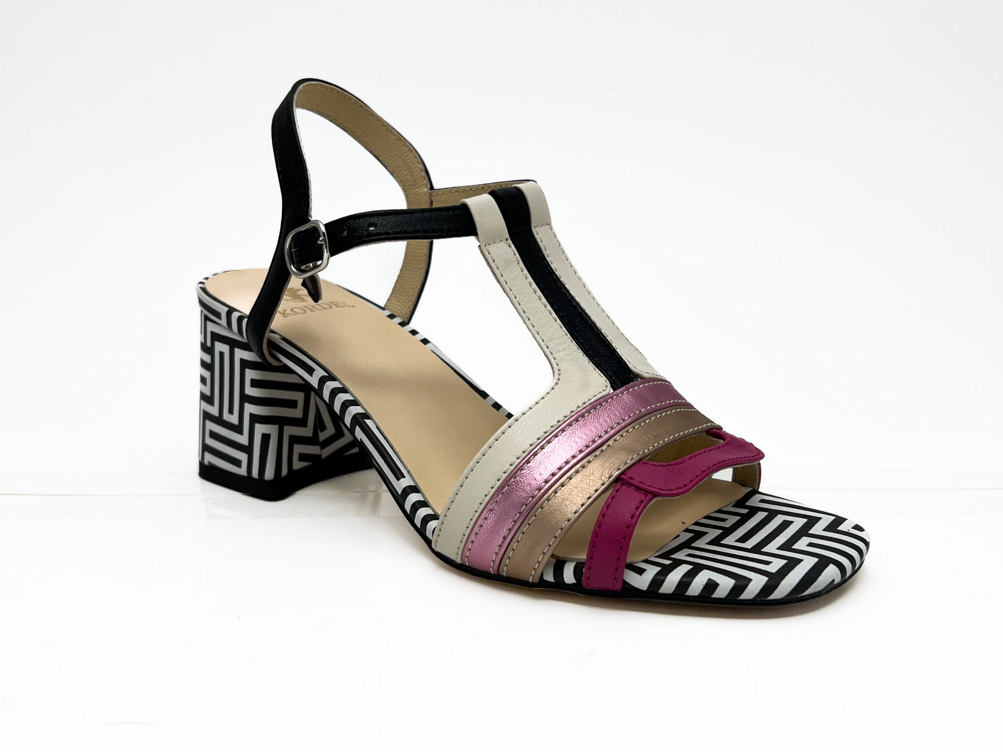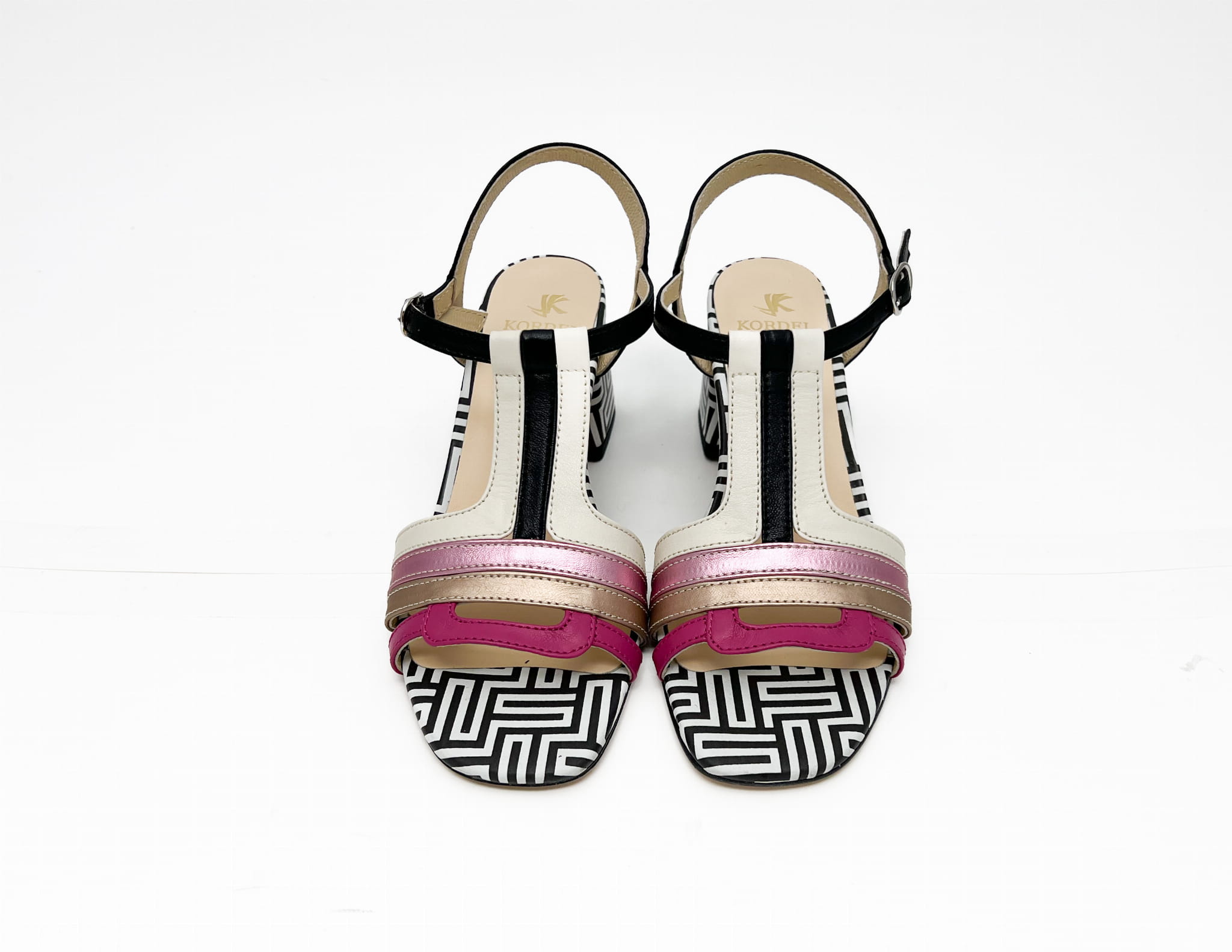 Model 2866 to kolorowe sandały damskie z cholewką z paseczków, na klockowym obcasie 6,5 cm. To perfekcyjne połączenie elegancji i komfortu, idealne na lato. Model wyróżnia się dziurkowaną cholewką w kolorze złotym, która nie tylko pięknie wygląda, ale też pozwala skórze oddychać w upalne dni.