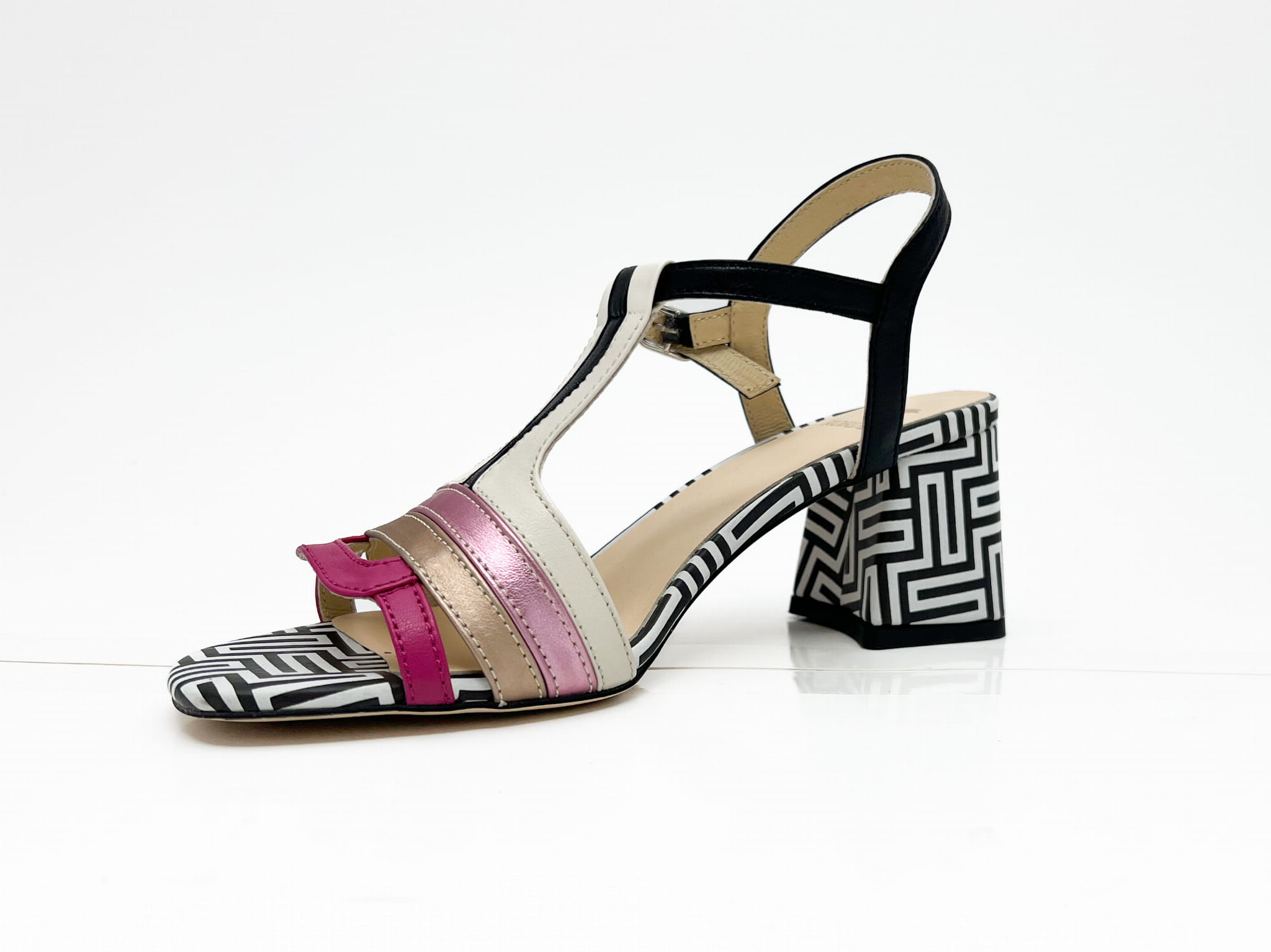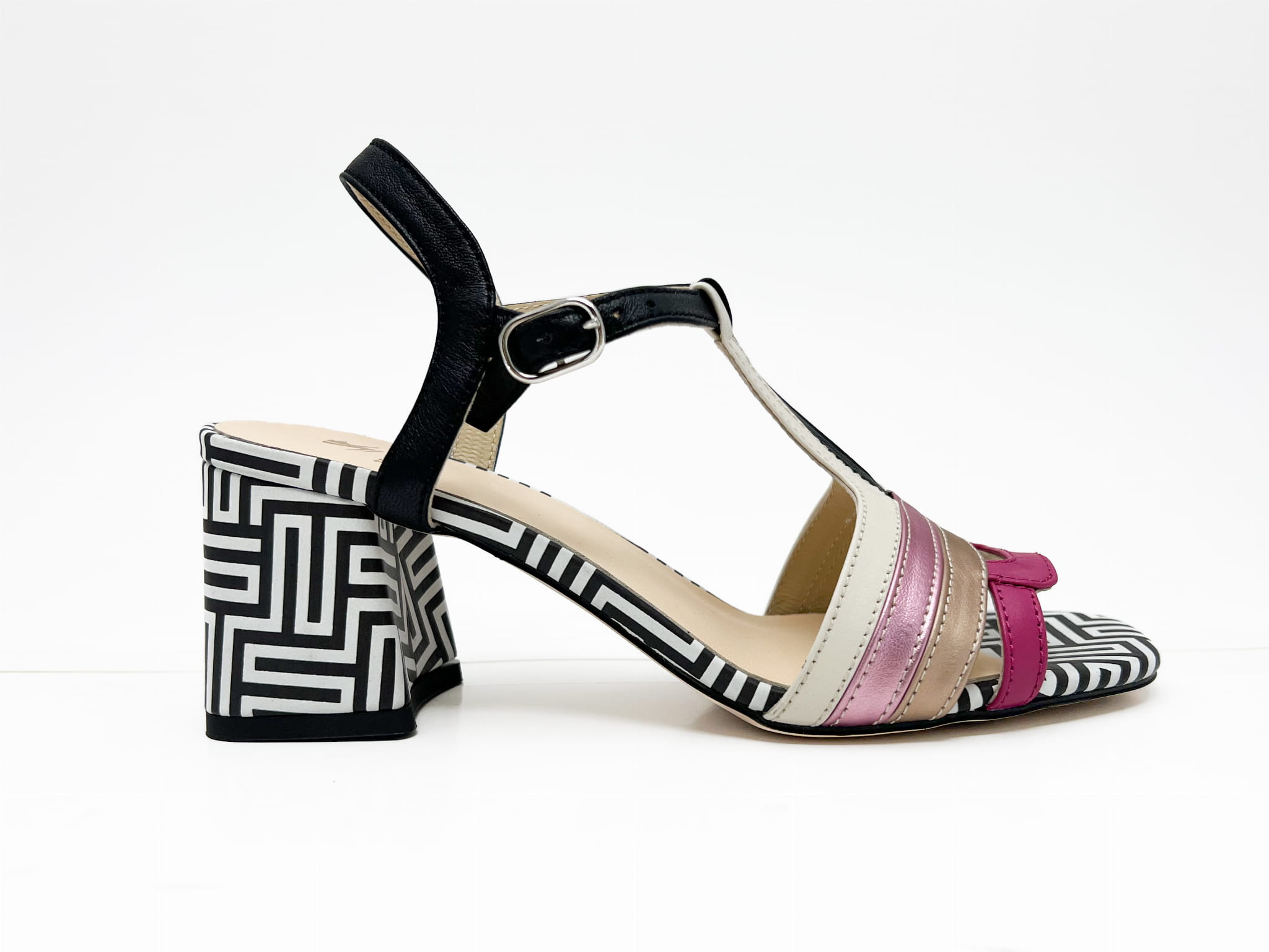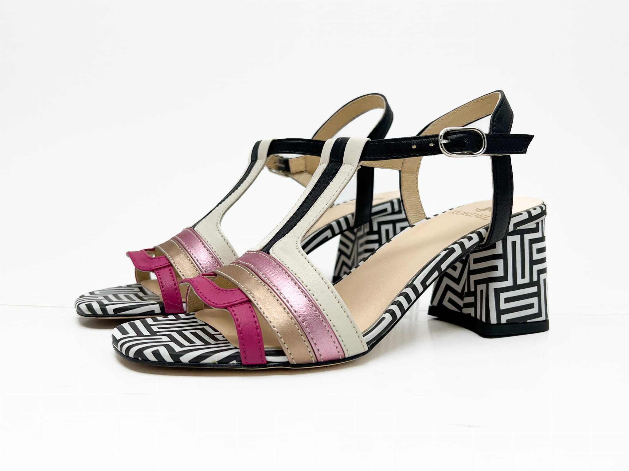 Model 2866 to kolorowe sandały damskie z cholewką z paseczków, na klockowym obcasie 6,5 cm. To perfekcyjne połączenie elegancji i komfortu, idealne na lato. Model wyróżnia się dziurkowaną cholewką w kolorze złotym, która nie tylko pięknie wygląda, ale też pozwala skórze oddychać w upalne dni.