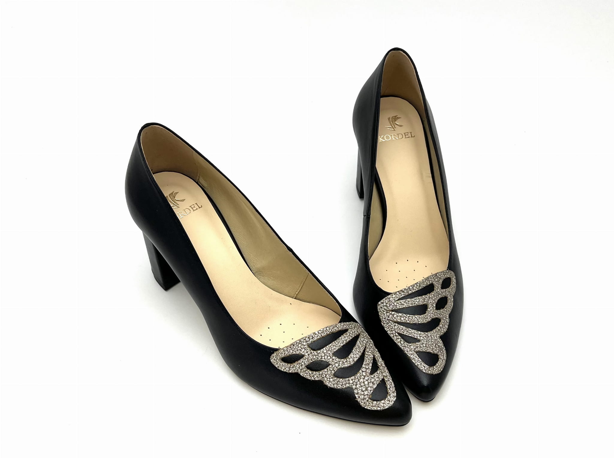 2872 Czarne czółenko z motylem