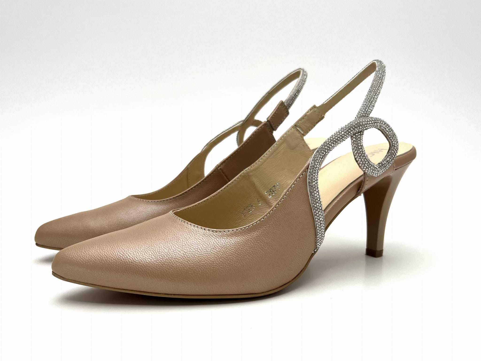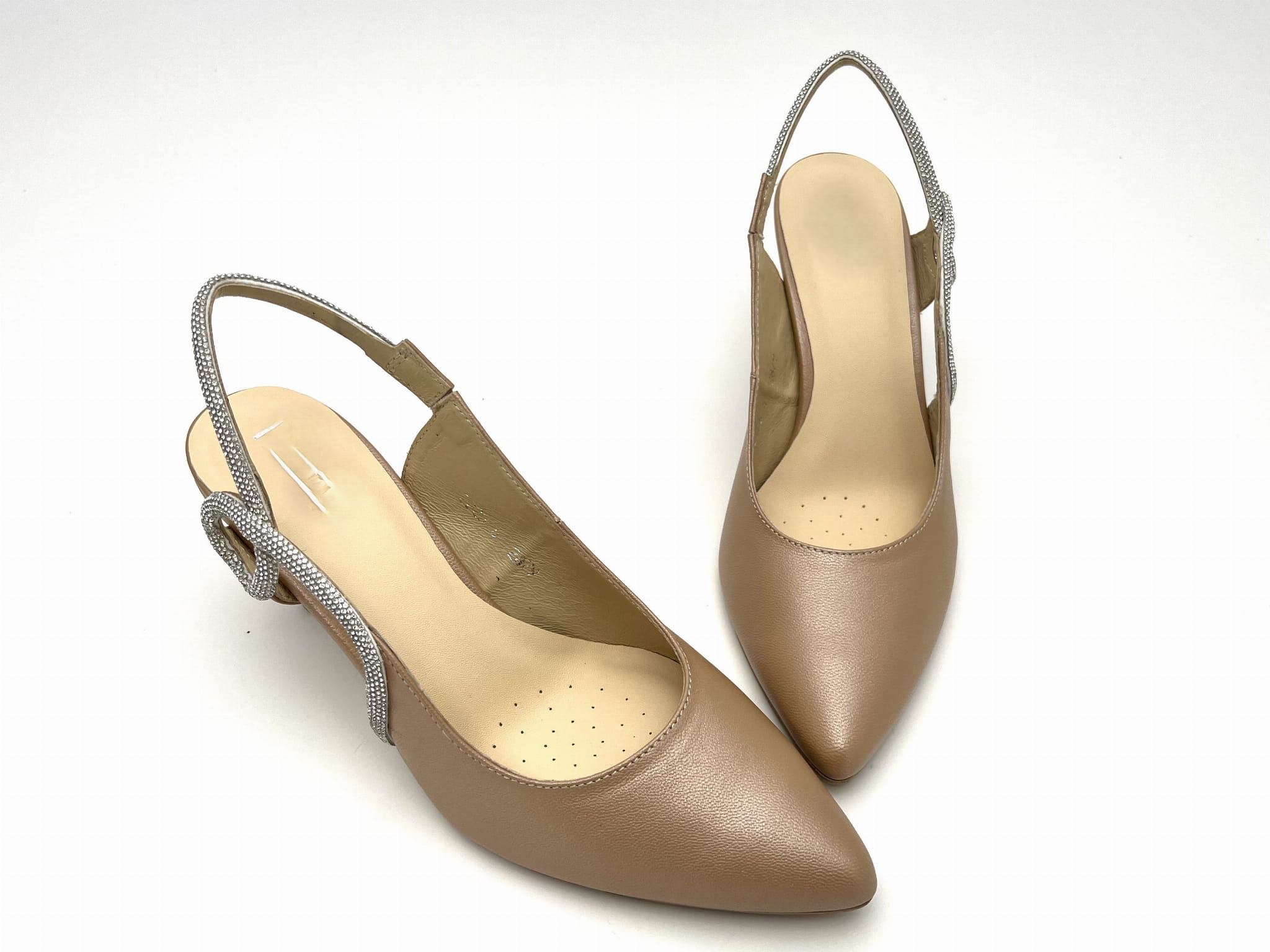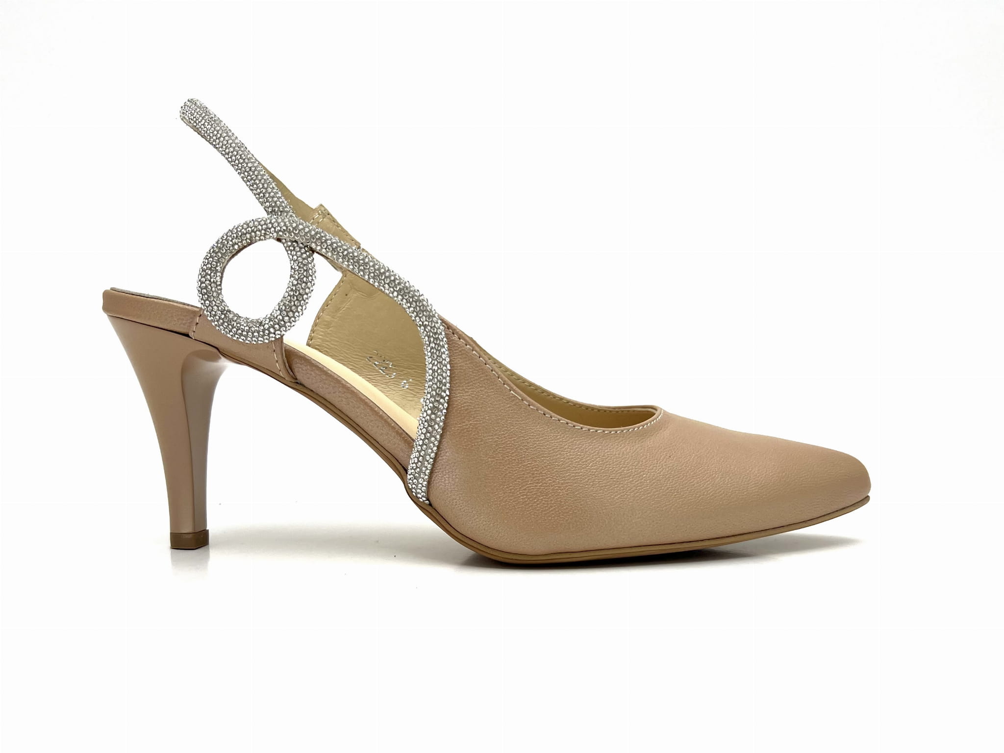 2879 beżowe szpilki bez pięty z ozdobnym paskiem