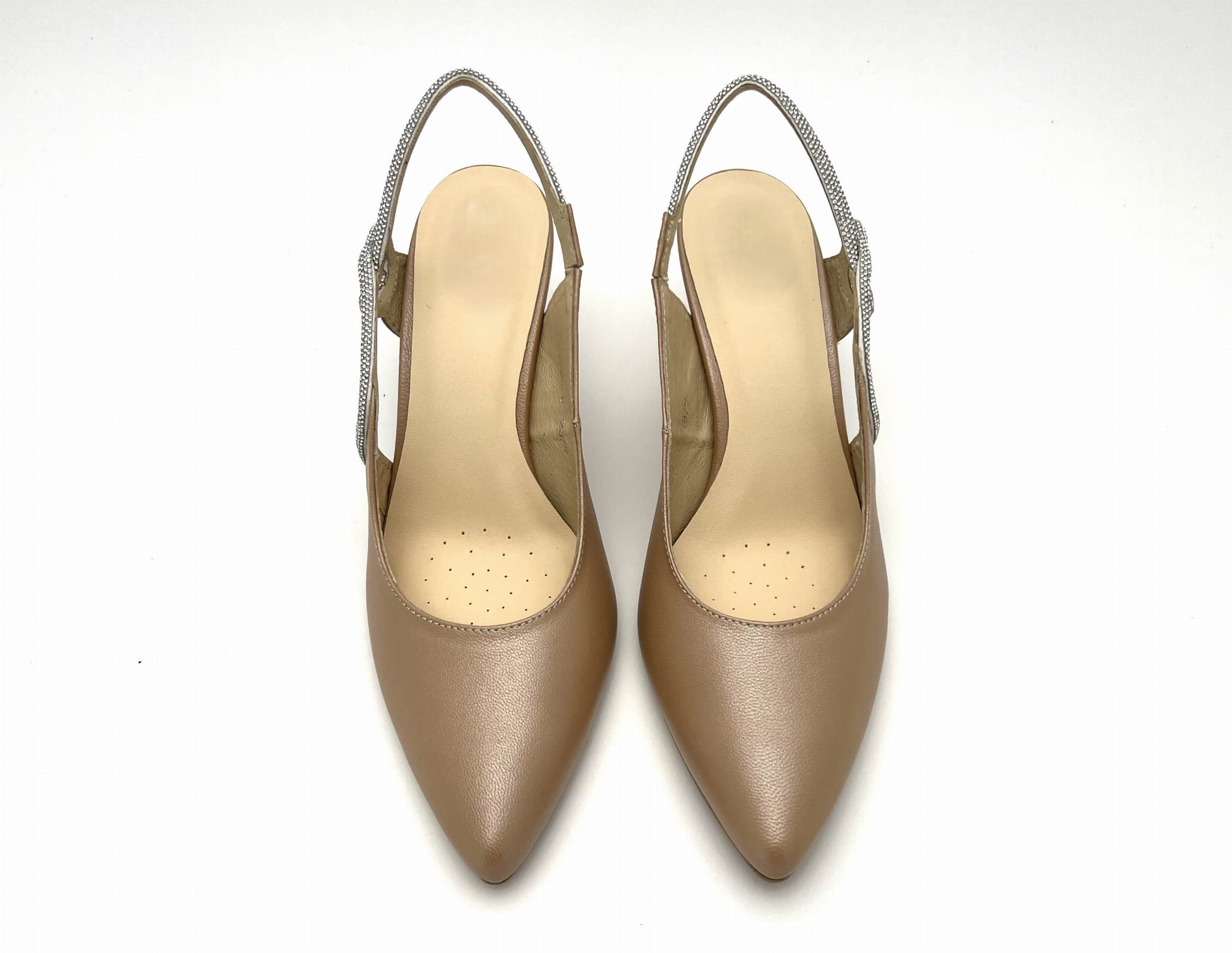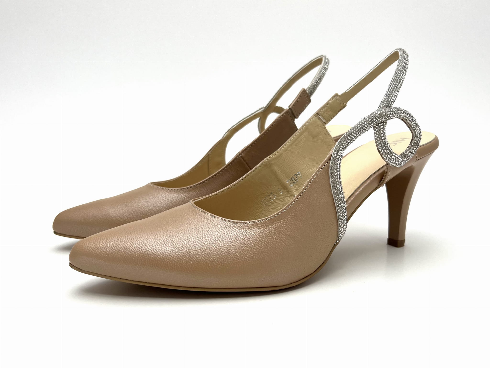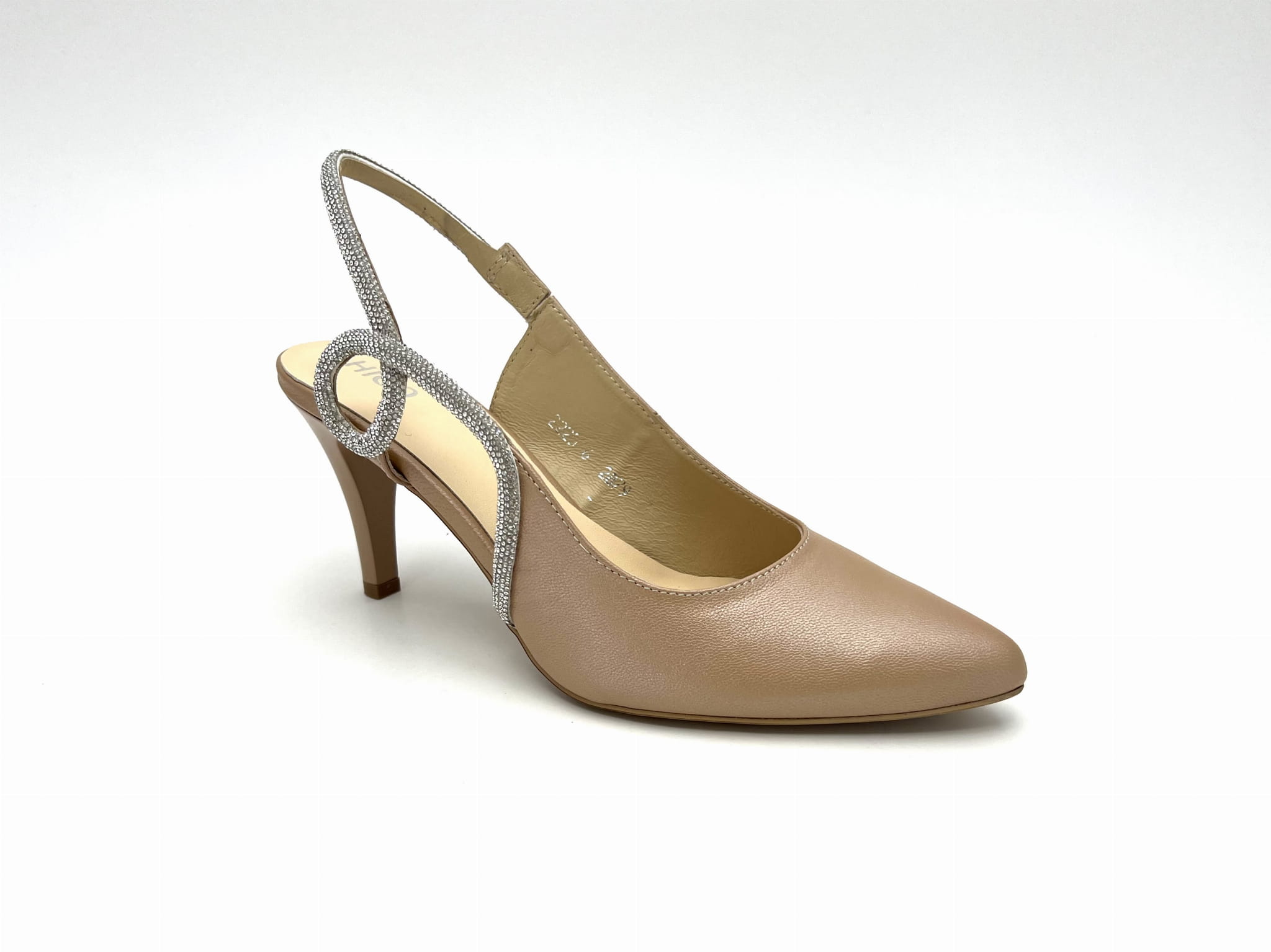 2879 beżowe szpilki bez pięty z ozdobnym paskiem