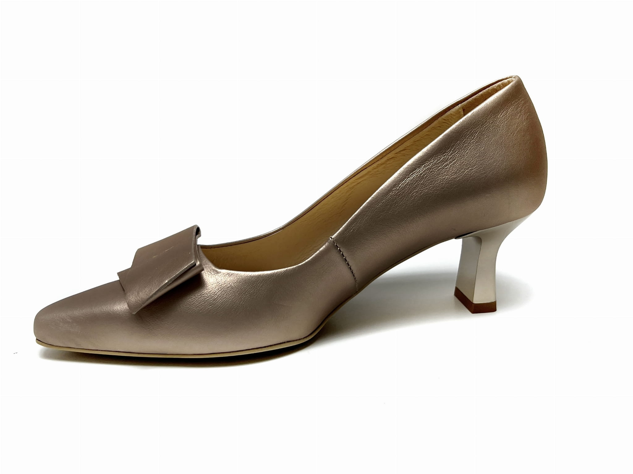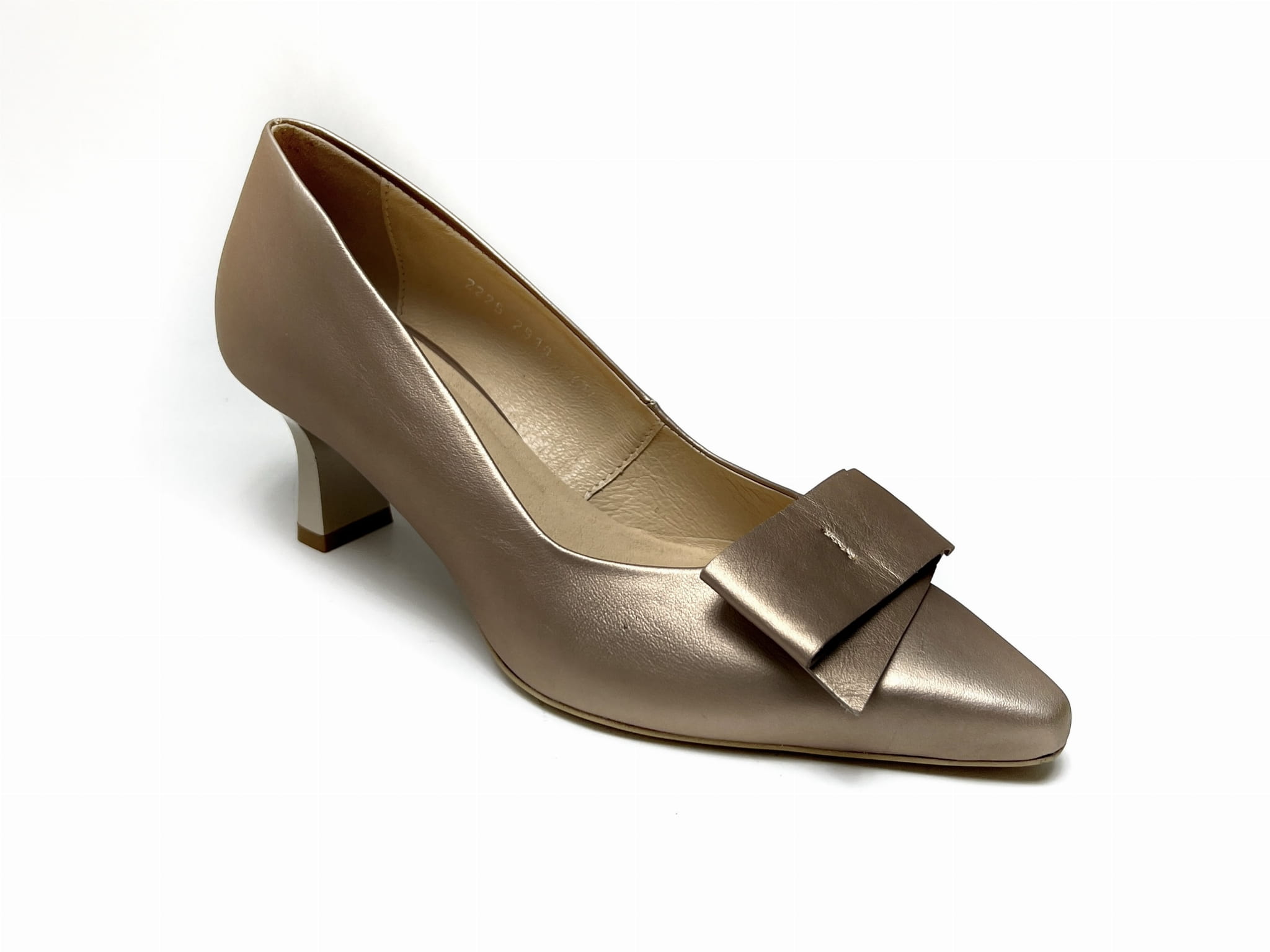 Model 2919 w wersji złotej to idealna propozycja dla kobiet ceniących elegancję i modny połysk, który wyróżnia stylizację. Subtelna ozdoba i piękne wykończenie sprawiają, że te złote czółenka na obcasie stanowią doskonały wybór na specjalne okazje, wesele, spotkania czy wieczorne wyjścia.