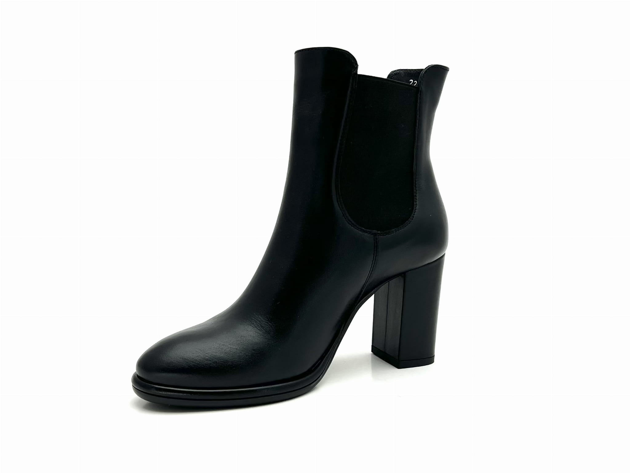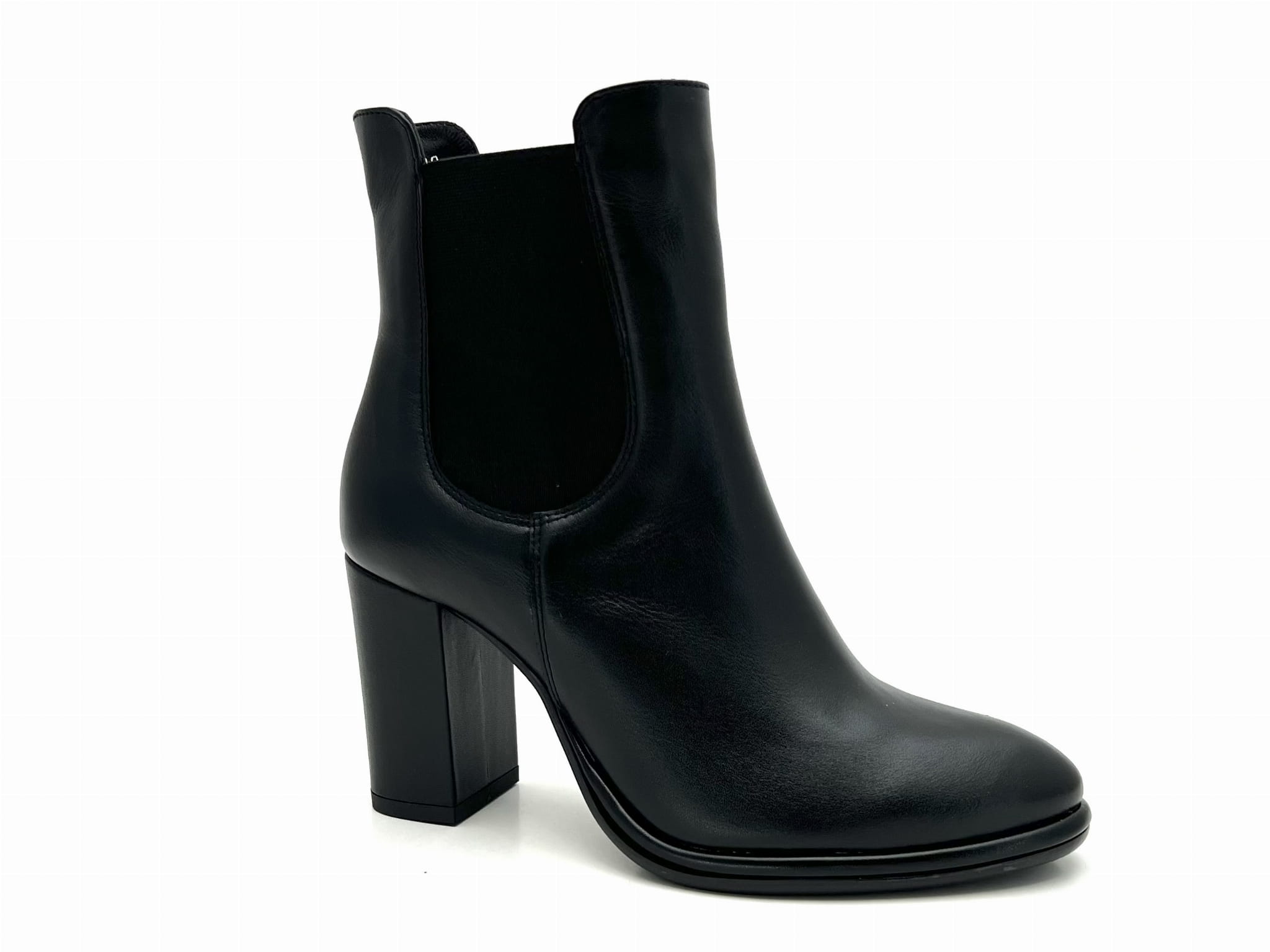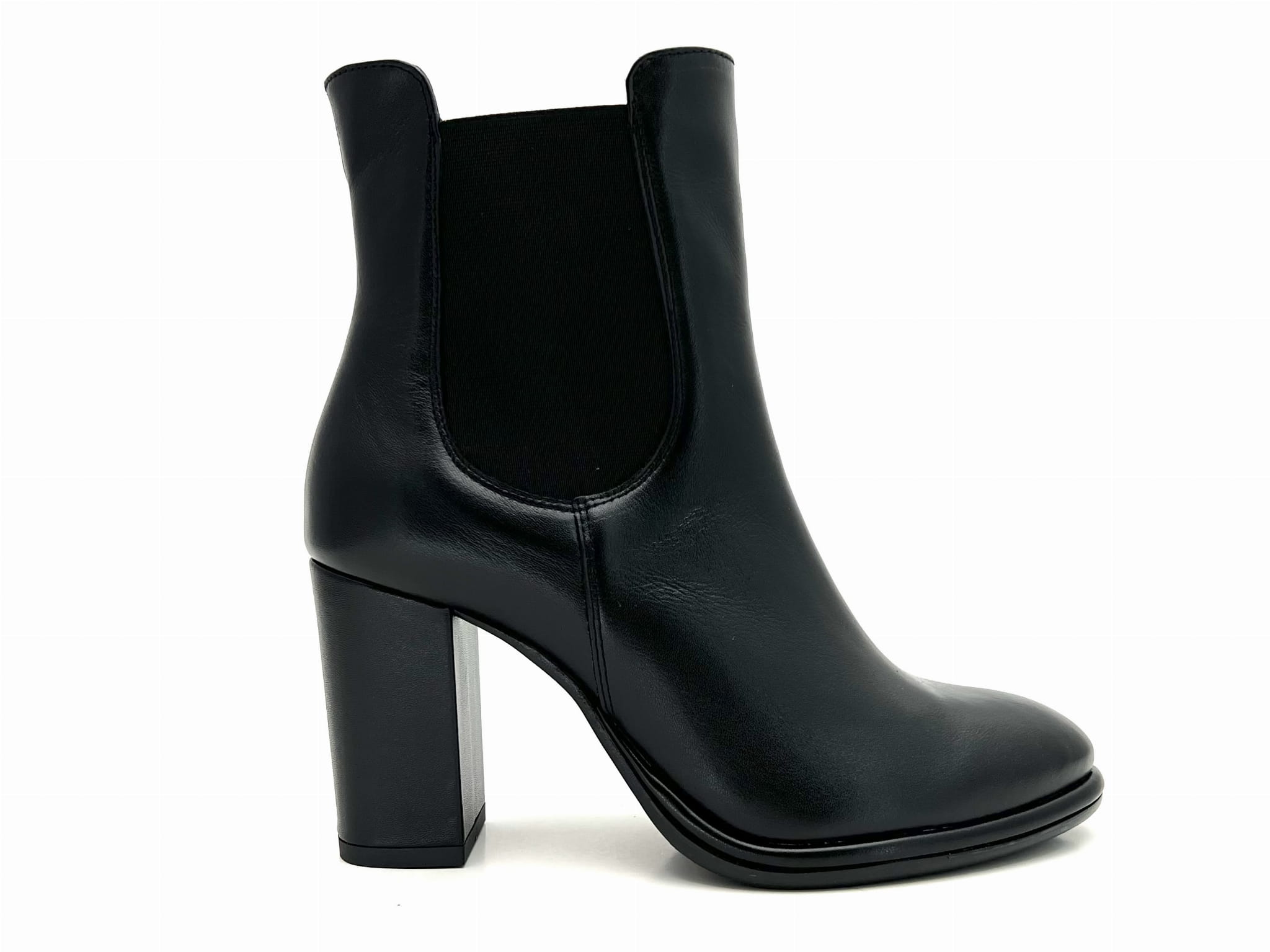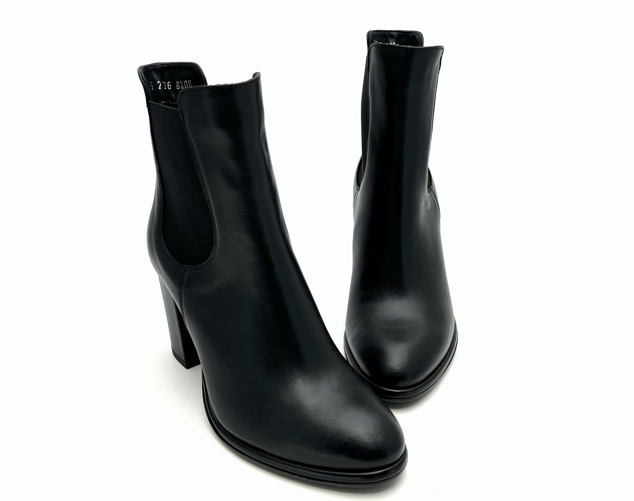 2936 Czarne botki damskie na słupku 8,5 cm ze skóry naturalnej – polska produkcja