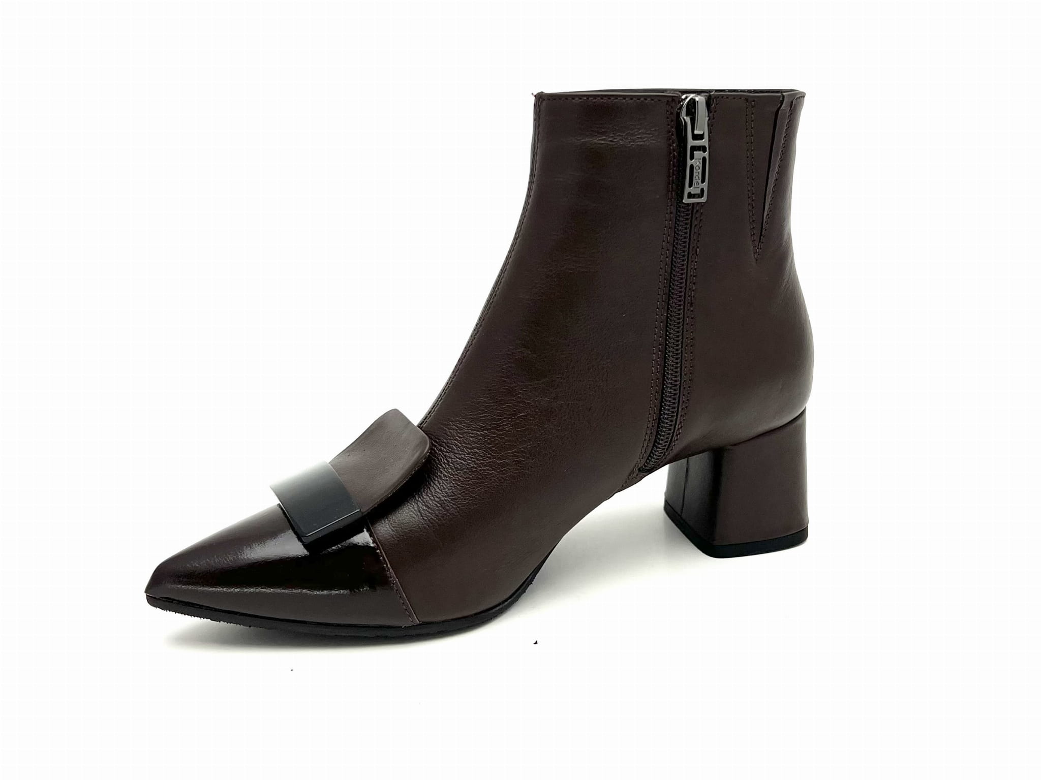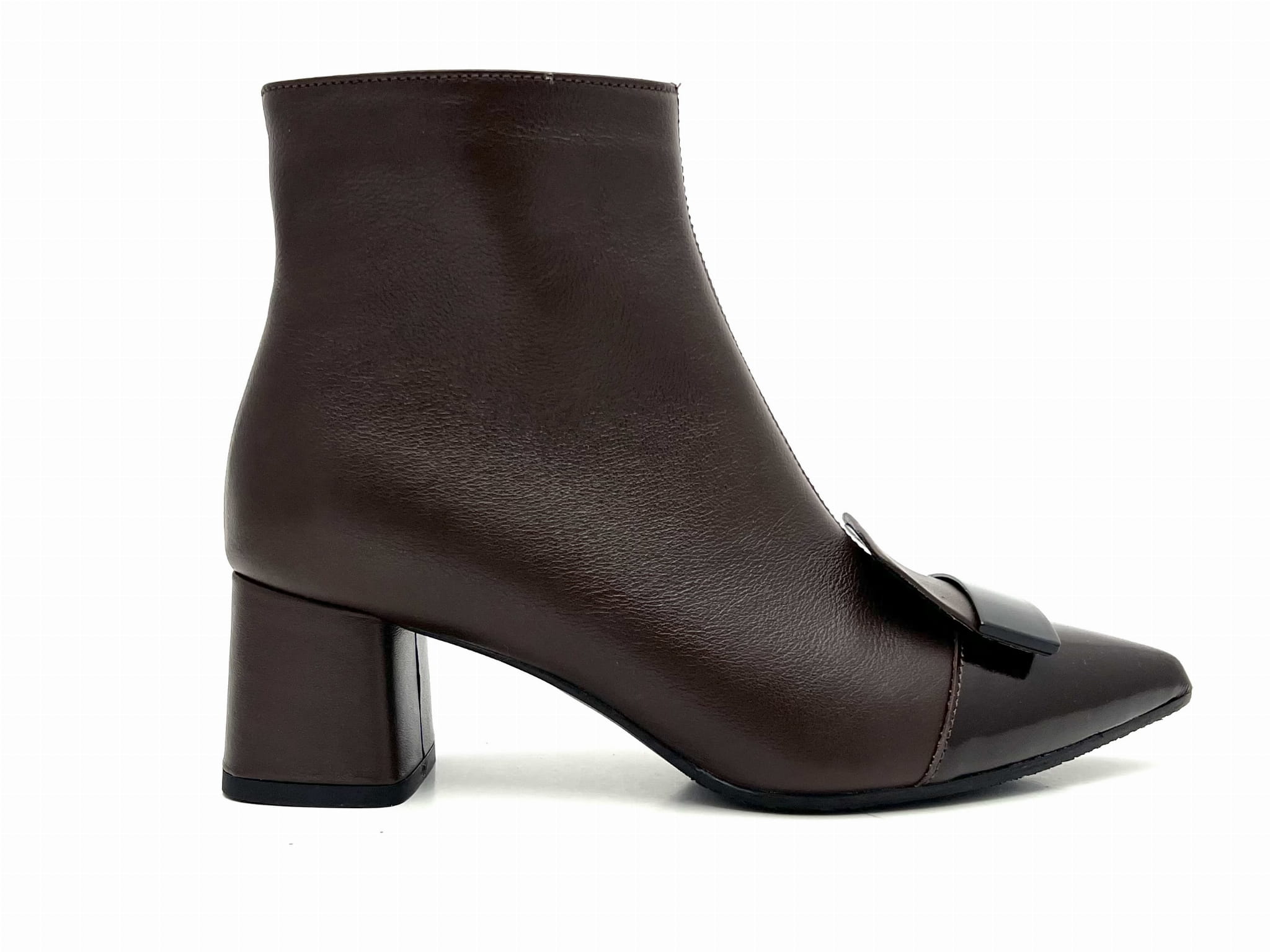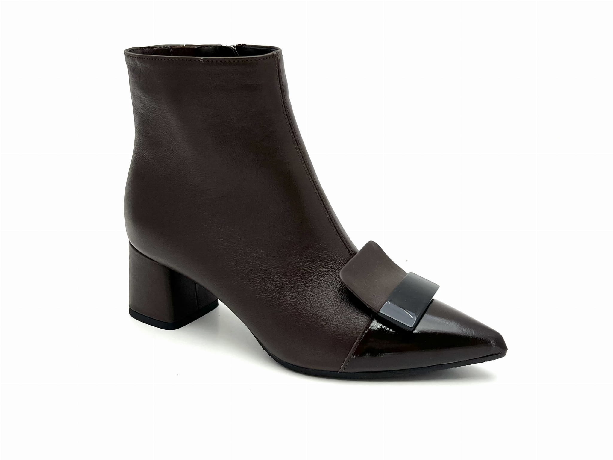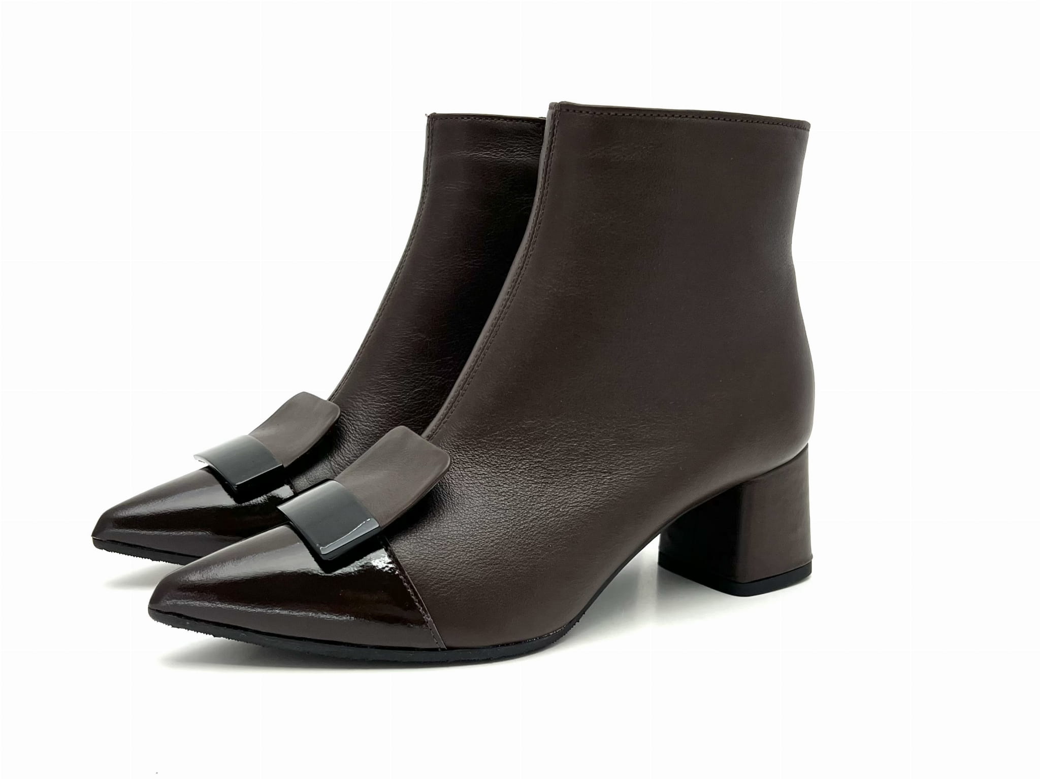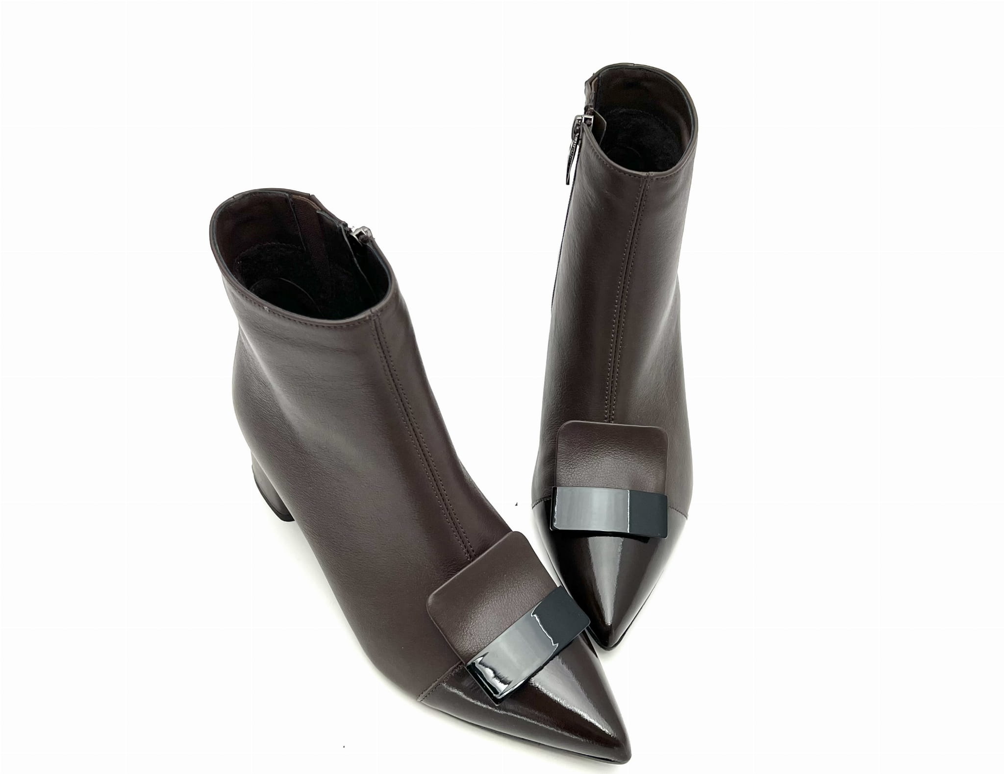 3004 Botki damskie z czekoladowej skóry naturalnej – z ozdobną klamrą