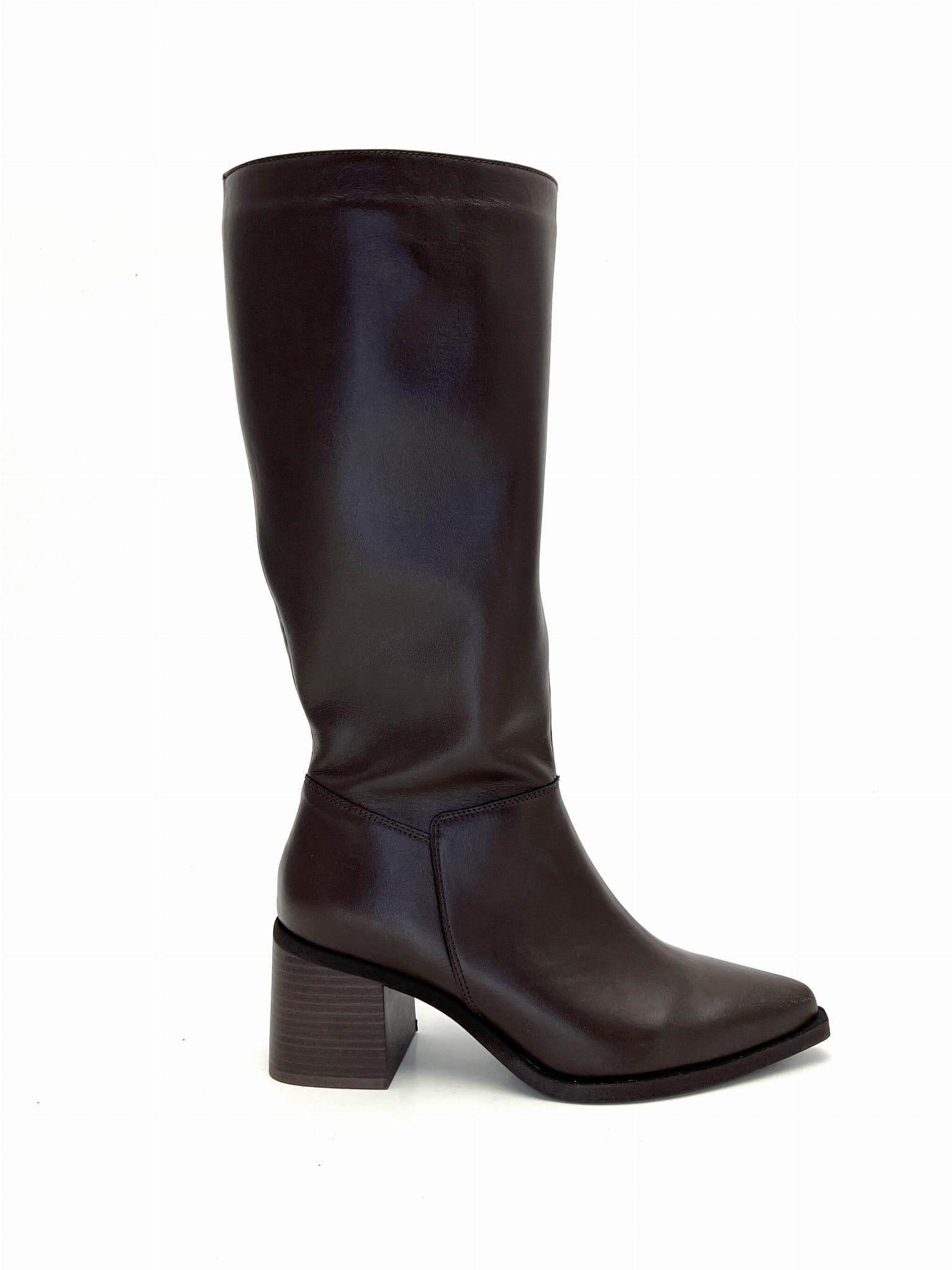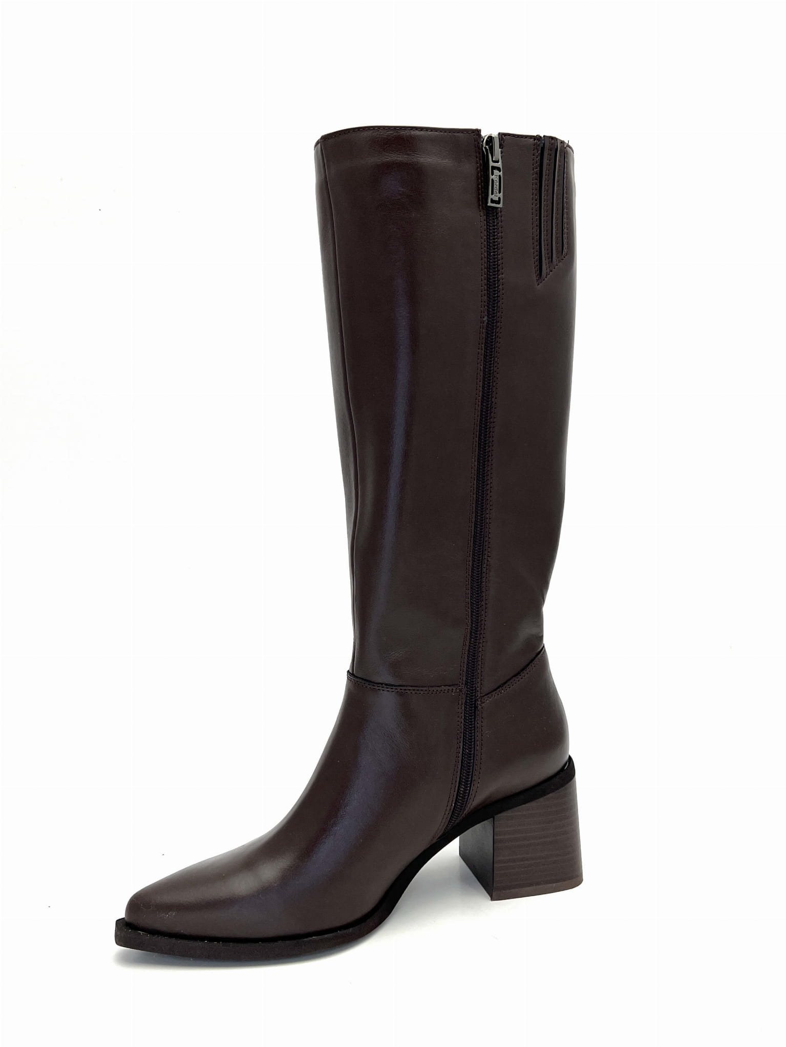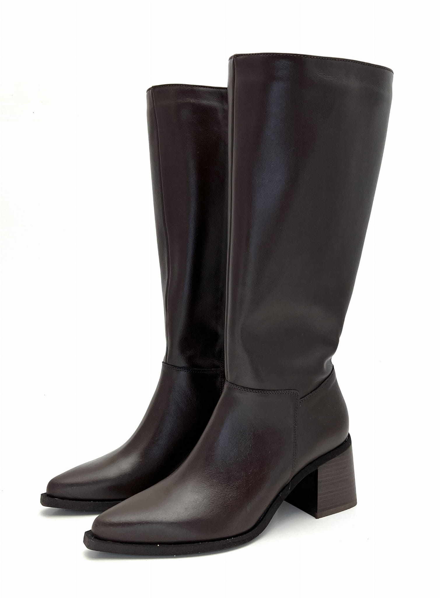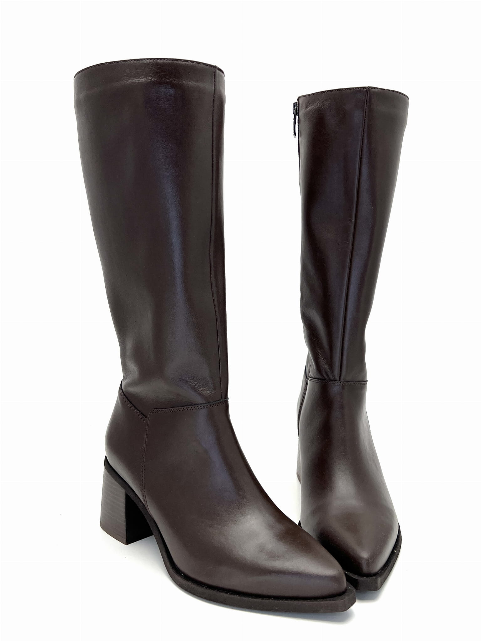 3019 Brązowe kozaki damskie ze skóry naturalnej na słupku – eleganckie buty polskiej produkcji