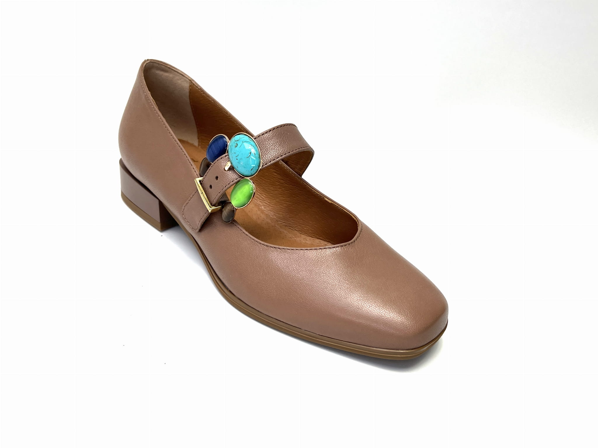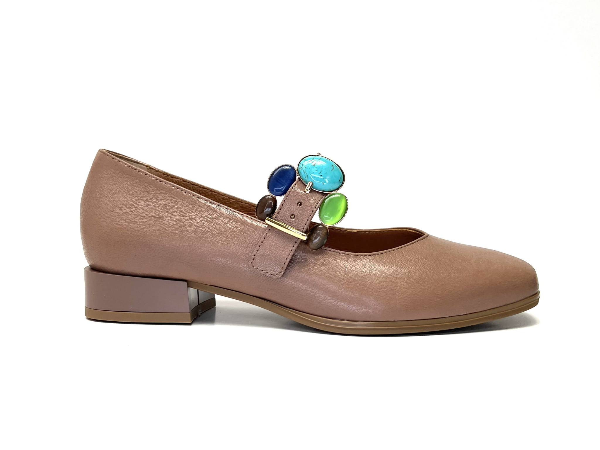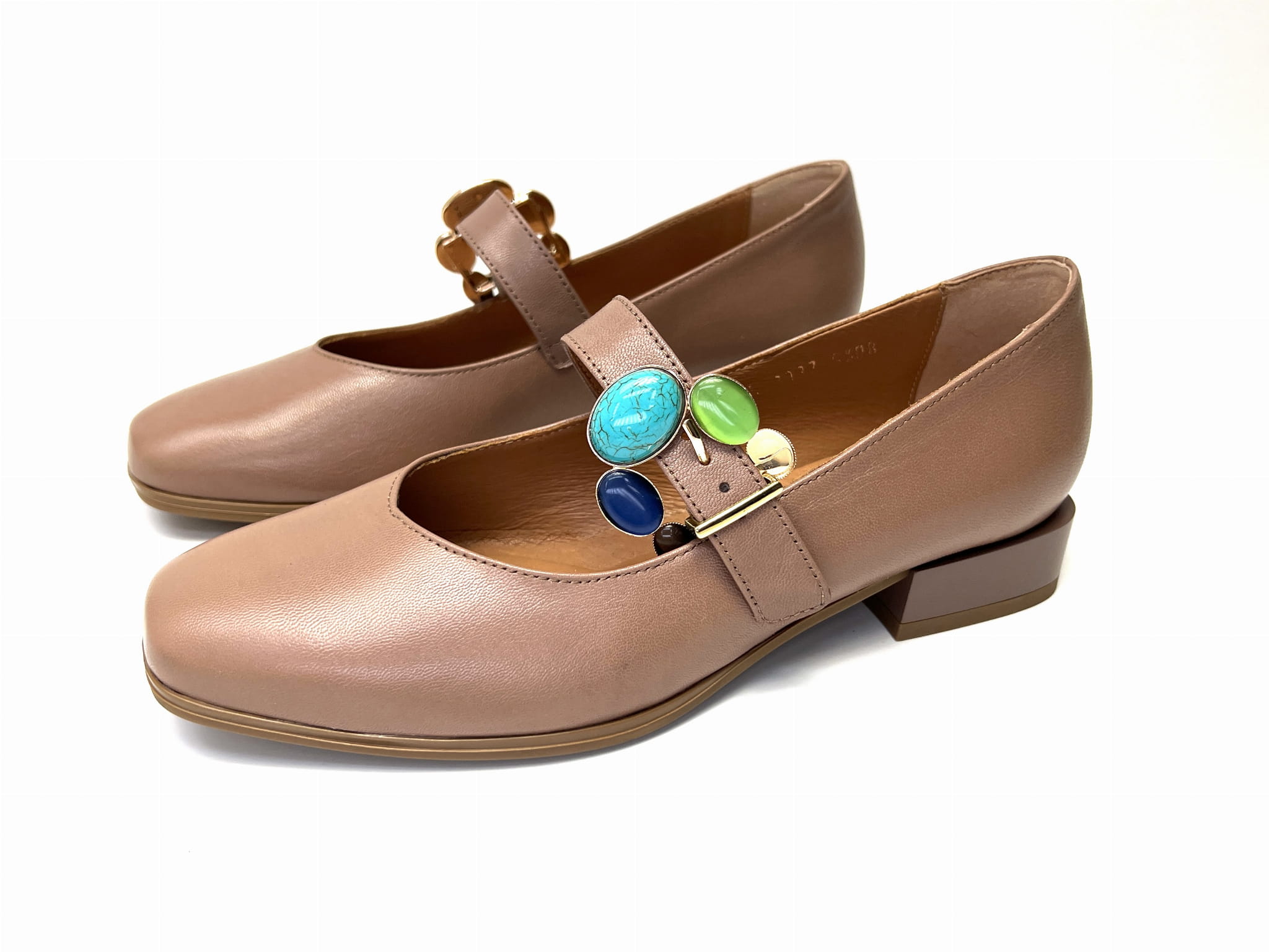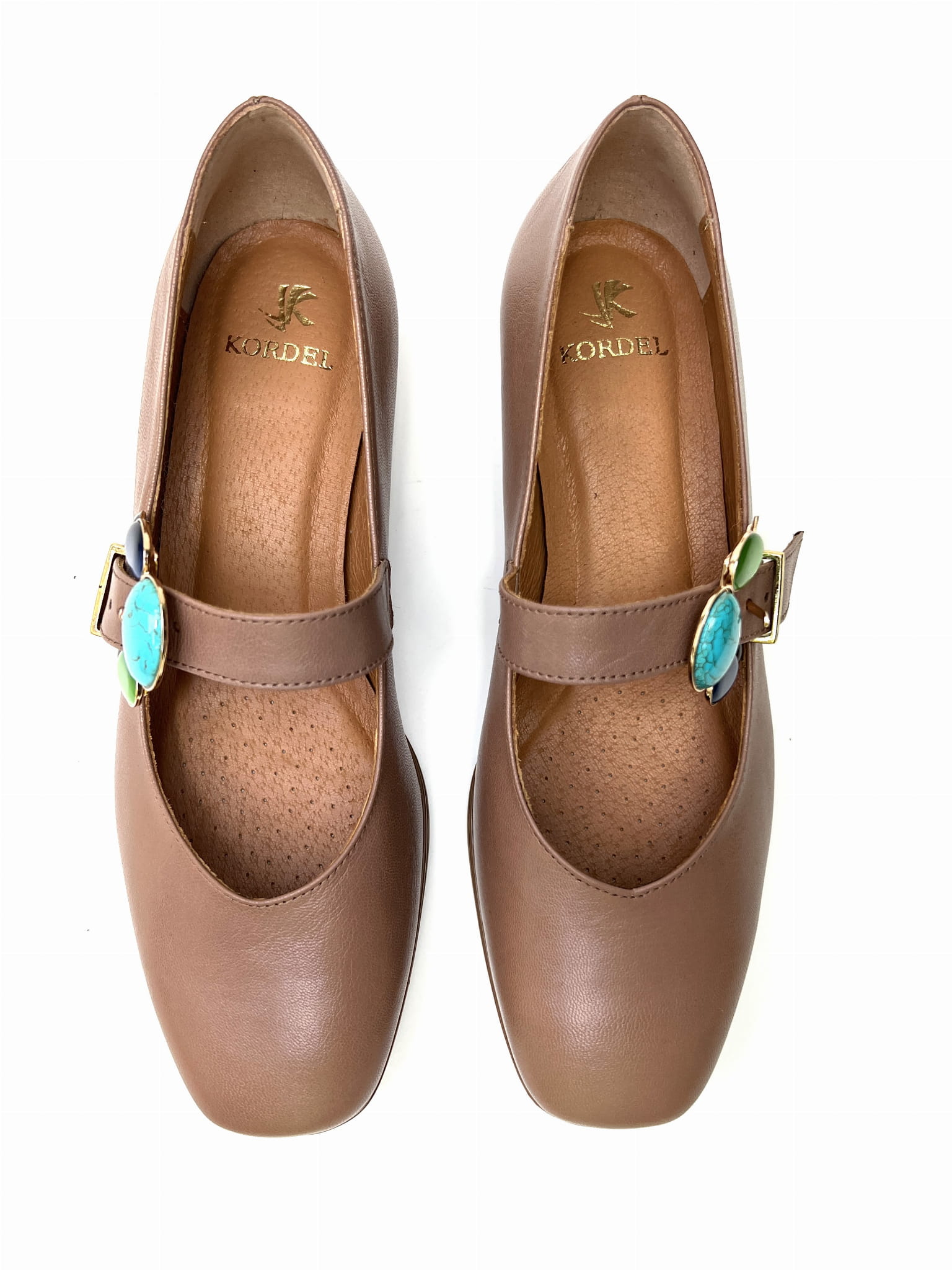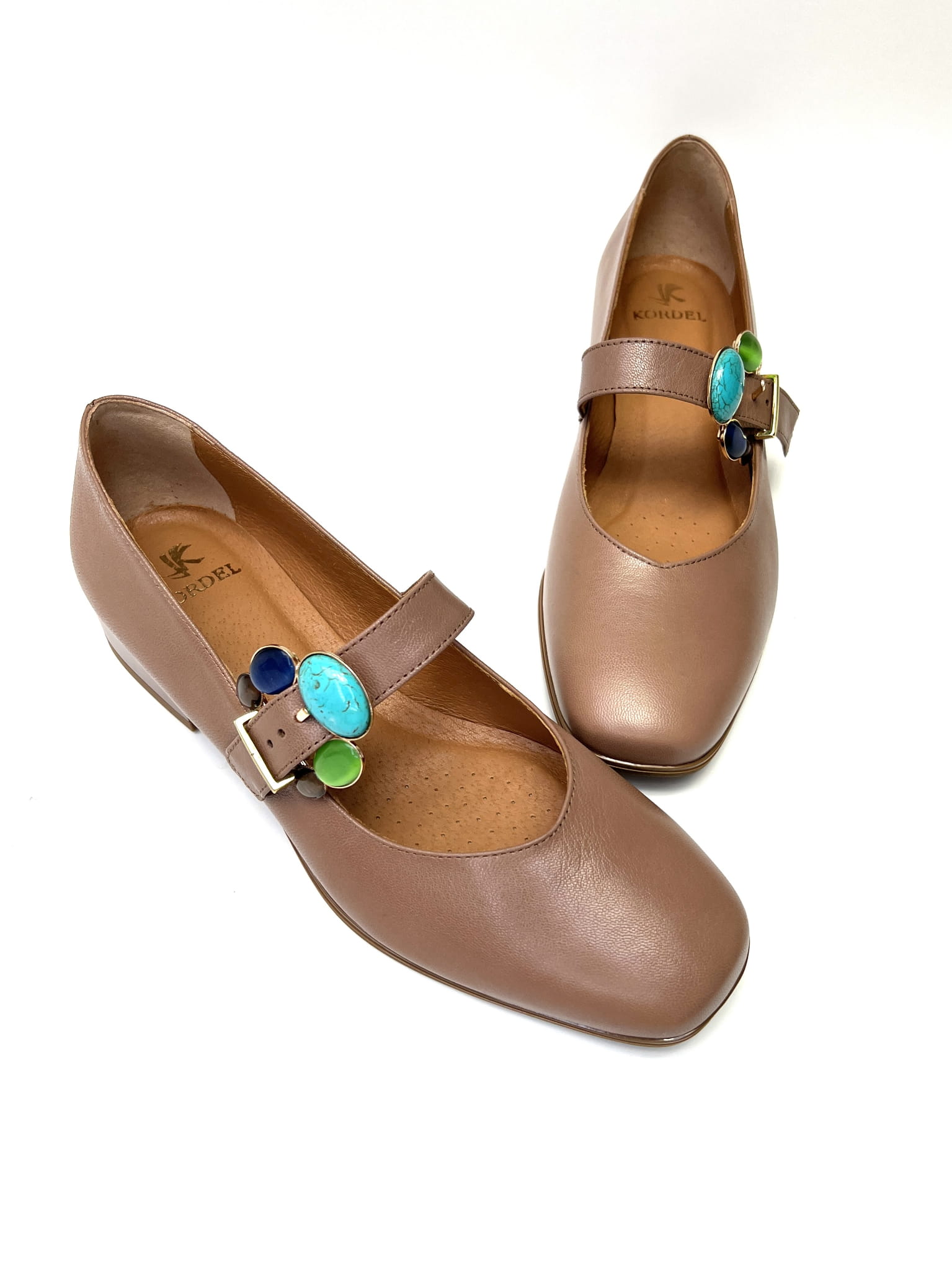 3037 balerina na małym obcasie z paskiem i klamrą z kolorowych kamyczków, Polska marka KORDEL
